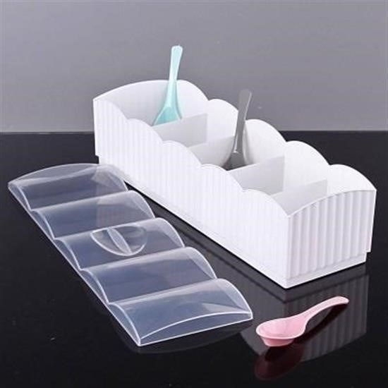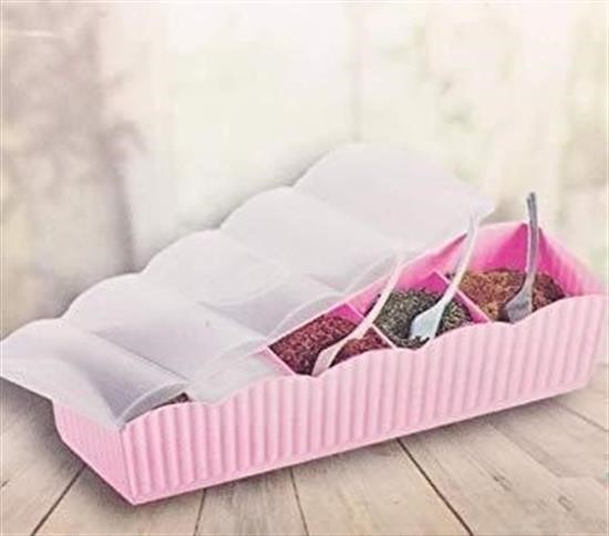 Renk: 5 Bölmeli Şeffaf Kapaklı Kaşıklı Dekoratif Plastik Baharatlık, Stok durumuna göre karışık renklerde gönderim sağlanacaktır