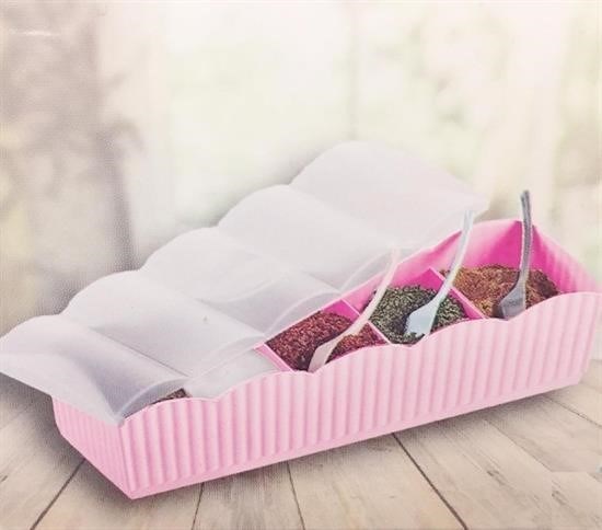5 Bölmeli Kaşıklı Şeffaf Kapaklı Baharatlık ile tüm baharatlarınızı bir arada ve bölmeli olarak kullanabilirsiniz