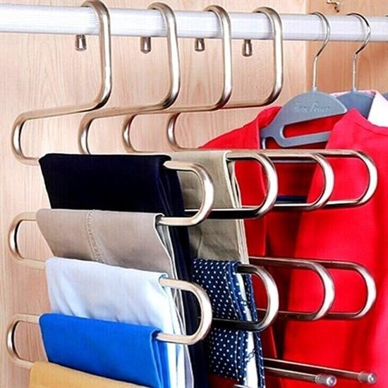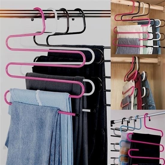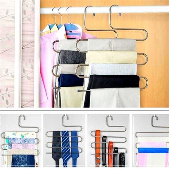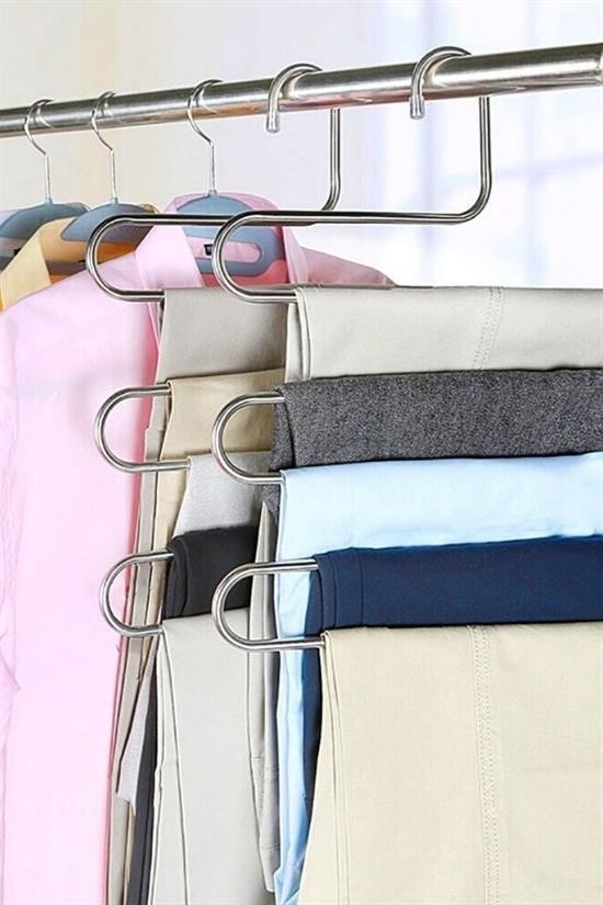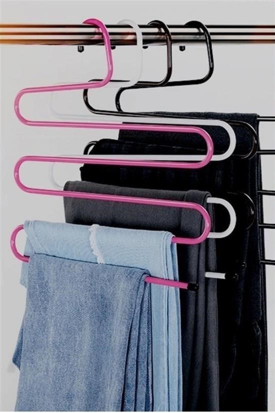 Pantalon, eşarp, fular vb giysilerinizi yer kaplamamaları ve düzenli bir şekilde dolaplarınızda bulundurmanız için tasarlanmış Pantalon-Eşarp Askısı: 5 Katlı Metal Askı