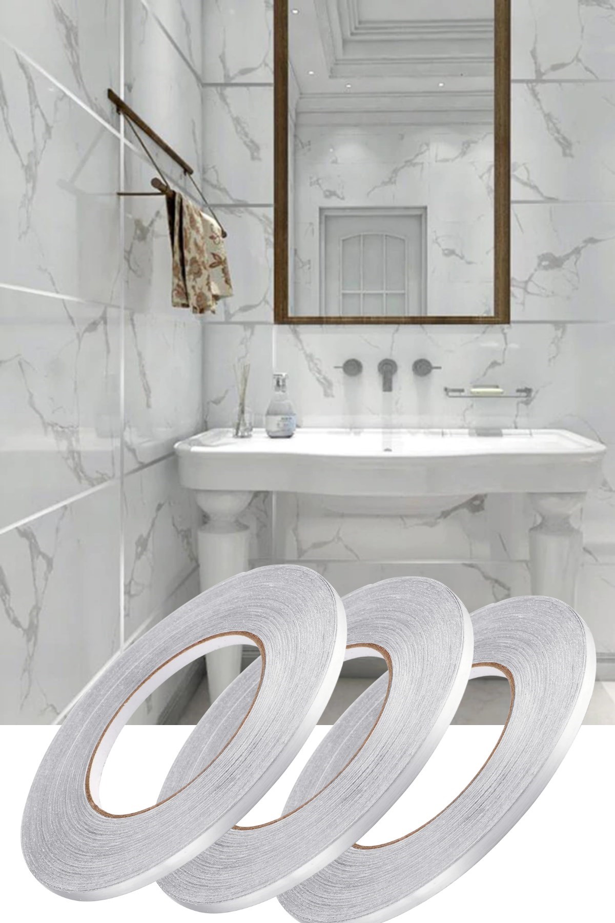 50 Metre Fayans Arası Şerit Dekoratif Yapışkan Renkli Dekor Su Geçirmez Sızdırmaz Gümüş Bant Kaplama