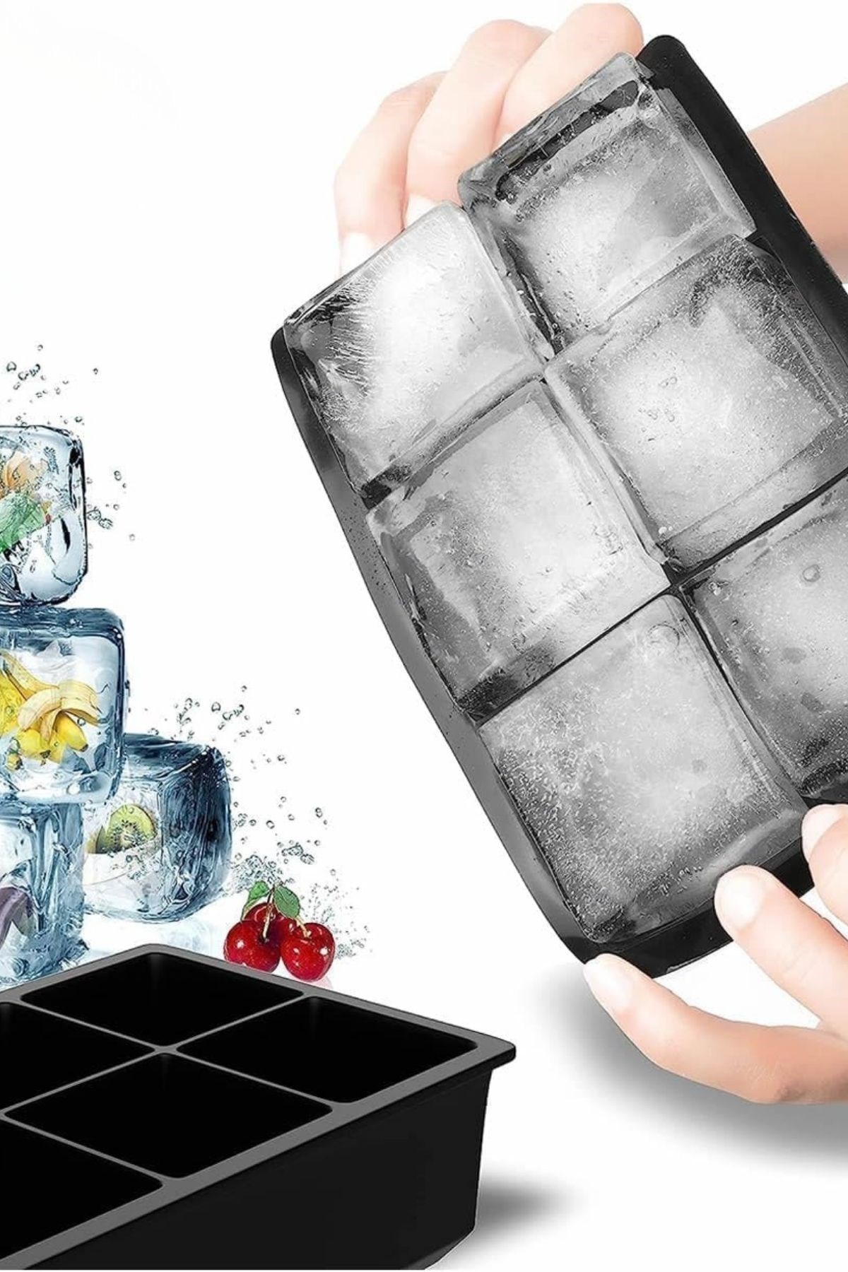 ✅ XL Buz Küpleri: 6 adet büyük boy (5 cm x 5 cm x 5 cm) buz küpü üretir.