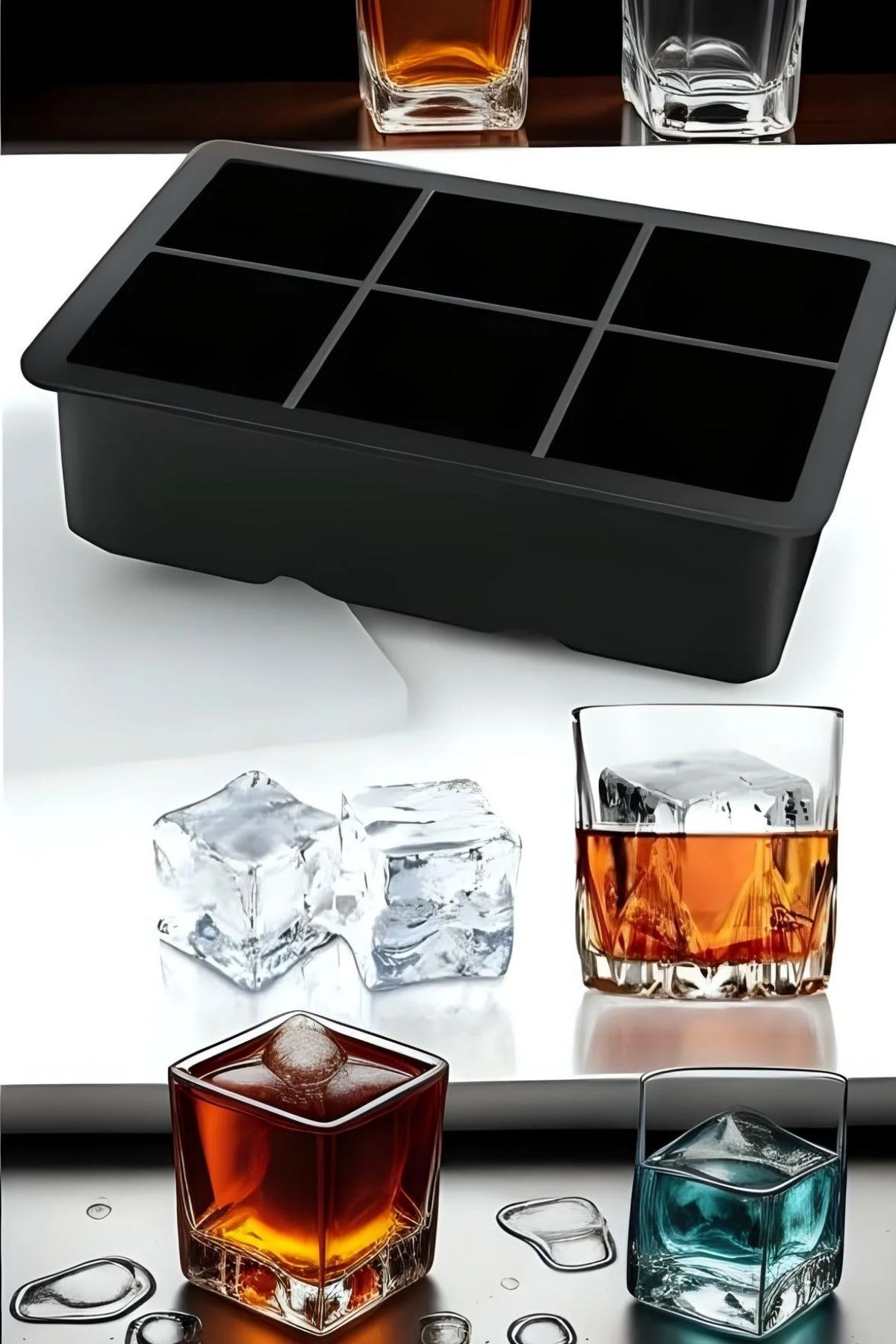 🥃 BUFFER® 6'lı XL Küp Şeklinde Silikon Buz Kalıbı ile içeceklerinizi sulandırmadan uzun süre serin tutun! 🧊✨