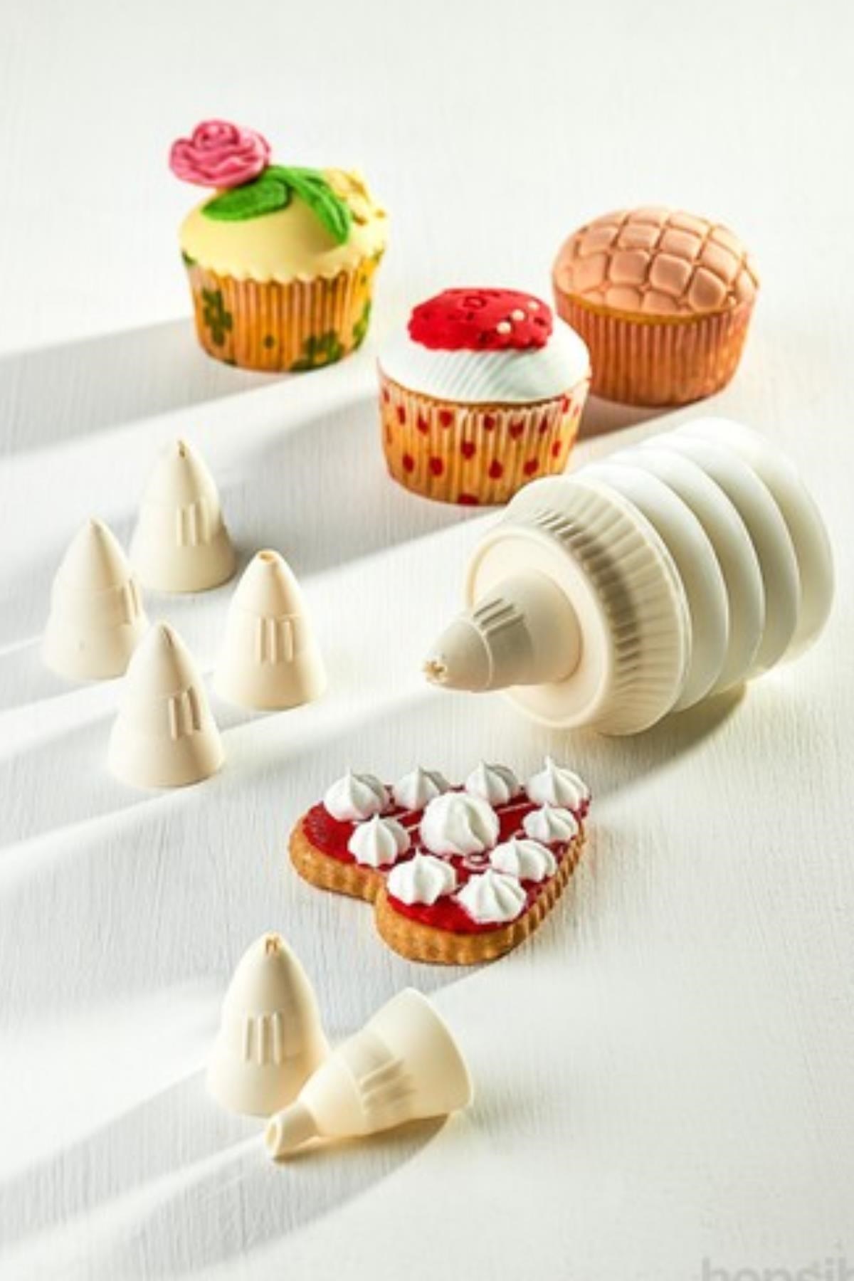 Körüklü plastik krema pompası, 7 farklı başlığı sayesinde istediğiniz şekilde krema sıkmanıza yardımcı olur