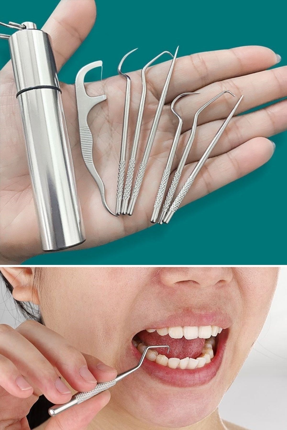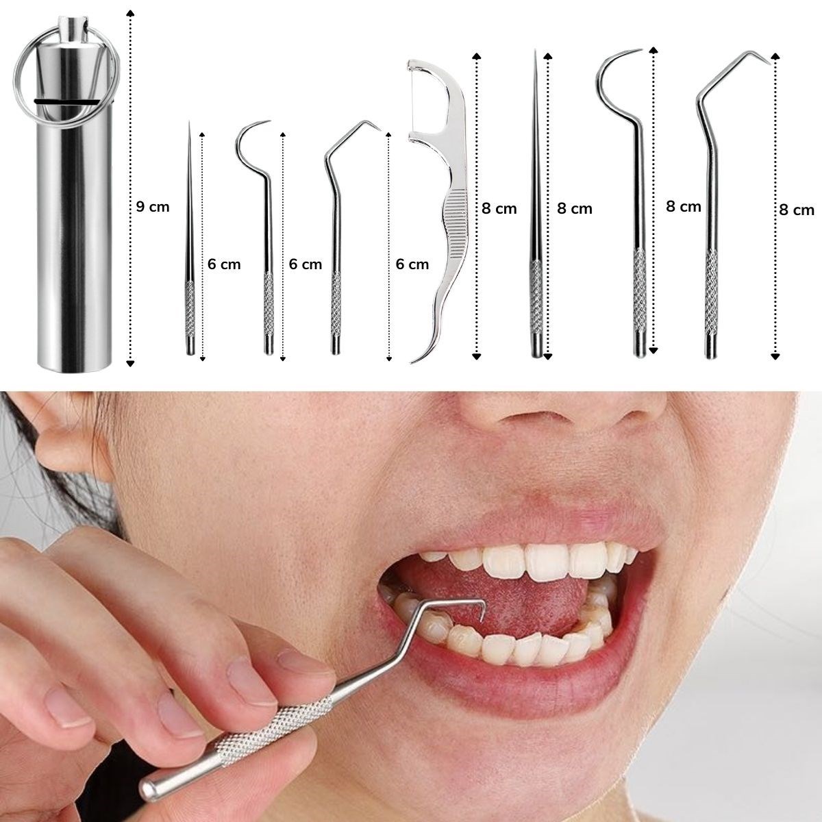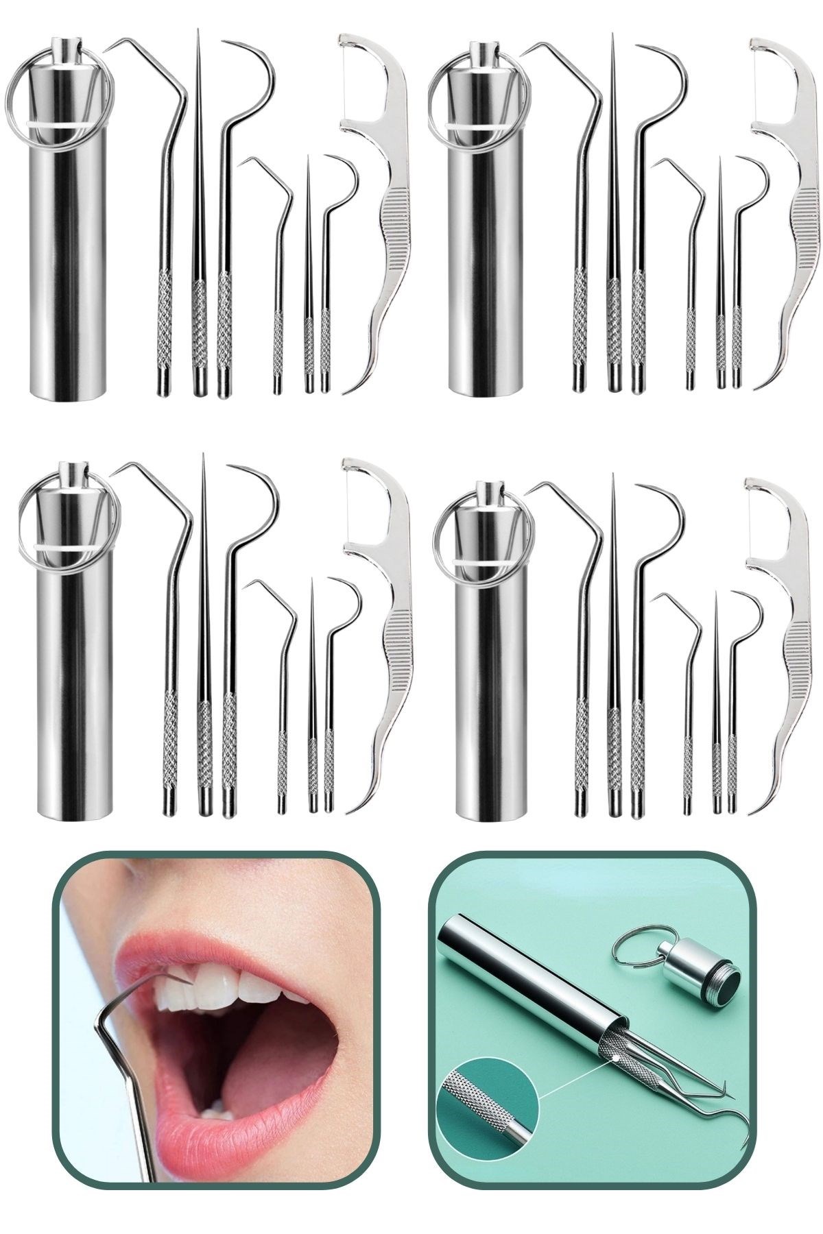 Kapsamlı temizlikten sonra tekrar tekrar kullanılabilir BUFFER® 8 Parça Paslanmaz Çelik Ağız Diş Tartar Sökücü Temizlik Bakım Seti