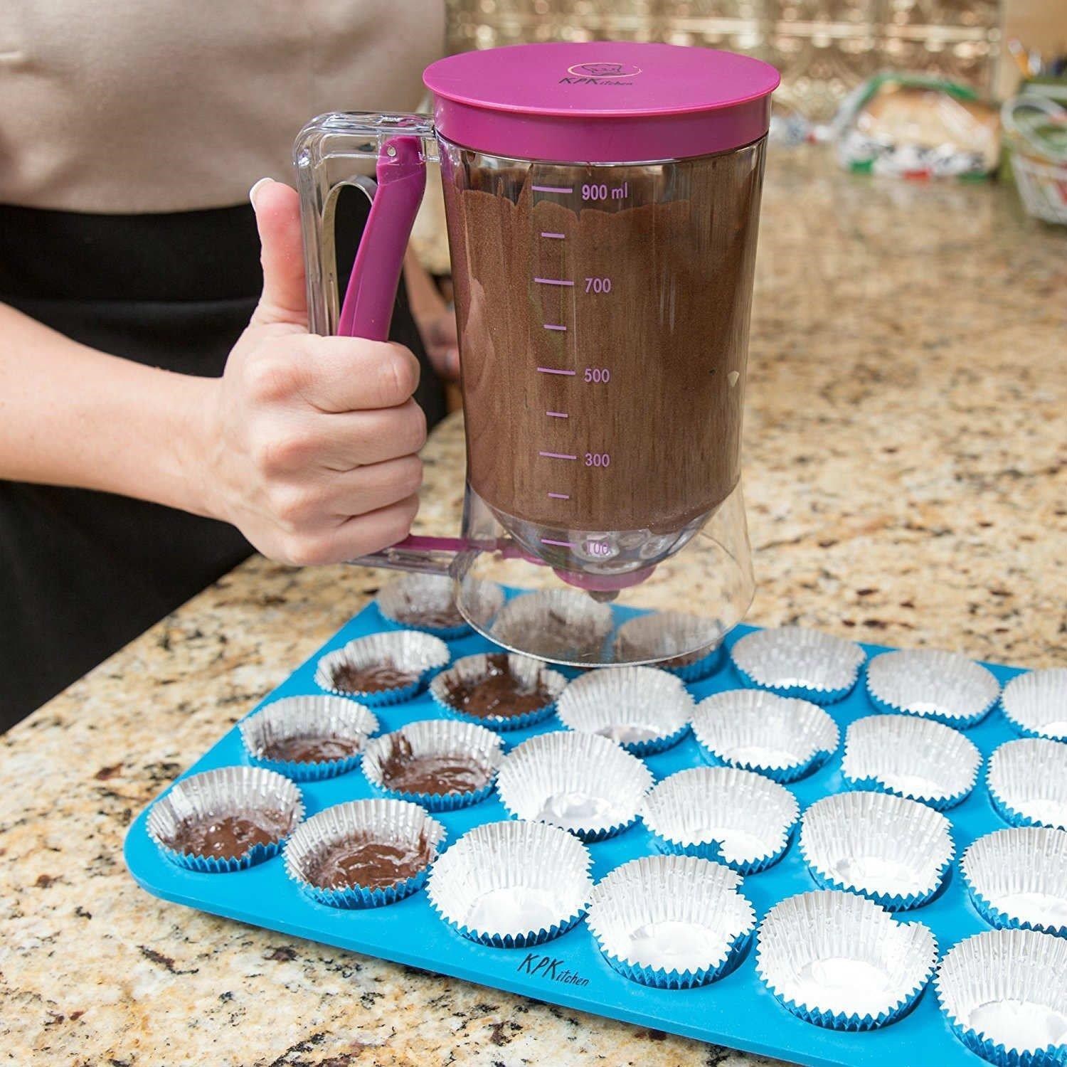 Krep, gözleme, çörek, Cupcakes, Pankek Browni ve Tutarlarıın hamurlarını dengeli ve kolay dağıtır