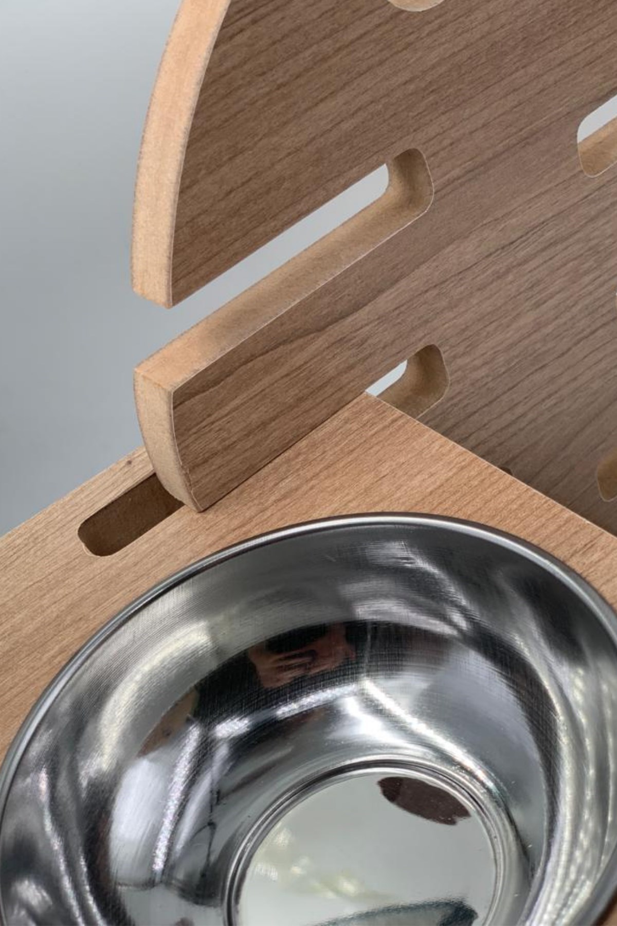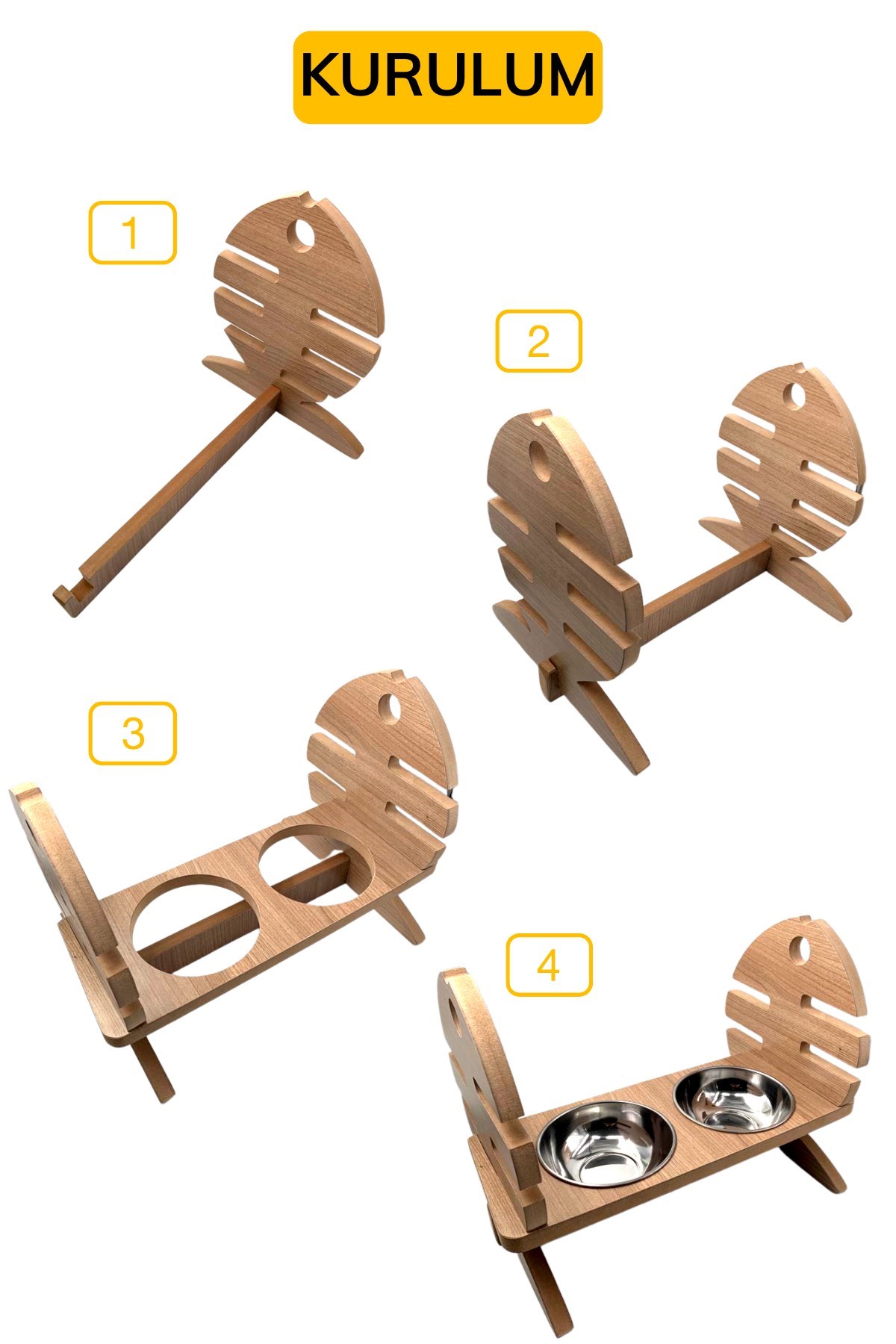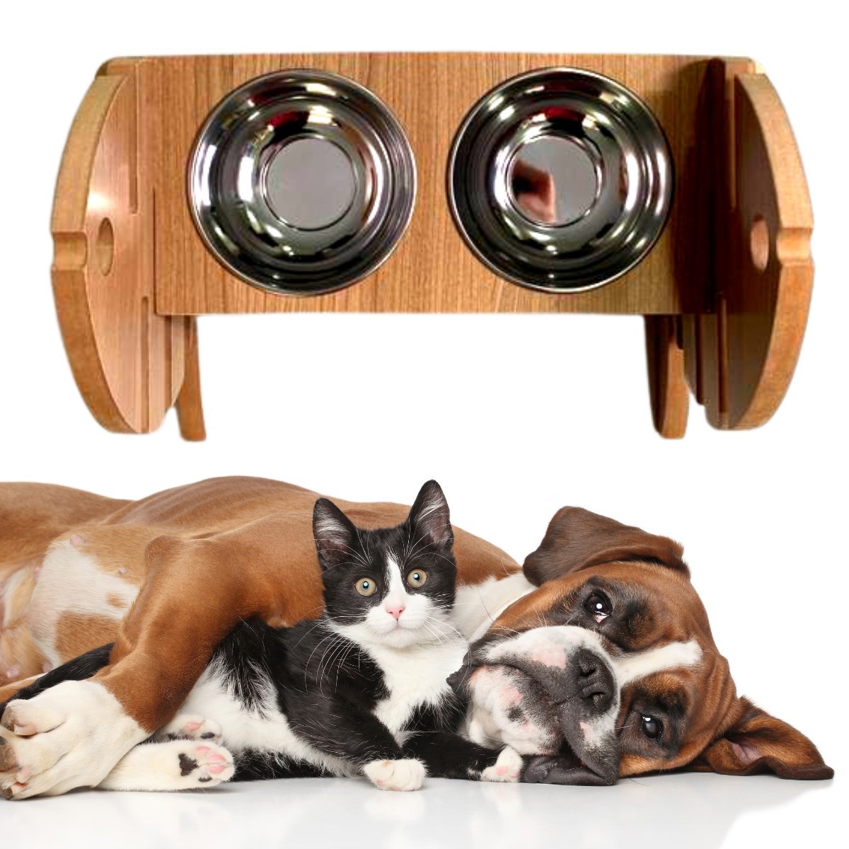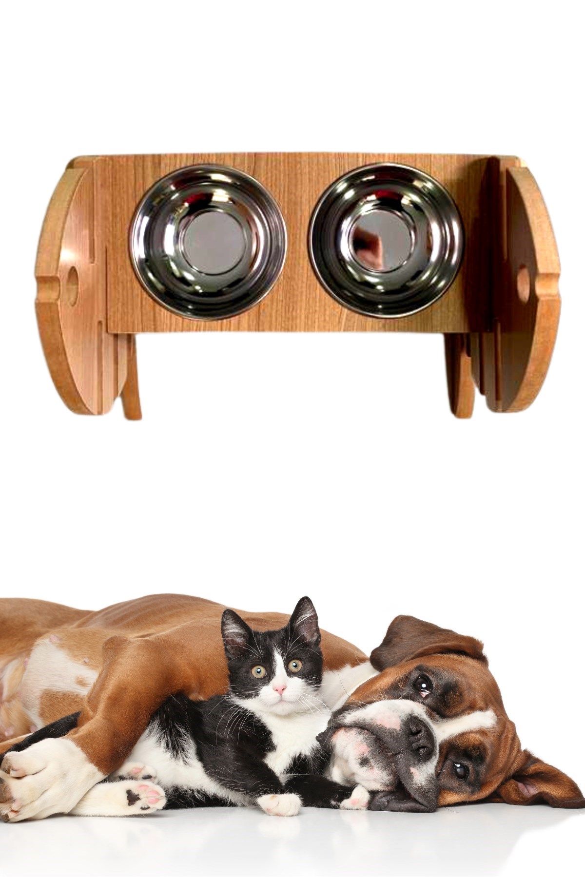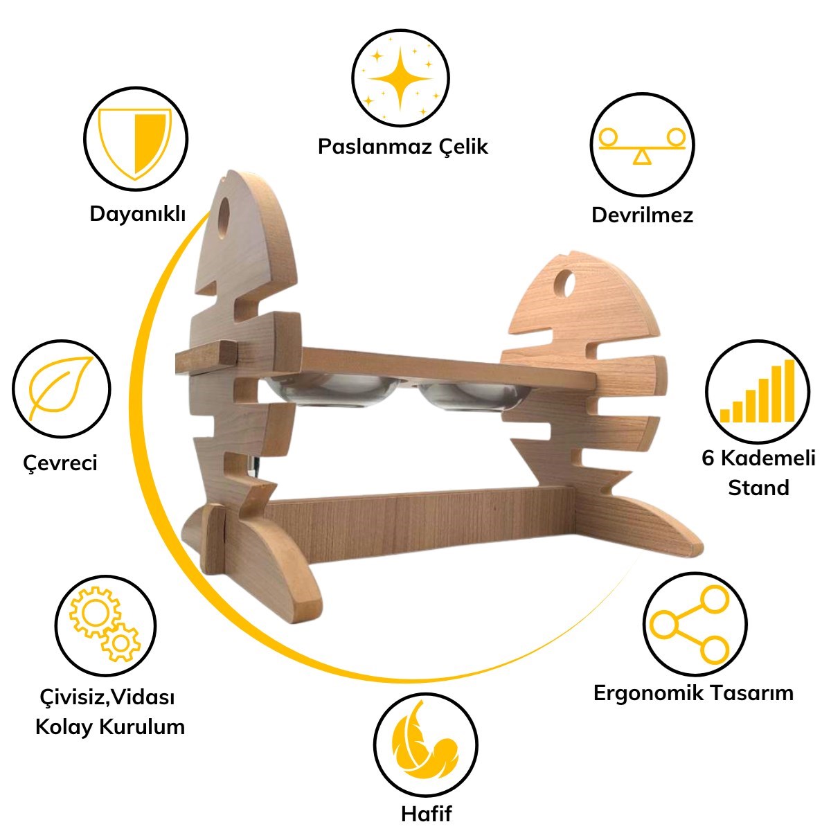 Buffer Ahşap Kedi Köpek Tavşan 6 Kademeli Ayarlanabilir İkili Paslanmaz Çelik Kase Su Mama Standı