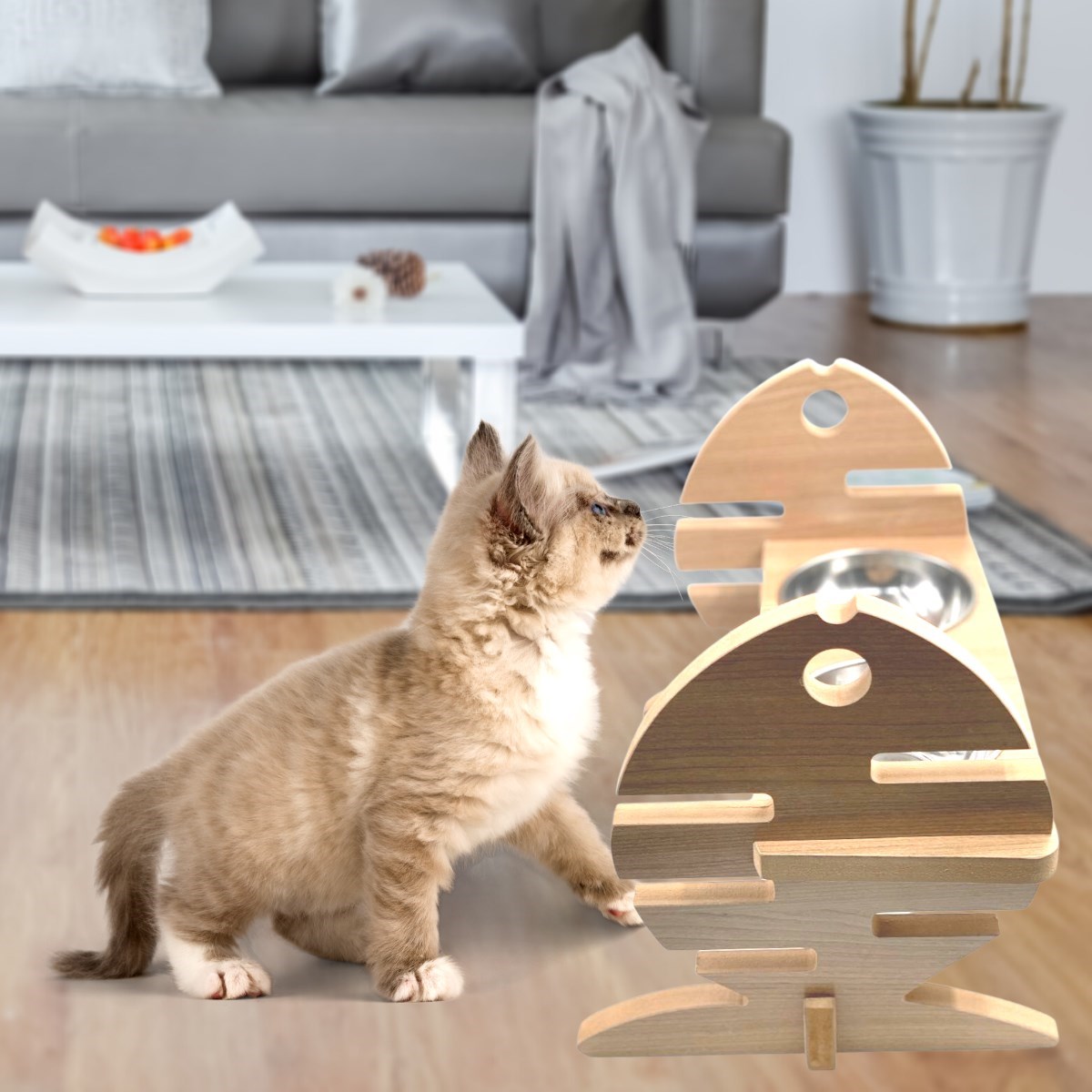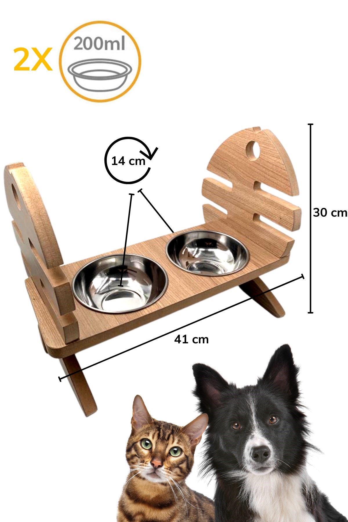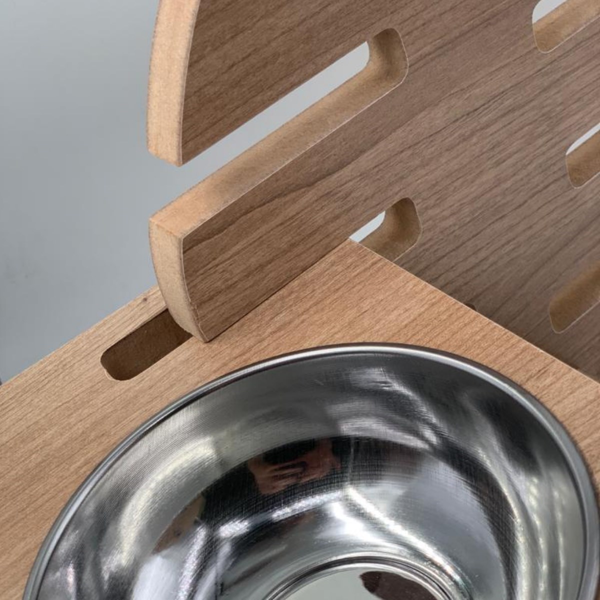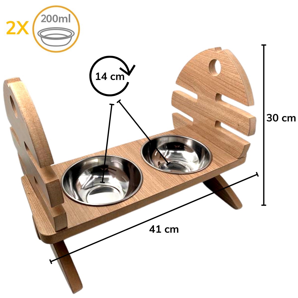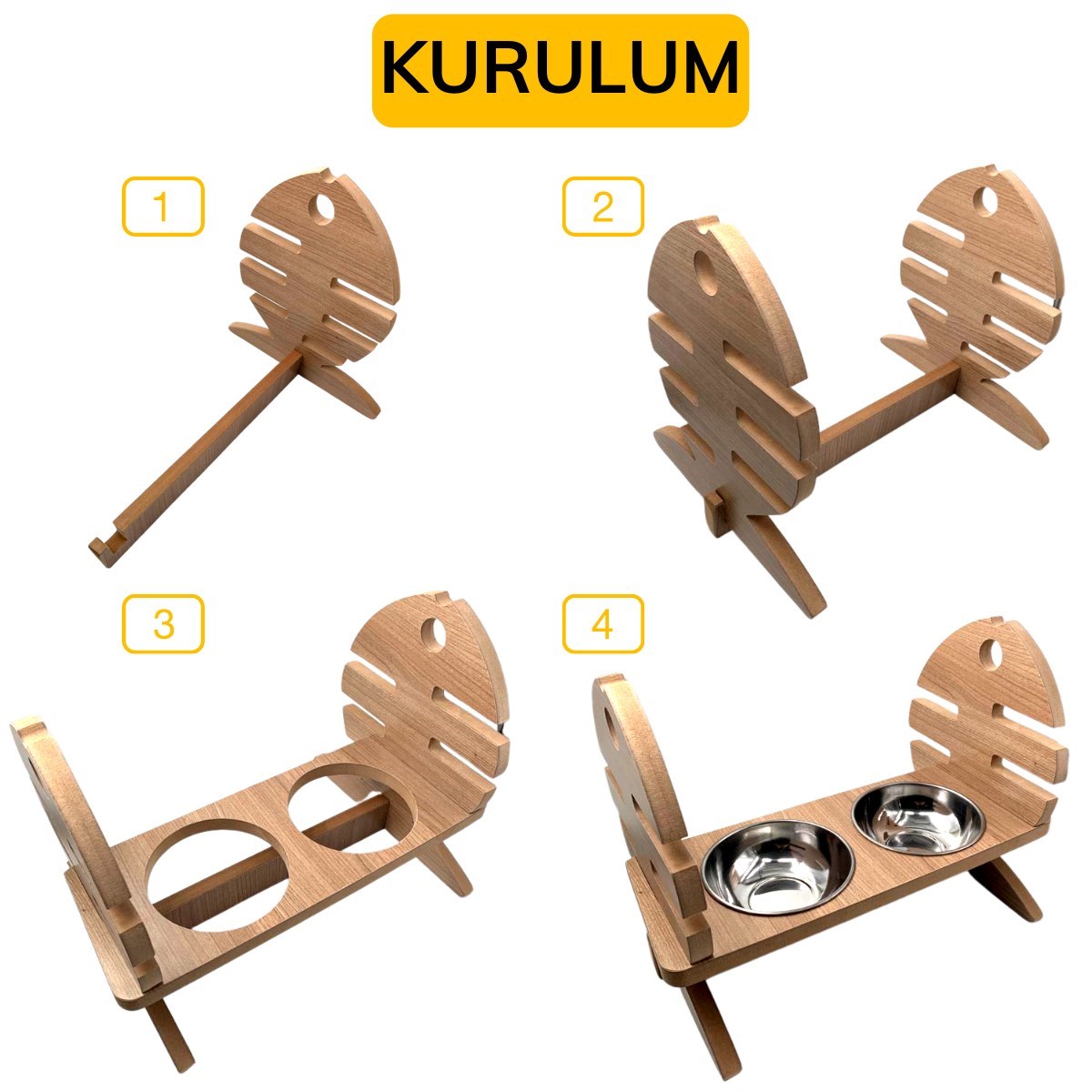 Buffer Ahşap Kedi Köpek Tavşan 6 Kademeli Ayarlanabilir İkili Paslanmaz Çelik Kase Su Mama Standı