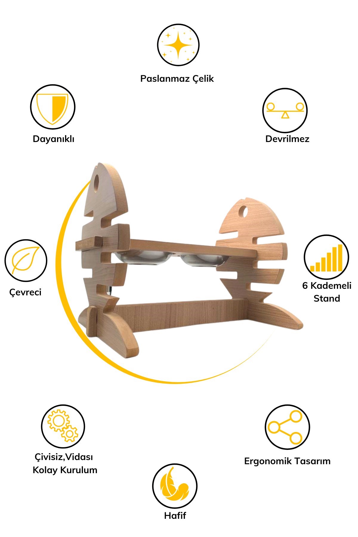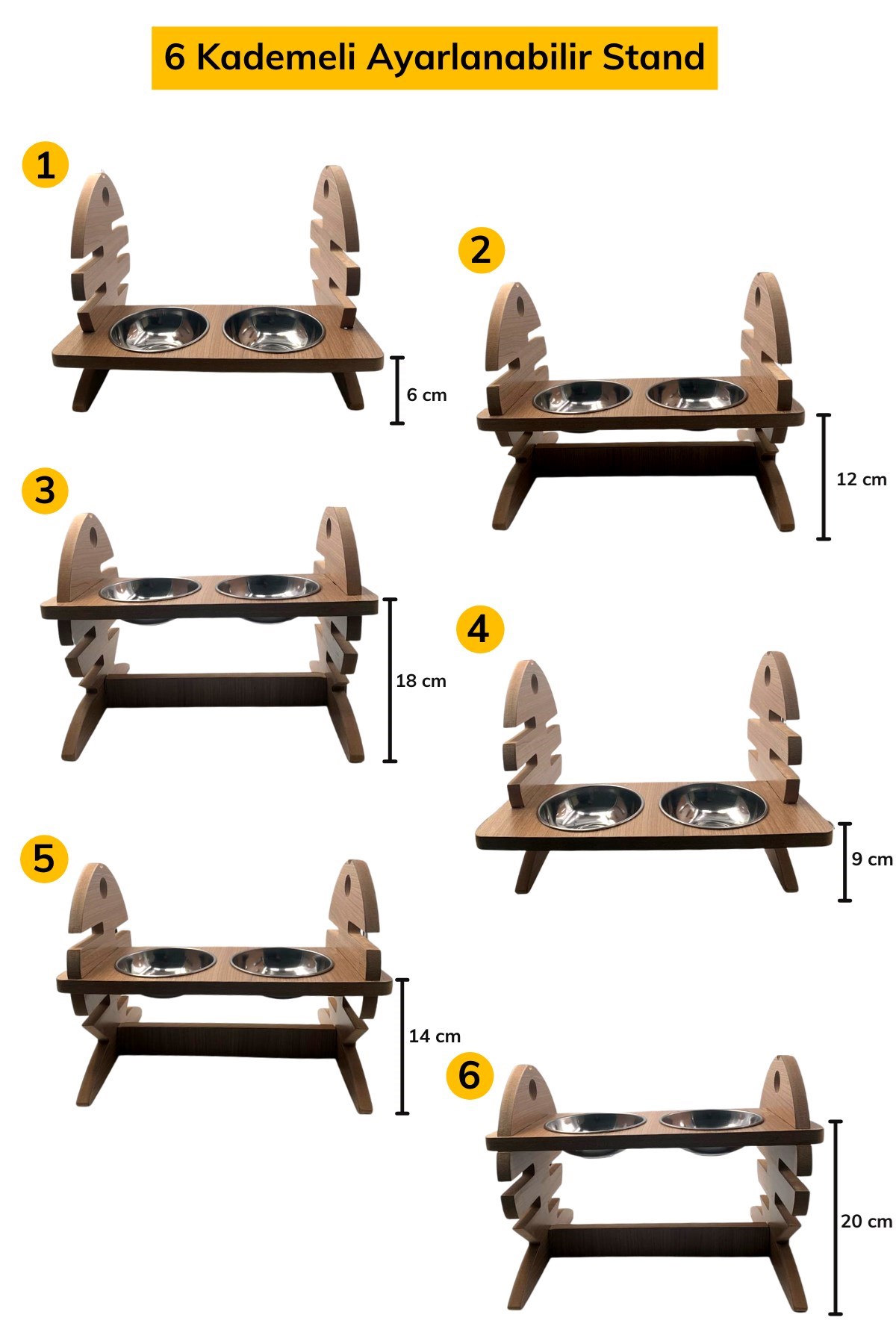 - Altı kademeli yüksekliği ayarlanabilir stand özelliğiyle evcil hayvanlarınızın kolayca mama ve su ihtiyacını karşılar