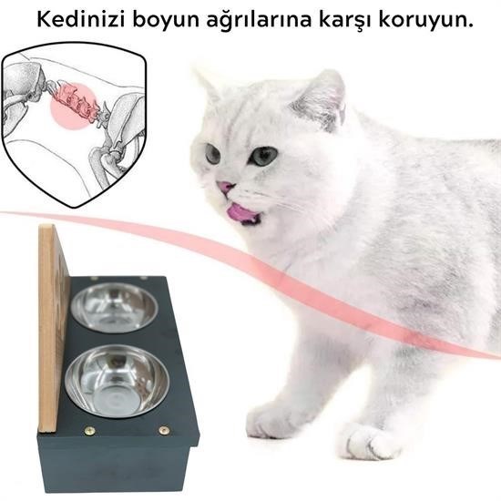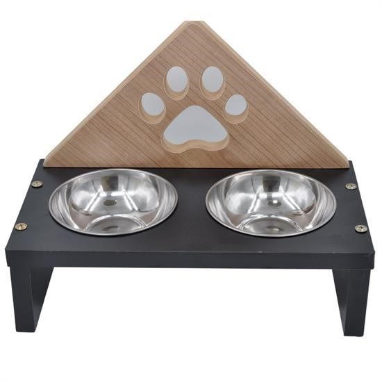 Ahşap evcil hayvan yemek masası, Su ve kedi köpek maması için farklı iki alan barındırmaktadır