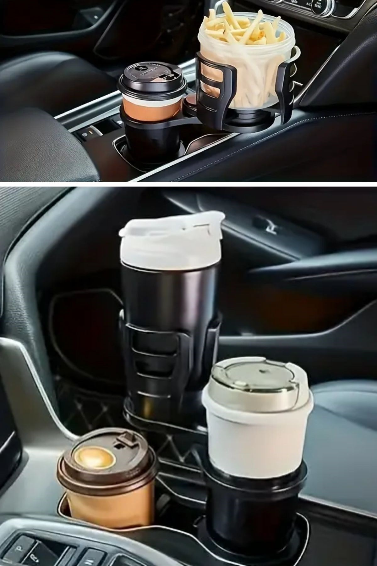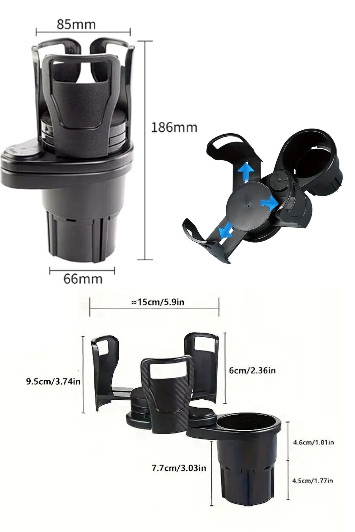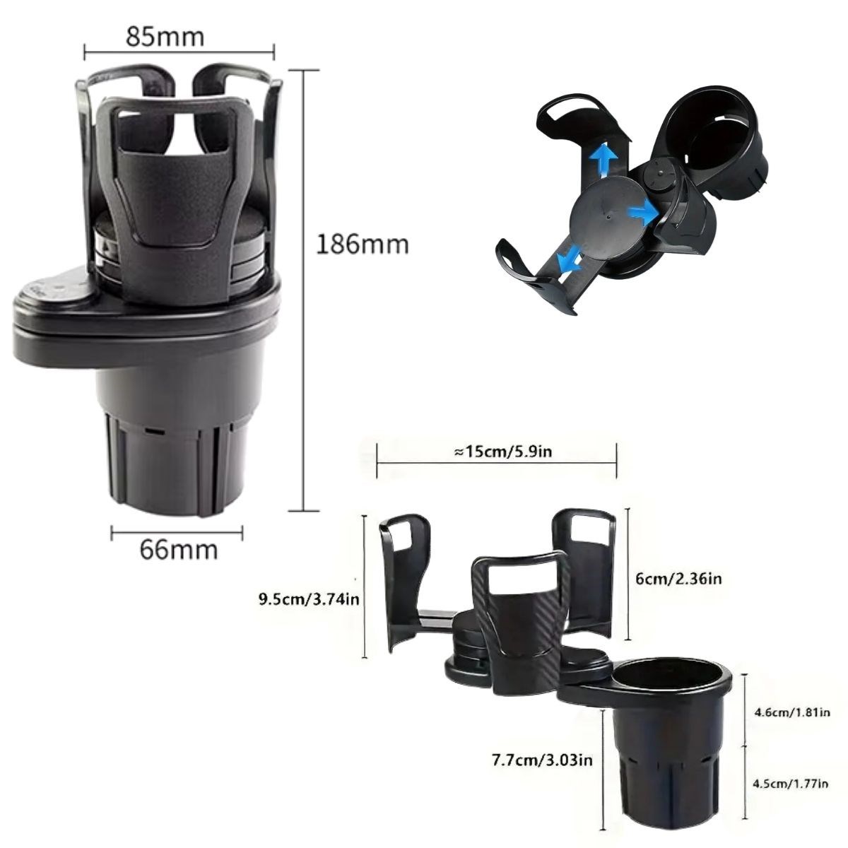 BUFFER® Araç İçi 360 Derece Dönen 2'li Bardaklıklı Açılarak Ayarlanabilir Bardak Tutucu Aparat