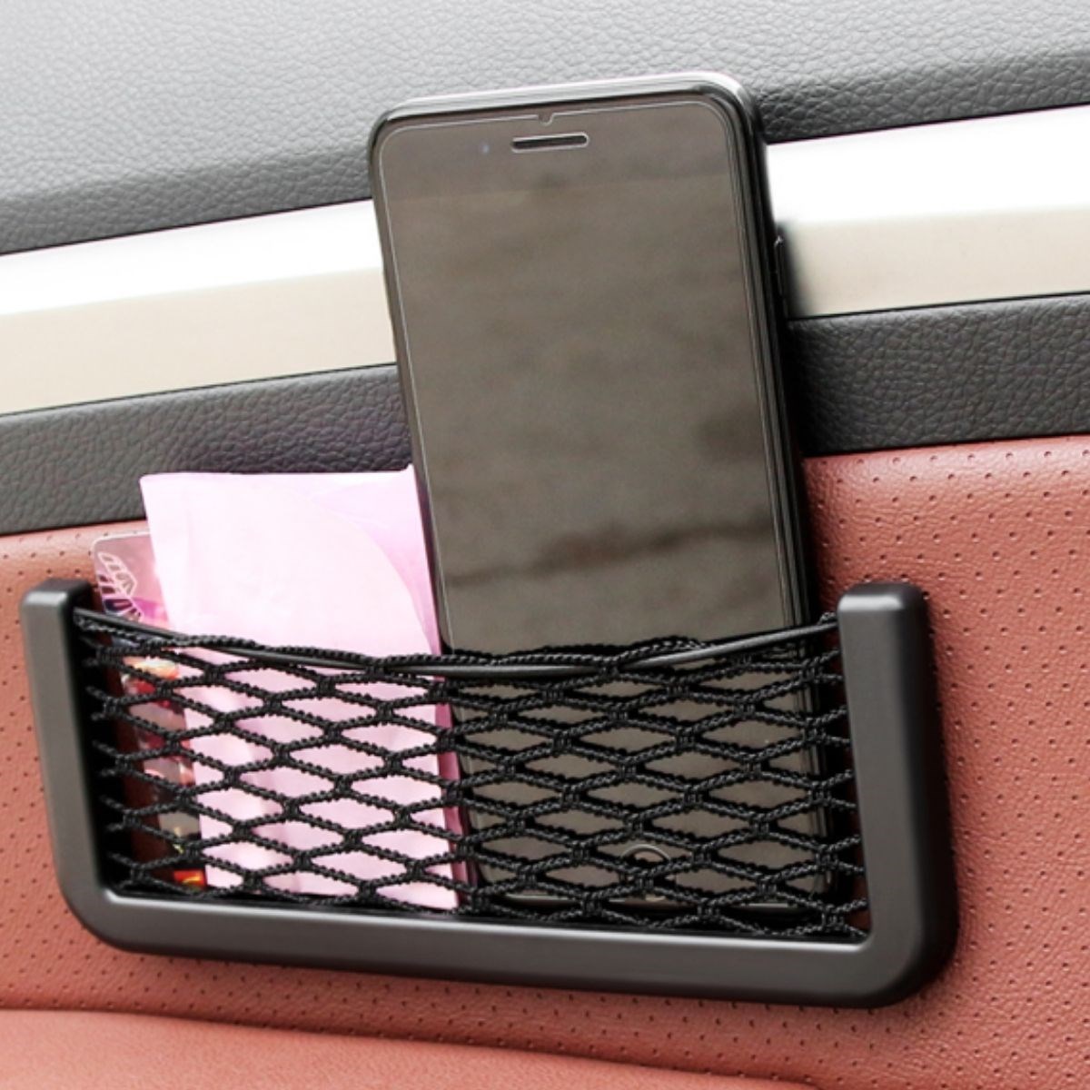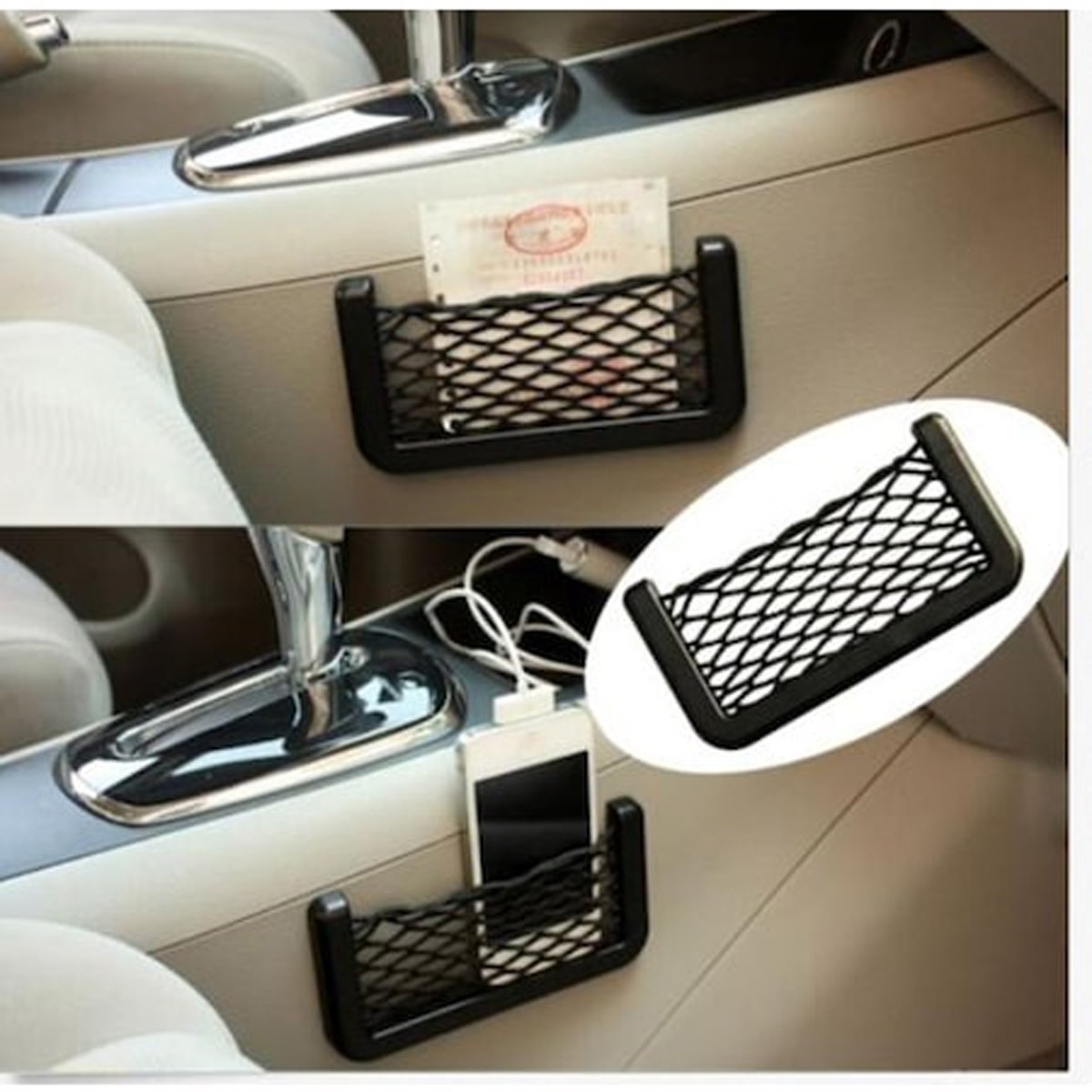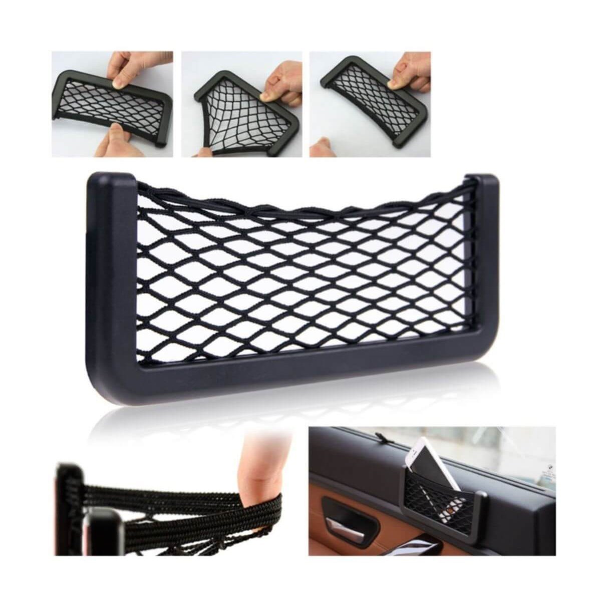 BUFFER® Araç İçi Fileli Pratik Göz Telefon İçin Yapışkanlı Fileli Ceplik