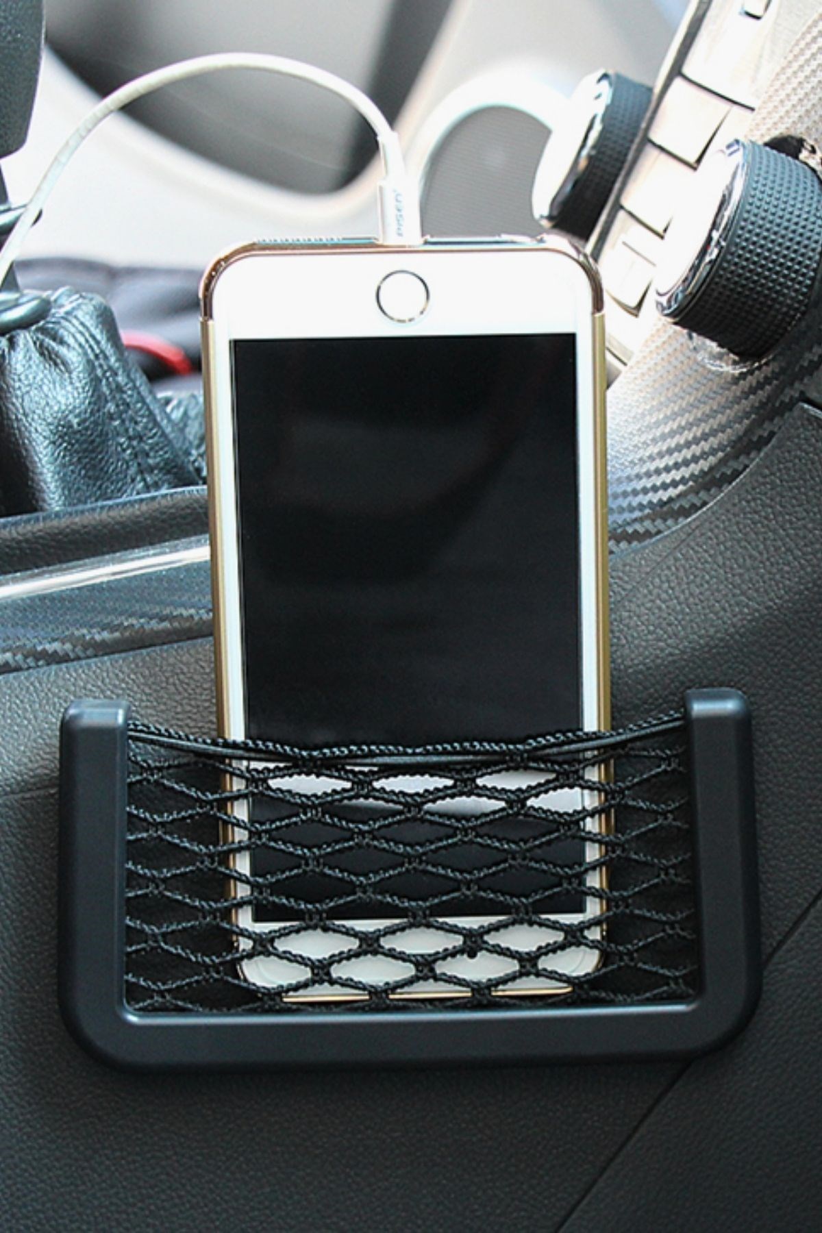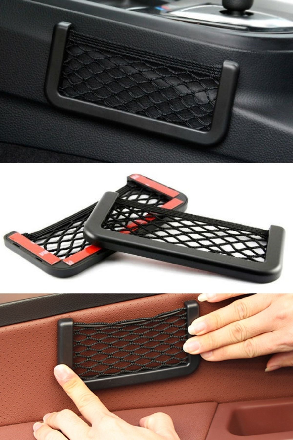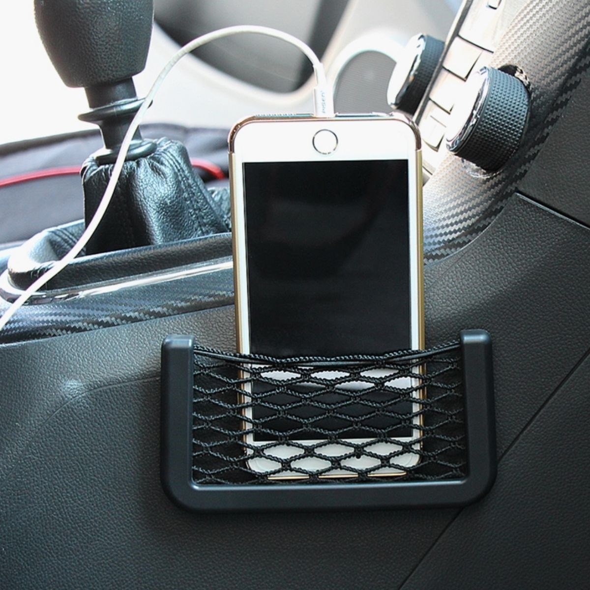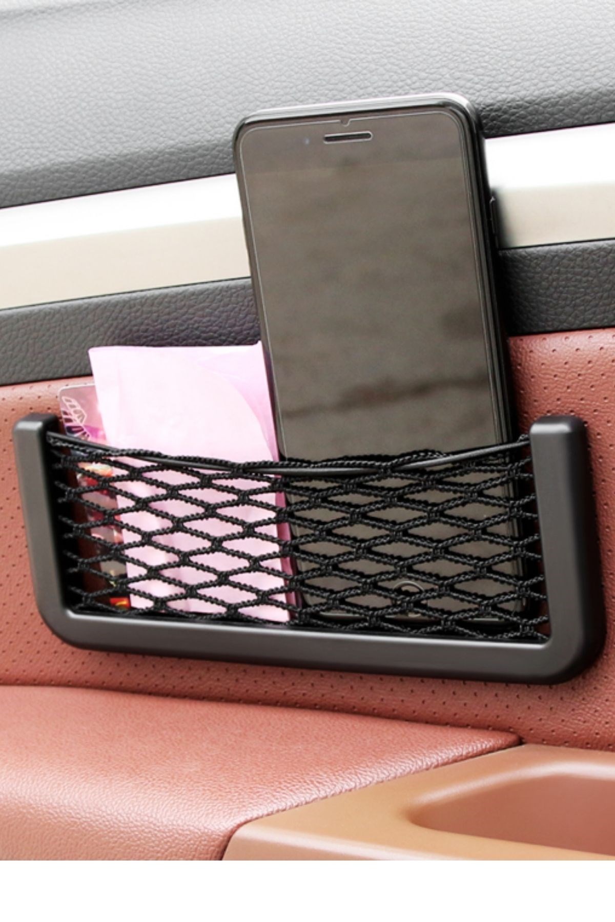 BUFFER® Araç İçi Fileli Pratik Göz Telefon İçin Yapışkanlı Fileli Ceplik