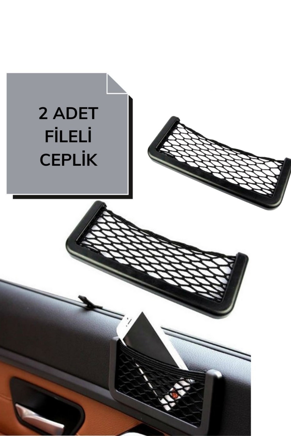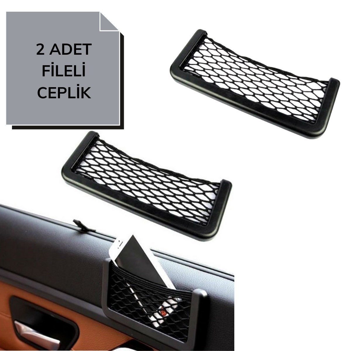 Araç İçi Fileli Pratik Göz Telefon İçin Yapışkanlı Fileli Ceplik