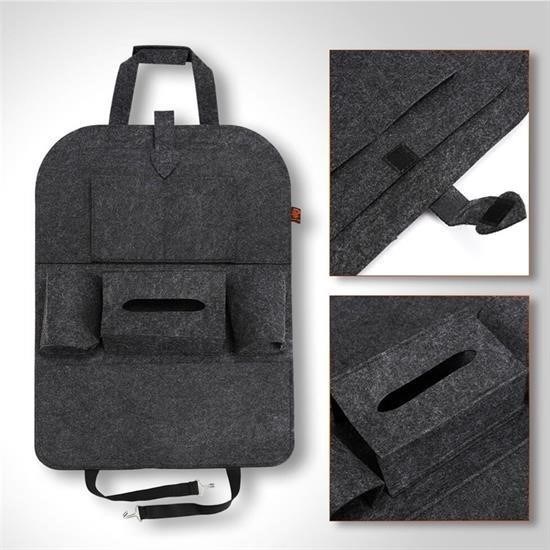 Koltuk Arkası Eşya Düzenleyici Araç Içi Organizer üzerindeki cırtcırt sistemi ile kolaylıkla araç koltuğuna sabitleyebilirsiniz