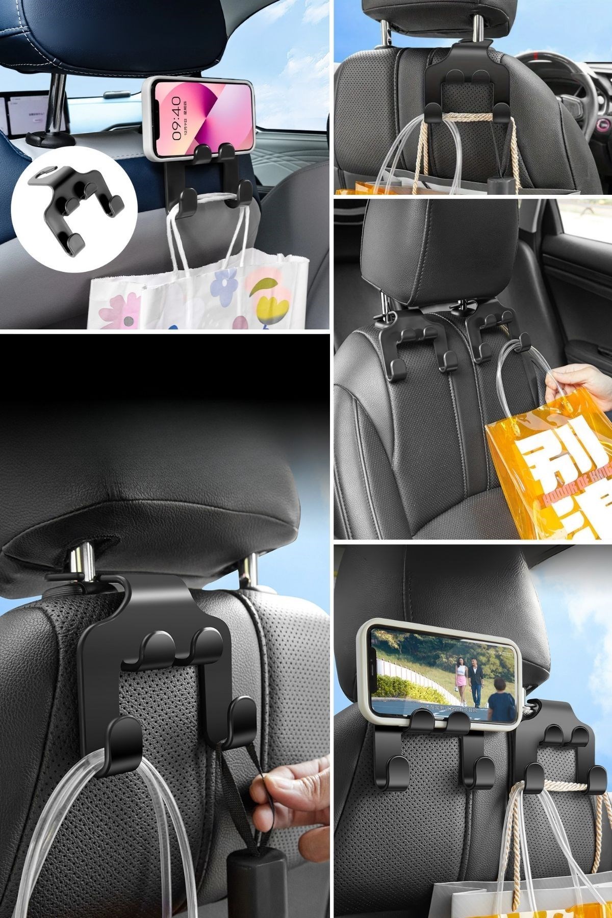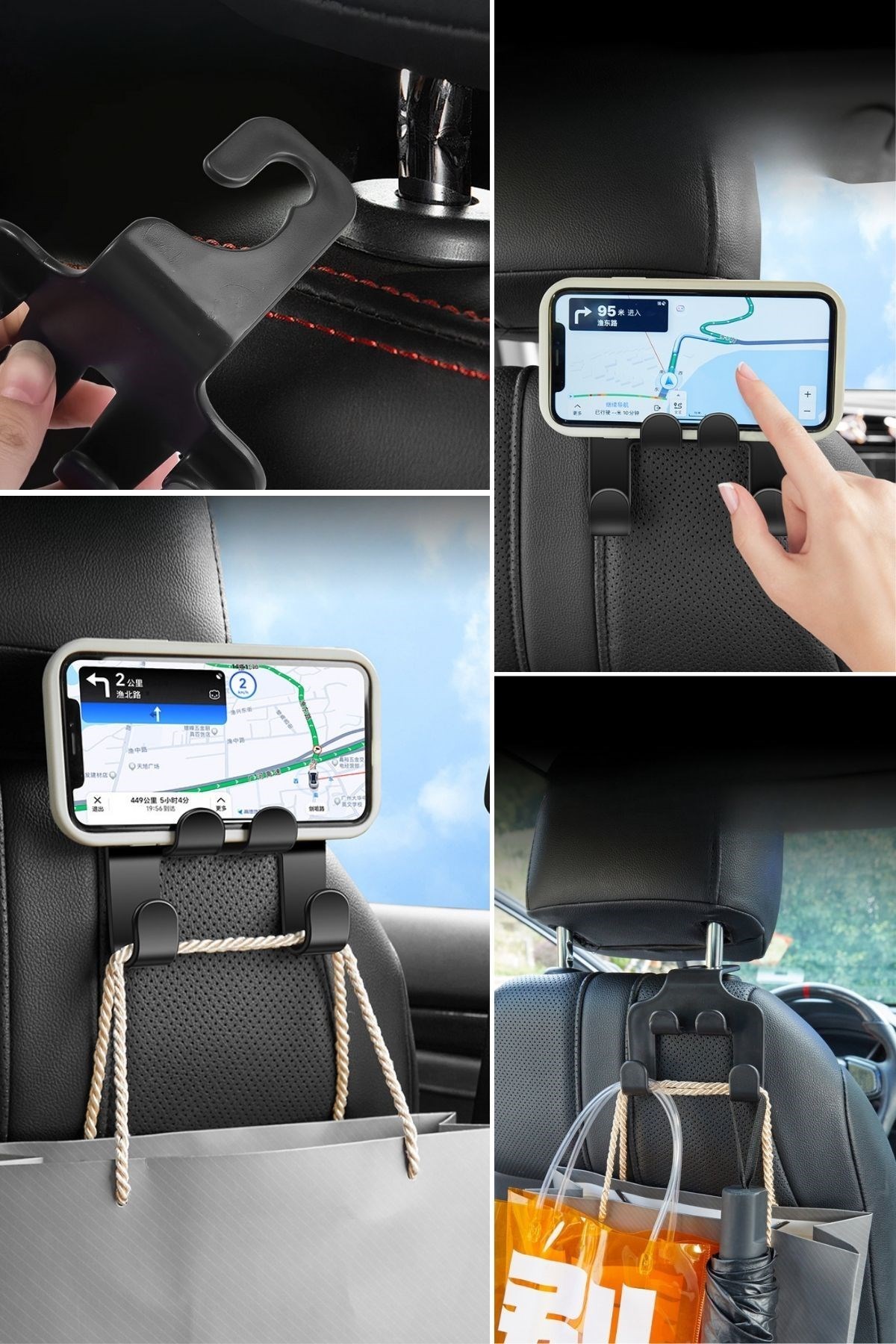 BUFFER® Araç Koltuk Arkasına Takılabilen Çanta,Poşet Askılıklı Telefon Tutuculu Düzenleyici Plastik Aparat Askılık