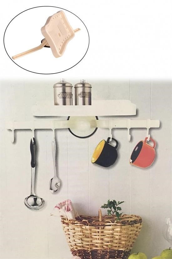 6 adet kancası bulunan Pratik Askılı Rafın üst tarafında eşyalarınızı koyabileceğiniz ayrı bir alan bulunur