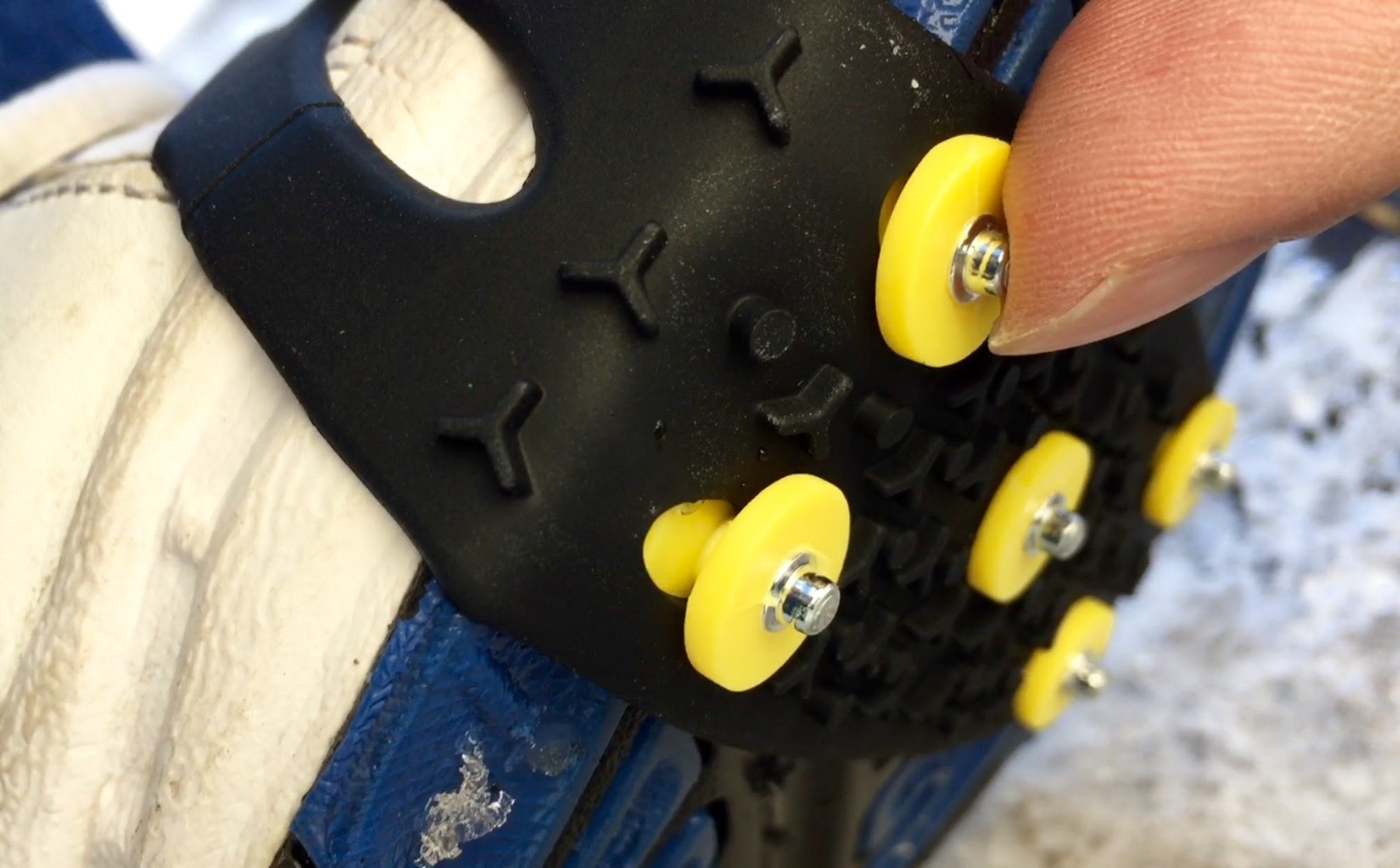 Bot Kaydırmaz Kar Zincir Aletinin çiviler alt tarafa gelecek şekilde ayakkabınızın burun kısmından takınız