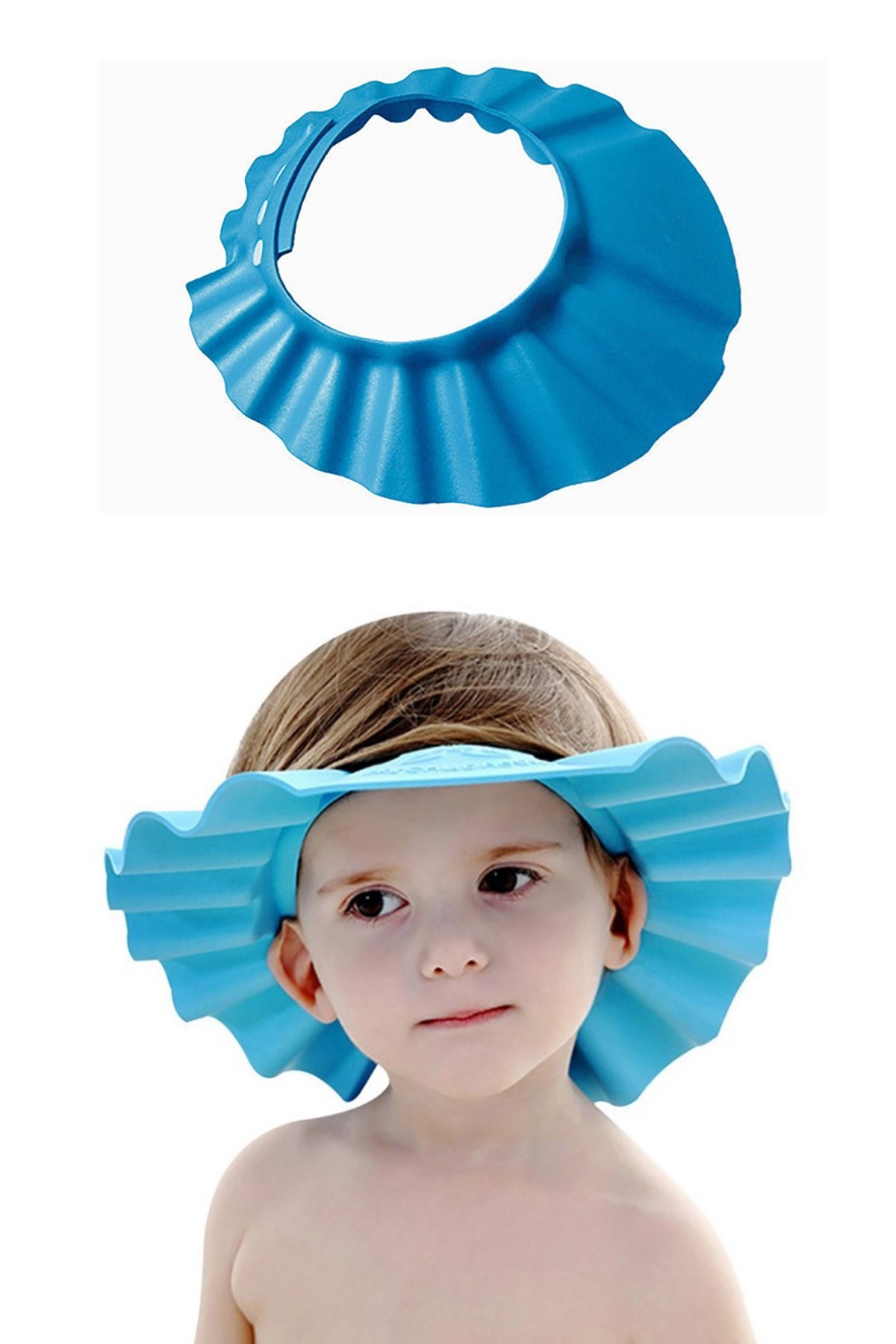 BUFFER® Ayarlanabilir Bebek Banyo Şapkası Mavi Küvet Şapkası Başlığı