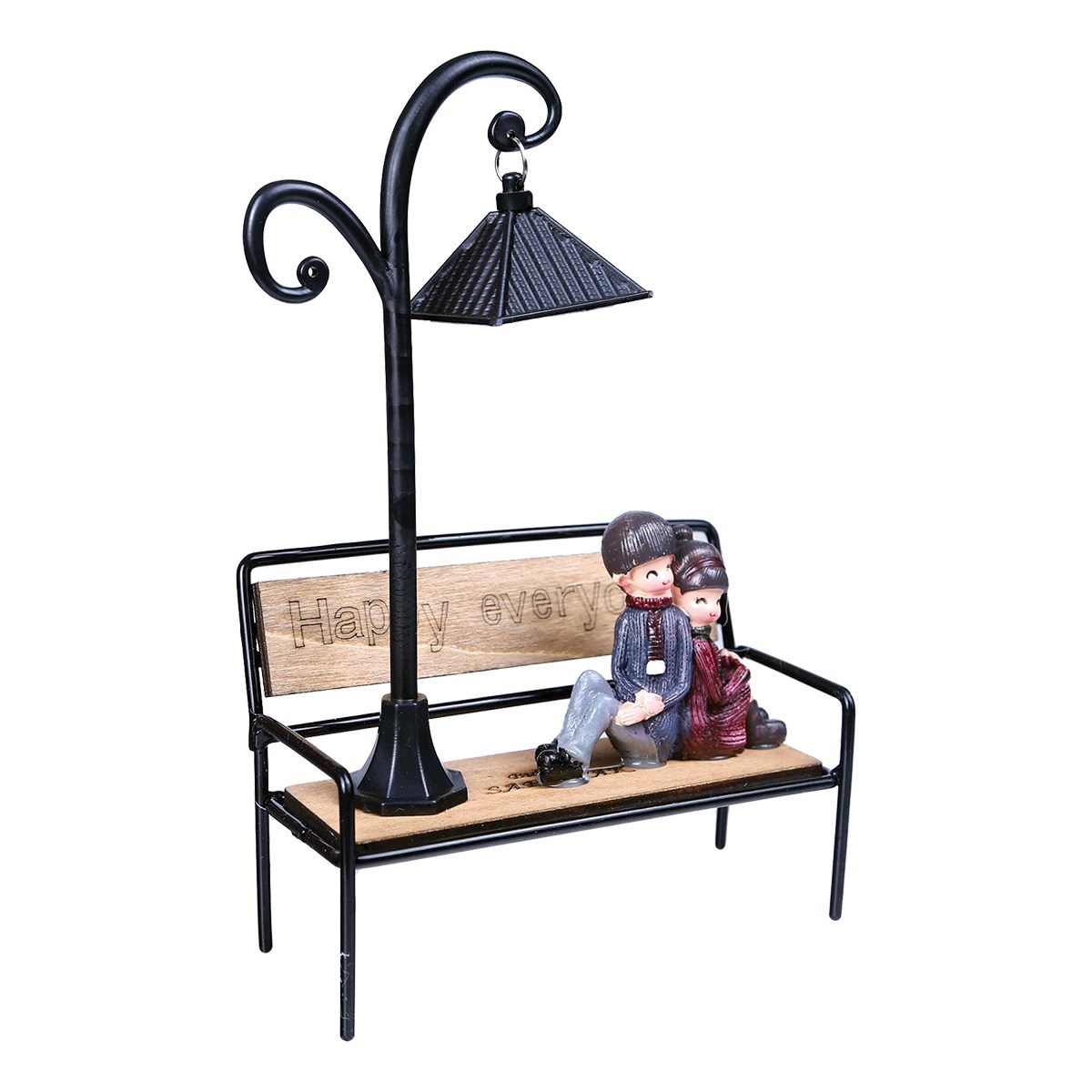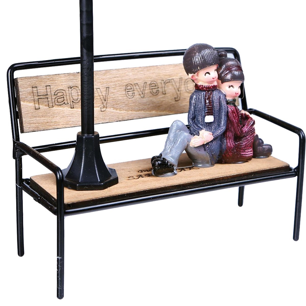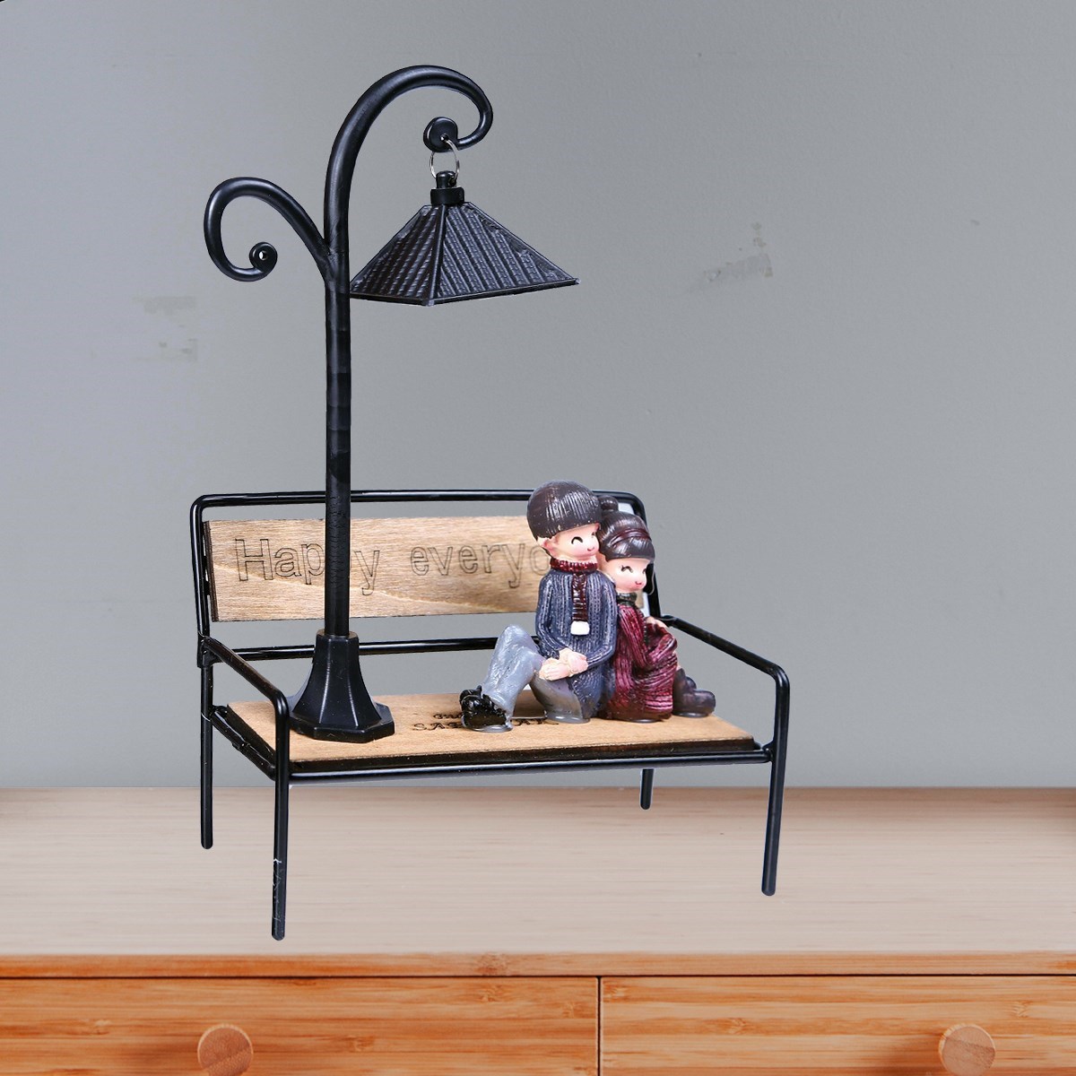 BUFFER® Bankta Sokak Lambası Altında Oturan Aşıklar Işıklı Süs Biblo