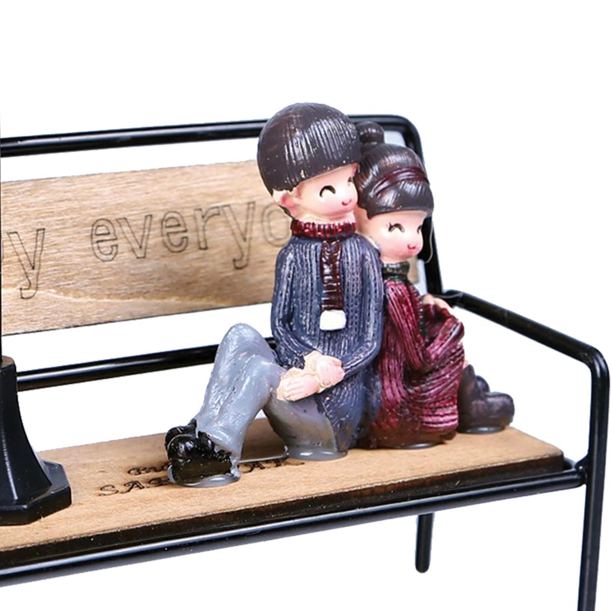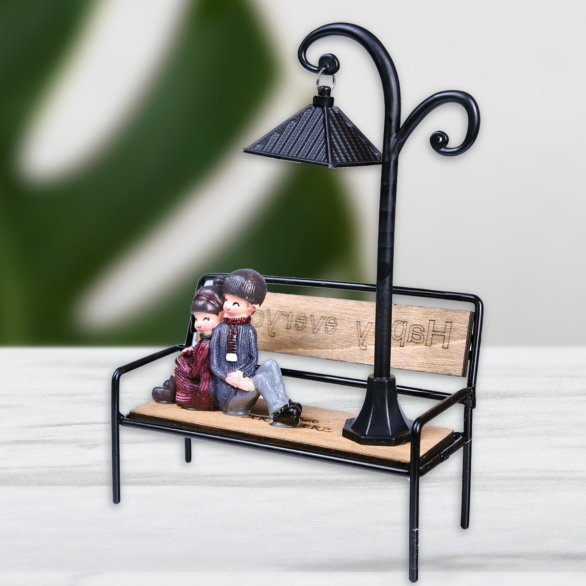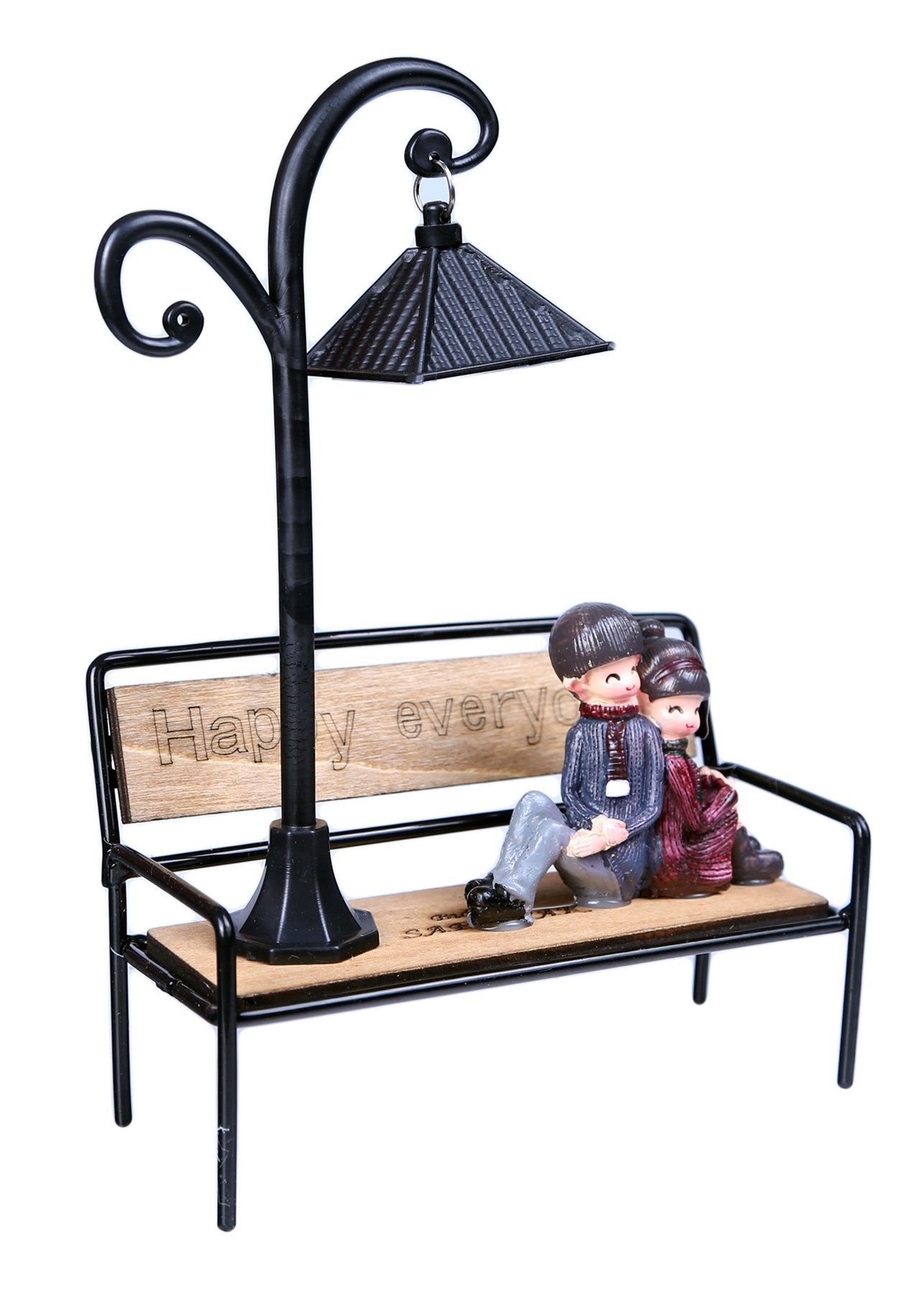 BUFFER® Bankta Sokak Lambası Altında Oturan Aşıklar Işıklı Süs Biblo