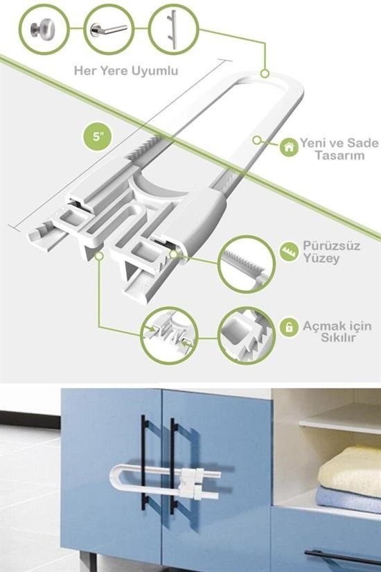 BUFFER® Bebek Çocuk Çekmece ve Dolap Koruma Raylı Güvenlik Sistemi Emniyet Kilidi