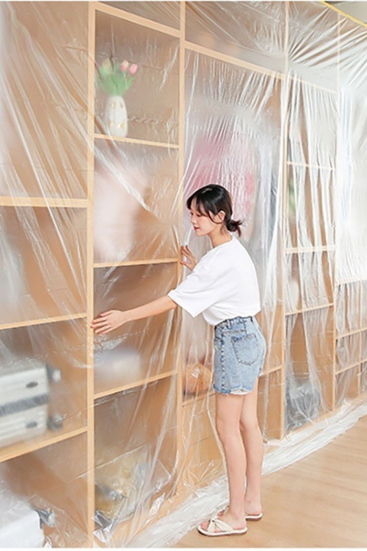 Bu yapışkanlı hışır örtüsü, yapılan işler sırasında eşyalarınızın ve mobilyalarınızın güvenliğini sağlarken, temiz ve korunmuş kalmasını sağlar.