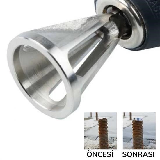 Buffer çapak temizleyici ile oldukça kolay bir şekilde cıvatalarınızın ucundaki paslı alanlardan kurtulabilir aynı zamanda hasarlı cıvataları da rahatça onararak daha sağlam somunlar elde edebilirsiniz