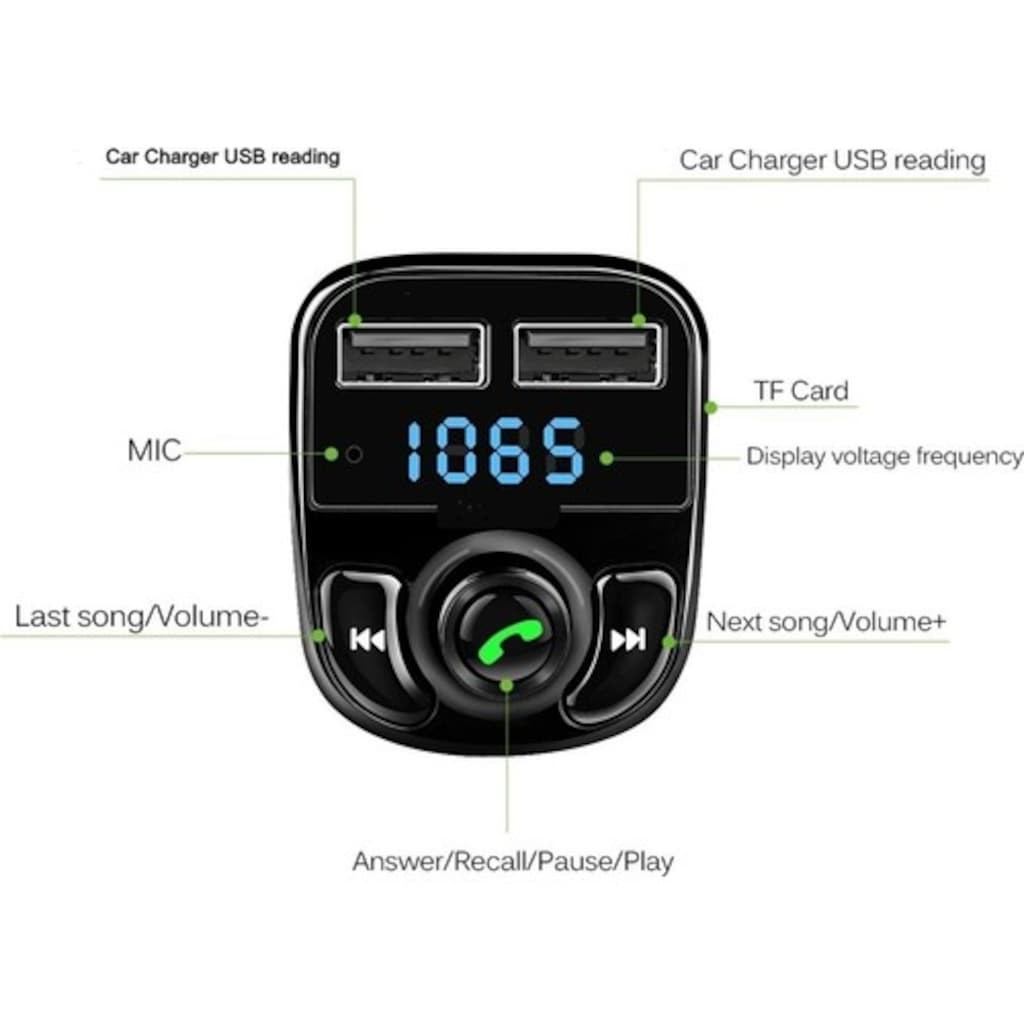 Car X8 Araç Fm Transmitter Bluetooth Usb Mp3 Sd Kart Çakmaklık Girişli Oto Müzik Çalar Kiti Kablosuz