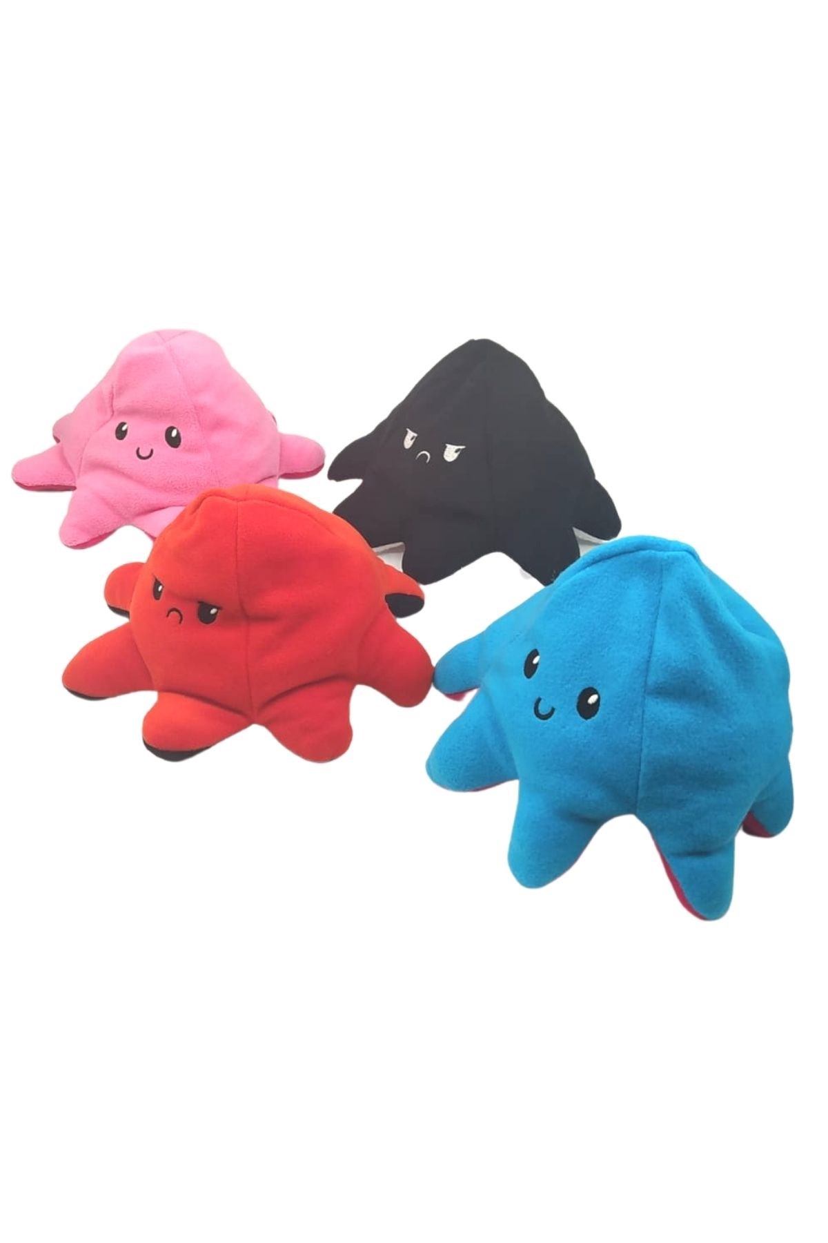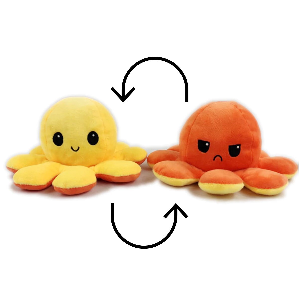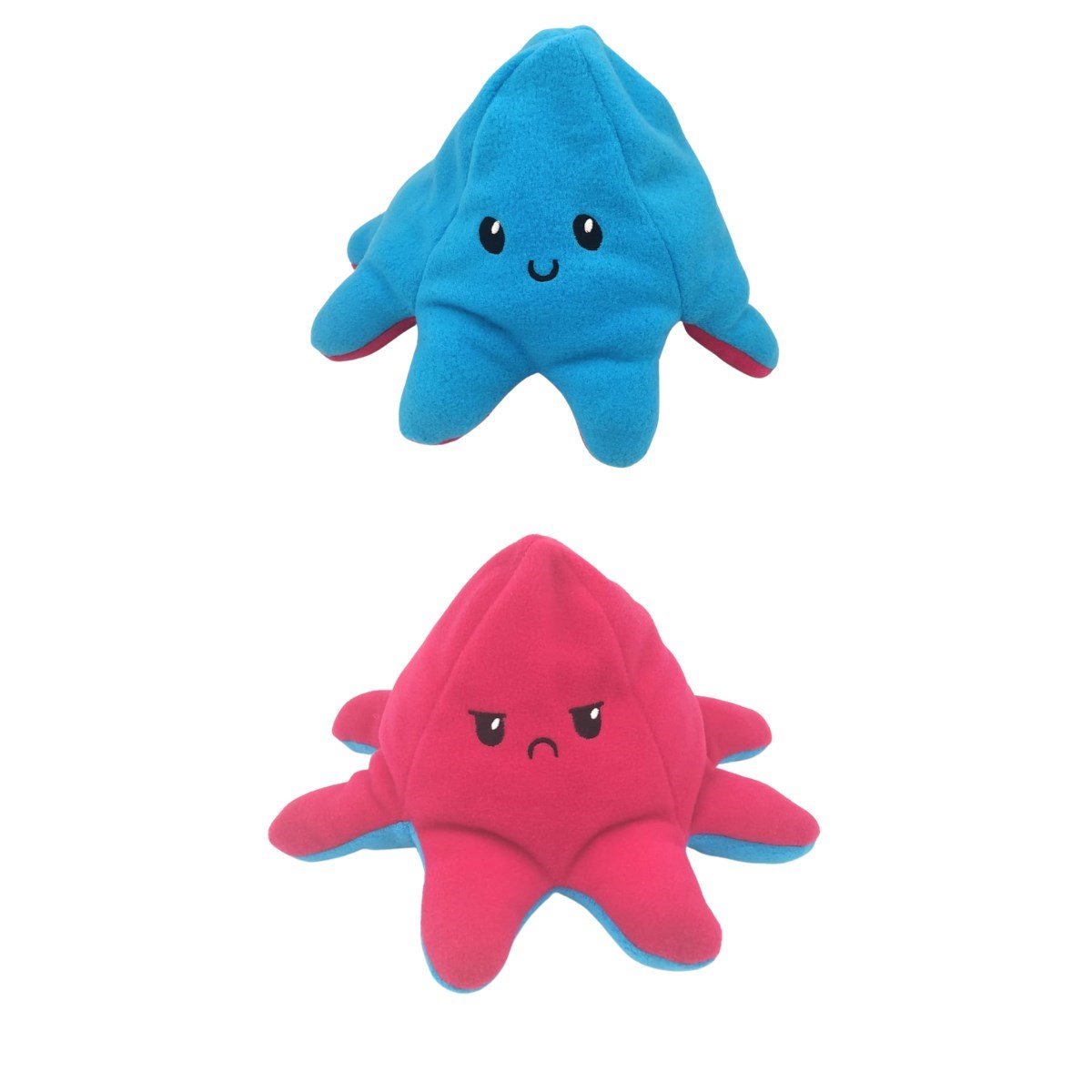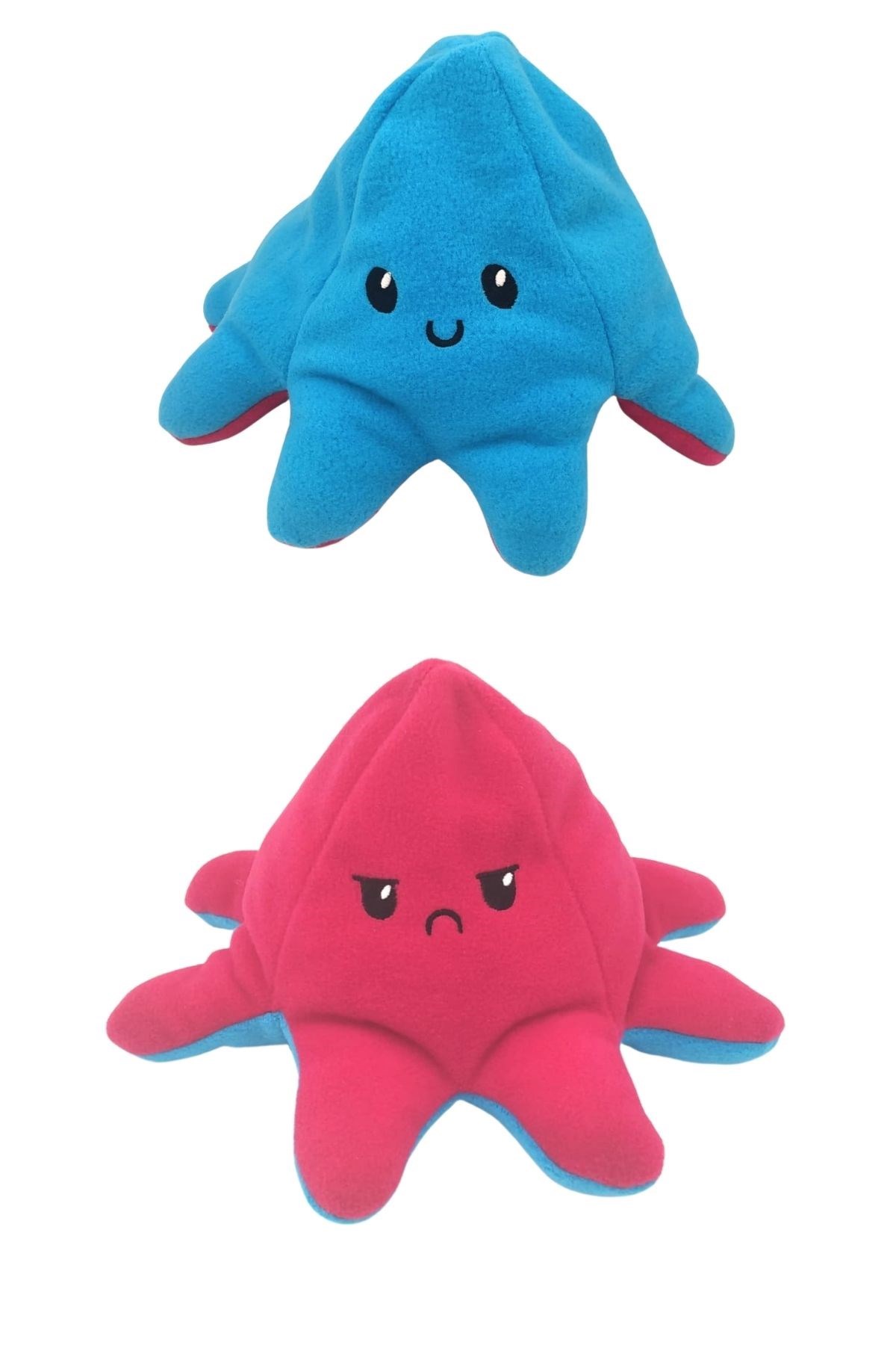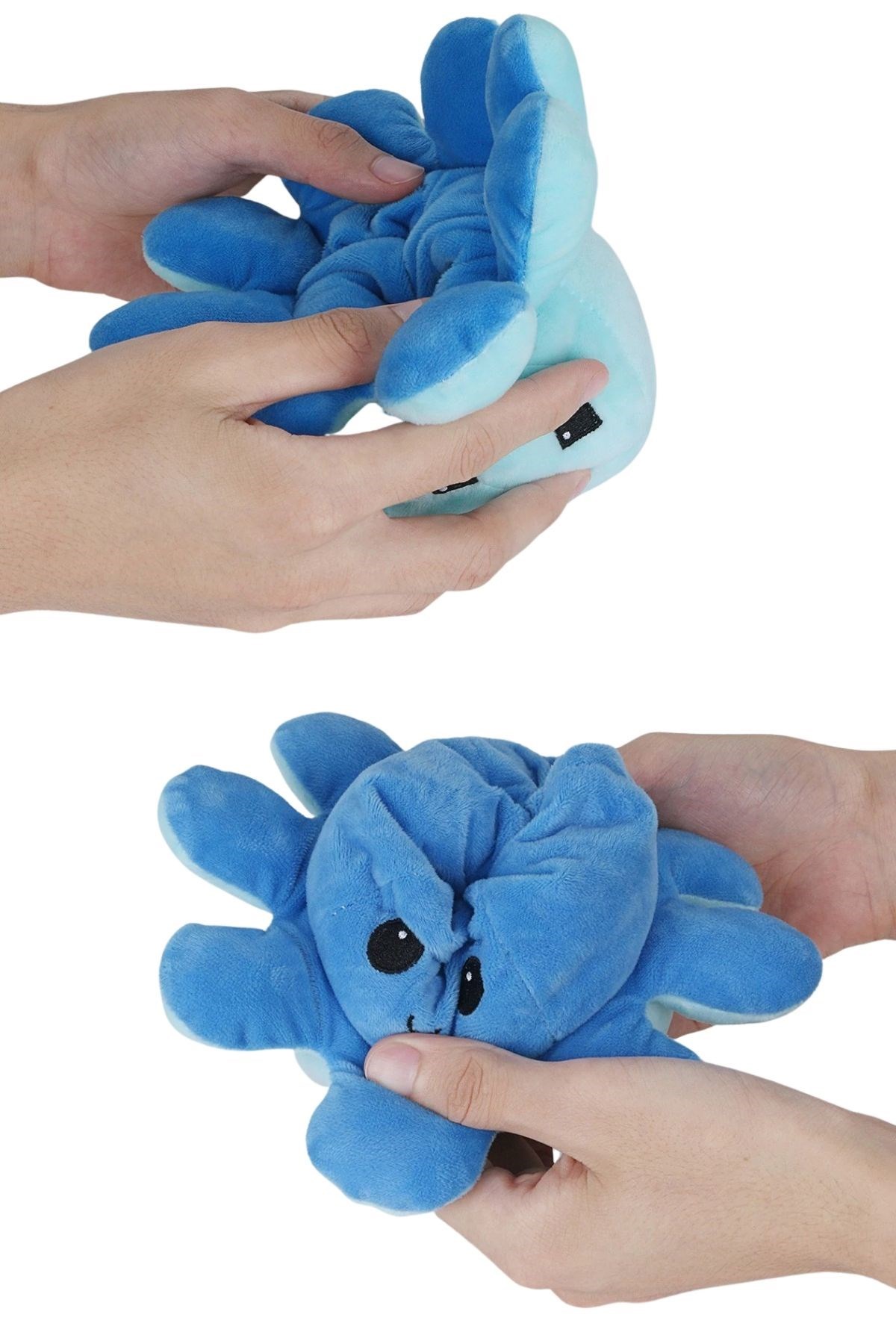 Sevimli peluş ahtapot yastık mutlu ve kızgın olmak üzere çift taraflıdır