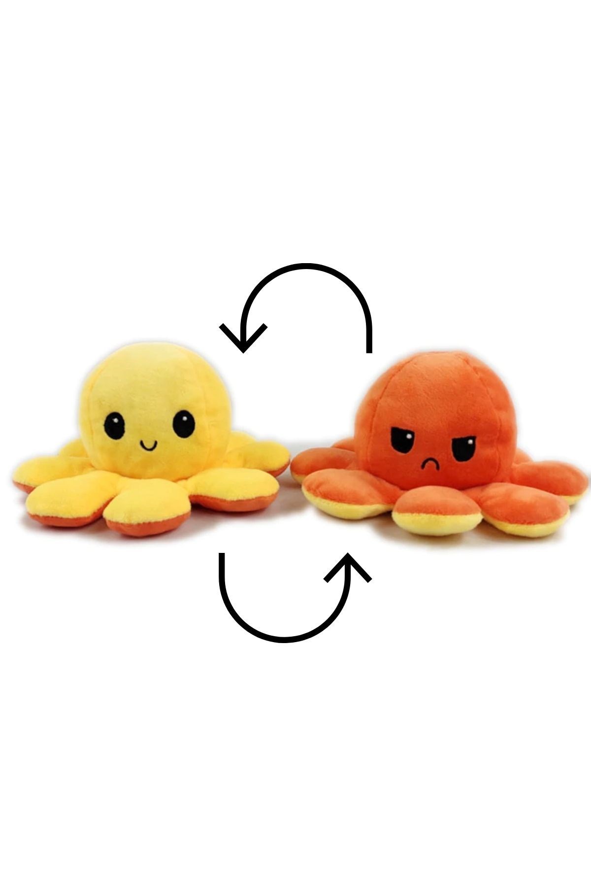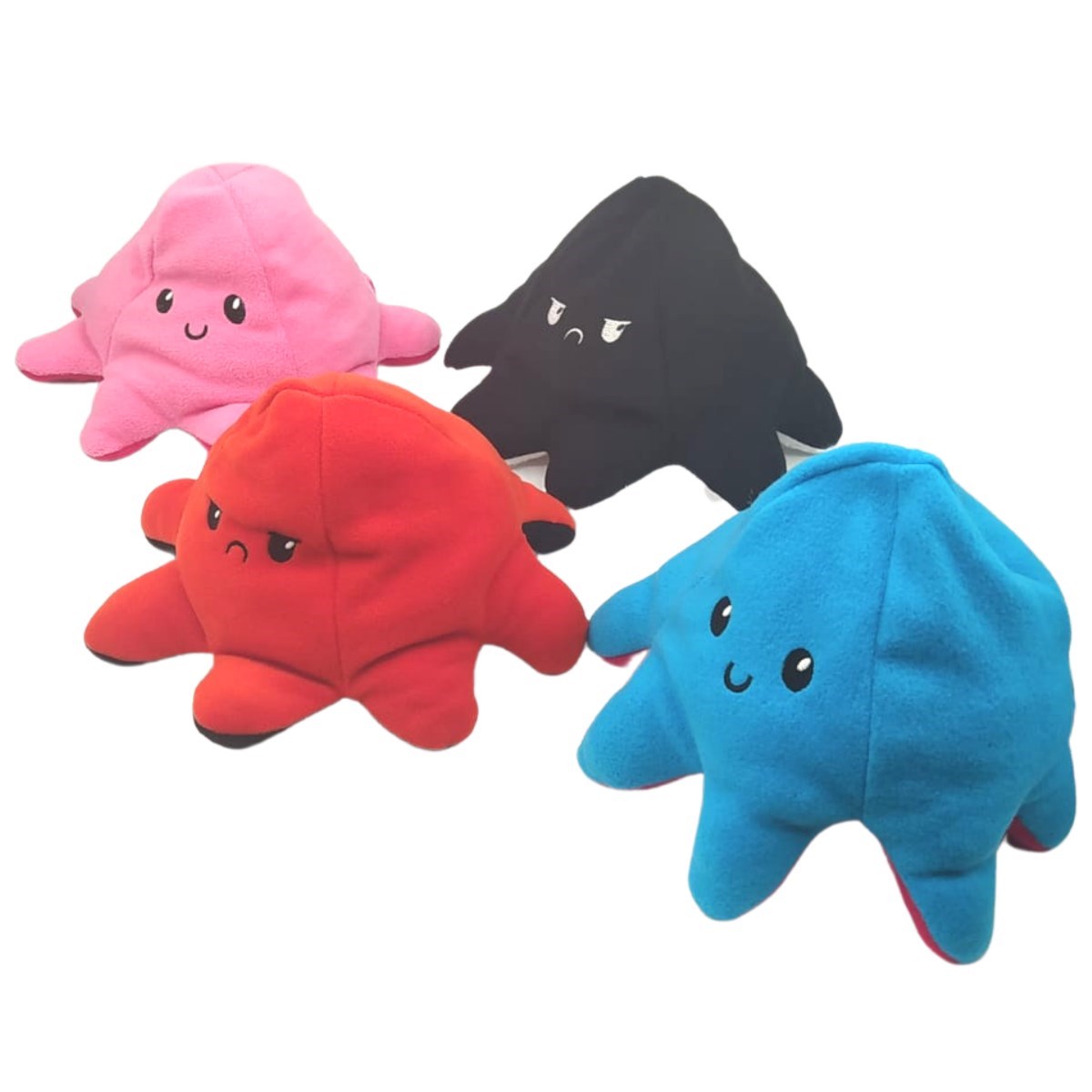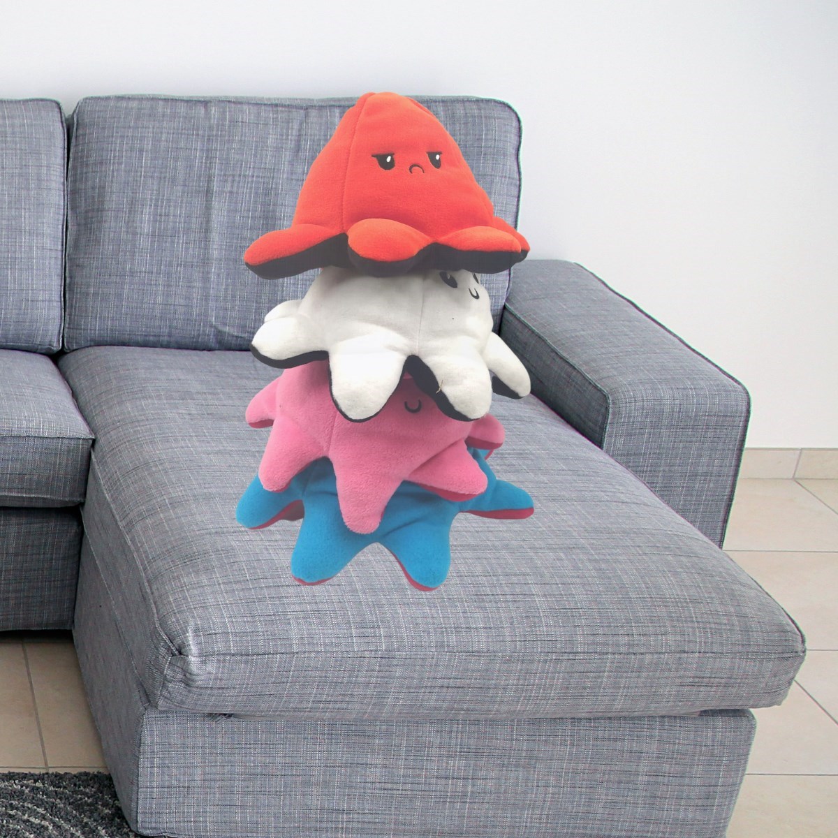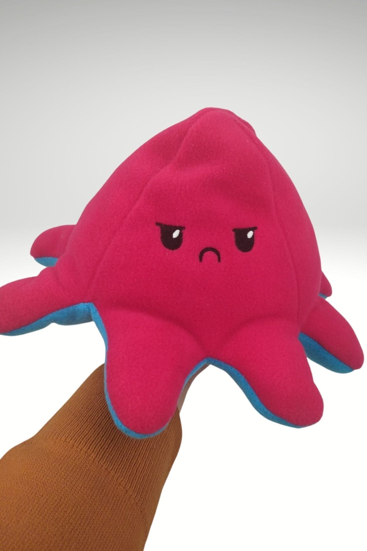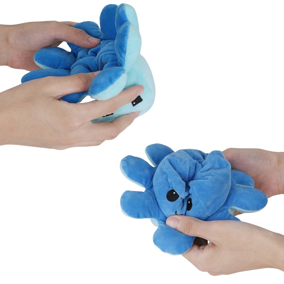 Sevimli peluş ahtapot yastık mutlu ve kızgın olmak üzere çift taraflıdır