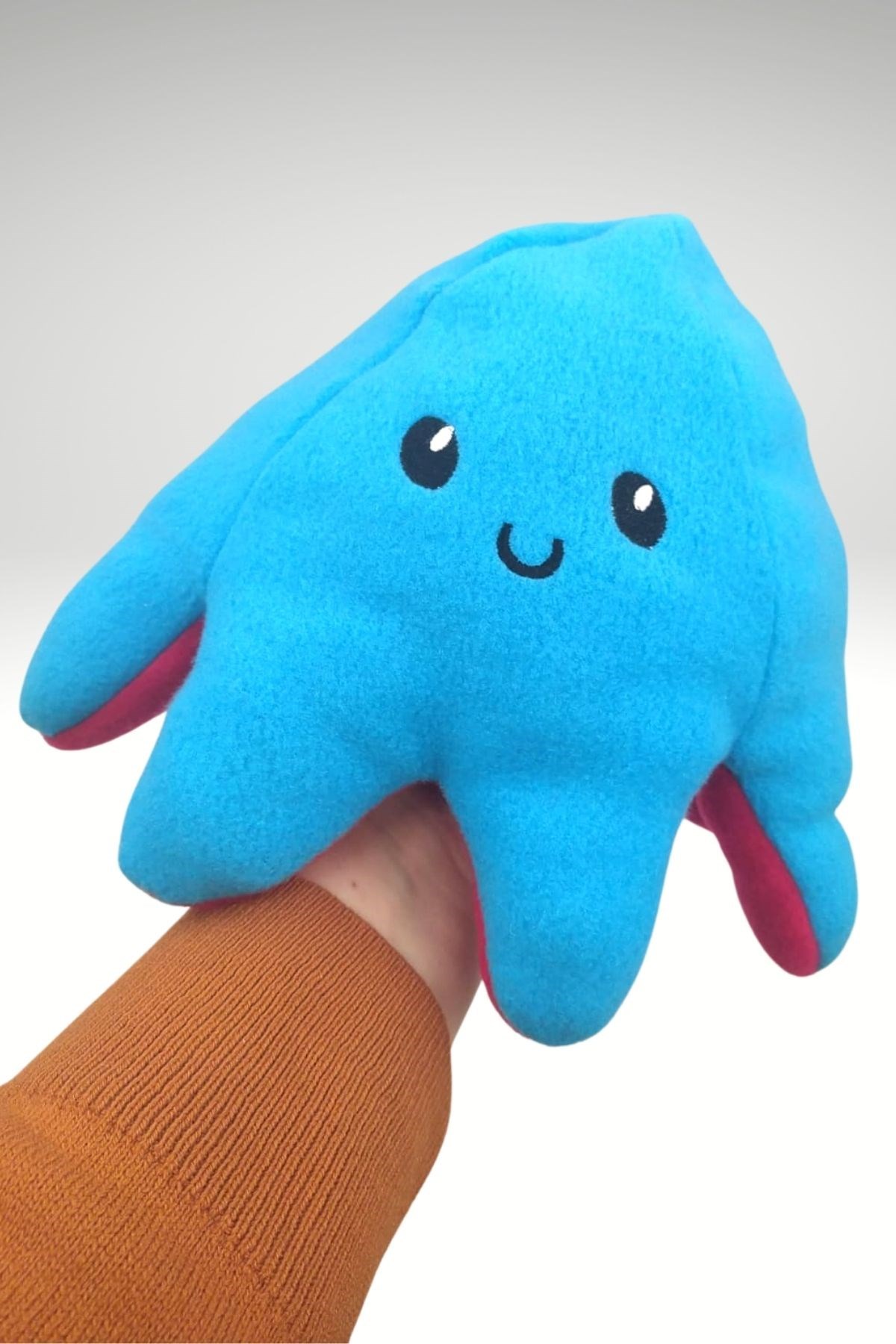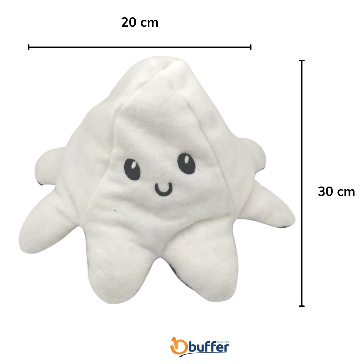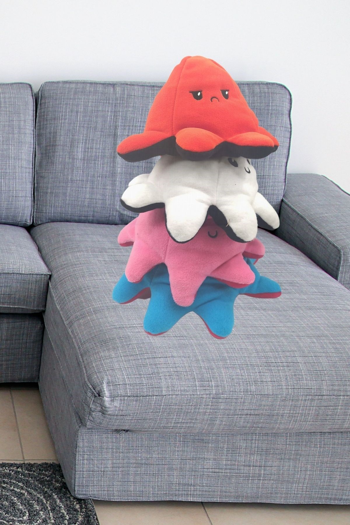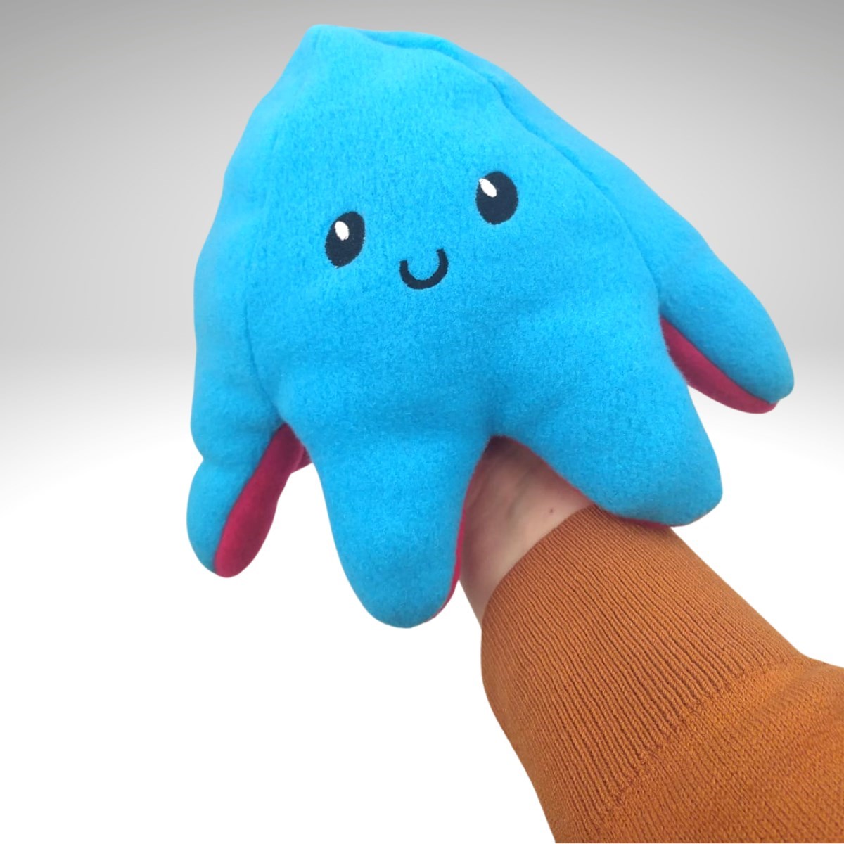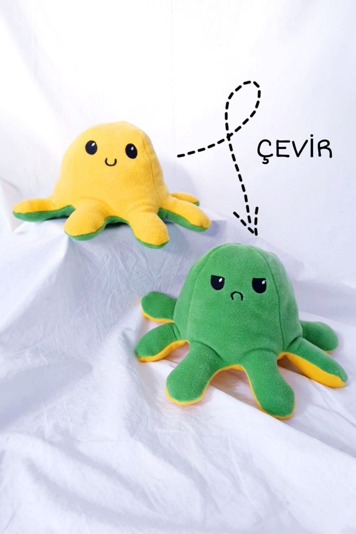 Sevimli peluş ahtapot yastık mutlu ve kızgın olmak üzere çift taraflıdır