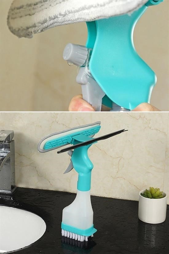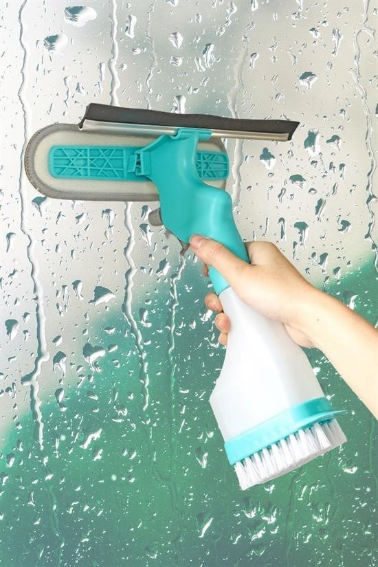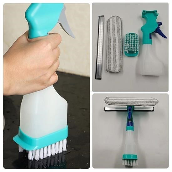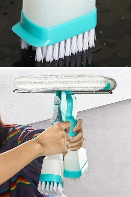 BUFFER® Çift Taraflı Spreyli Cam Sil Çok Fonksiyonlu Pratik Pencere Ayna Fayans Temizleyici Aparatı