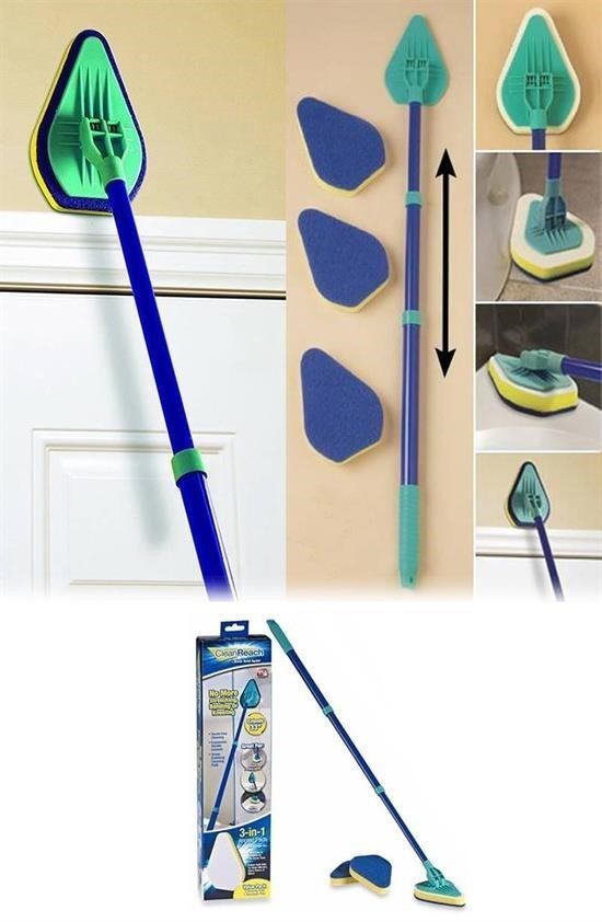Clean Reach Teleskopik Banyo Mutfak Fayans Köşe Kenar Temizleyici Mop