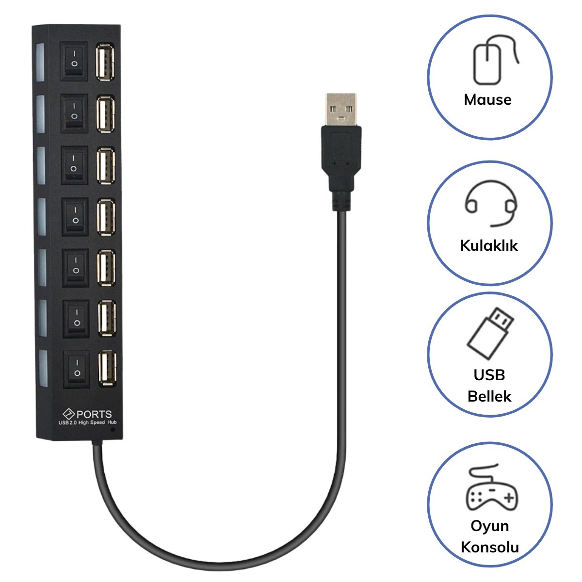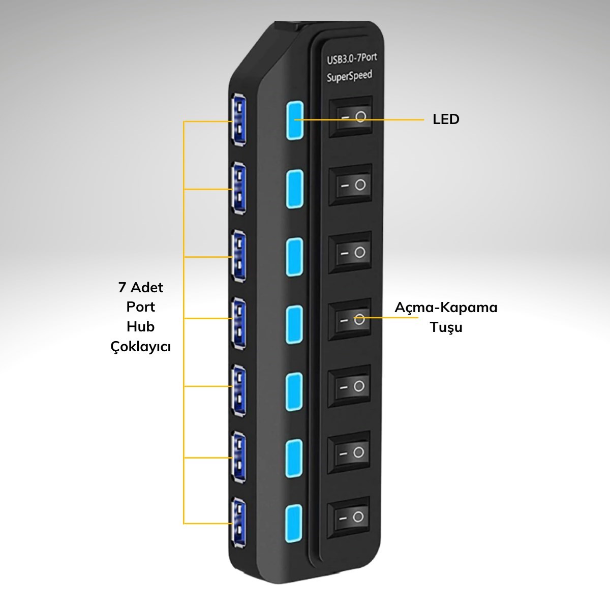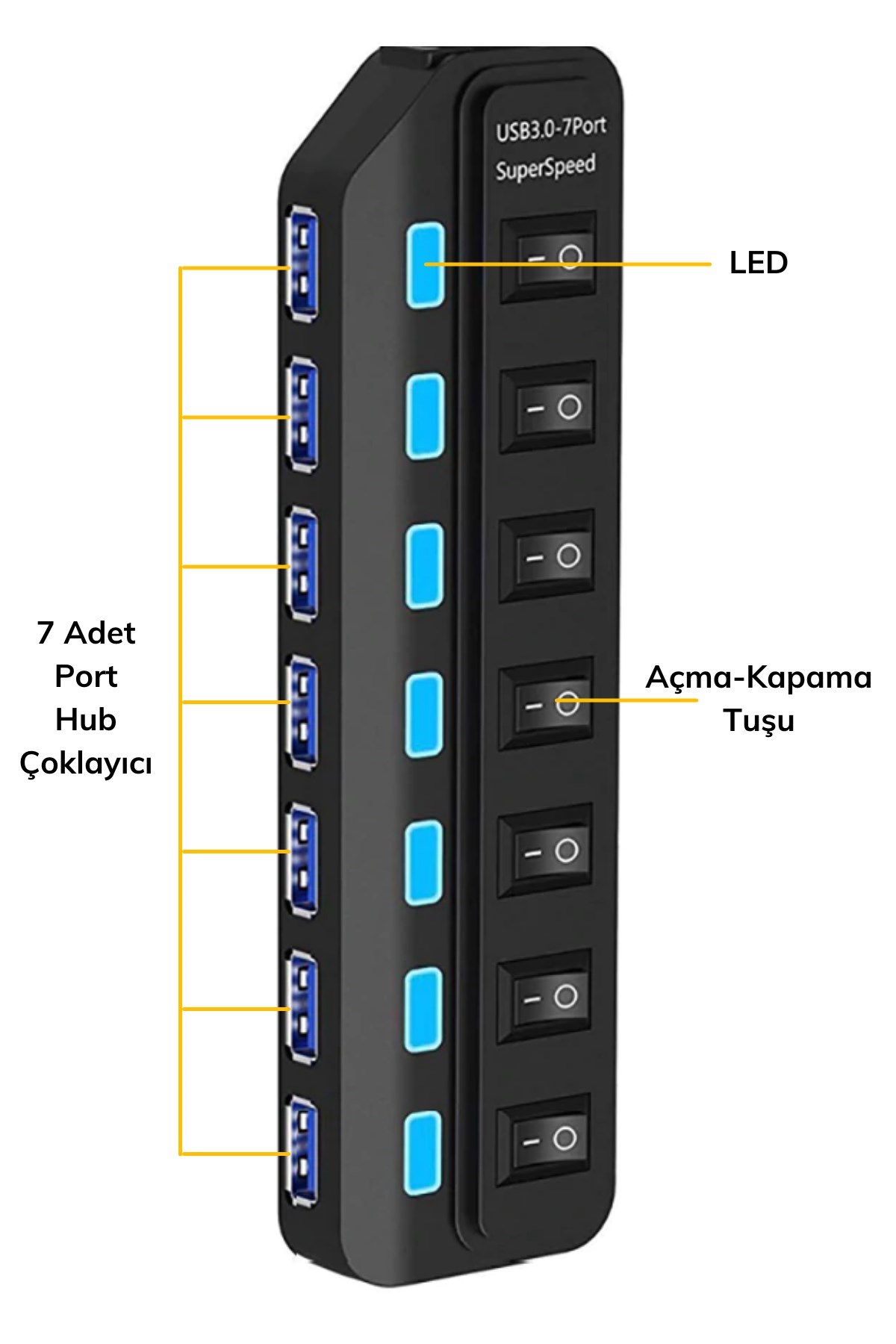 USB çoklayıcı, sınırlı sayıda usb girişine ek olarak oluşturulmuş 7 port girişi olan bir üründür