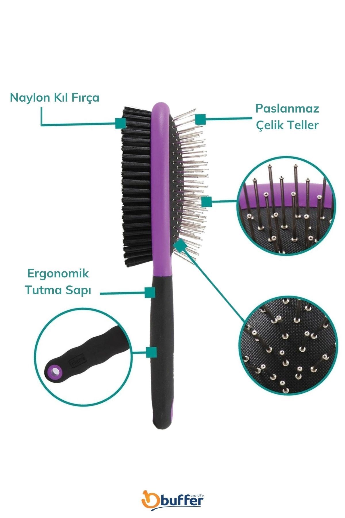 Pet fırçasının kullanabileceğiniz iki tarafı bulunur. İster dişli tarafı ile detaylı br şekilde tarayın, isterseniz de fırça tarafı ile yalnızca üstünden geçin. Bakımına tamamen siz karar verin.