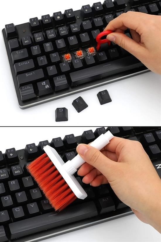 Yanındaki aparat ile bilgisayarınızdaki tuşları rahatça çıkarabilir, temizleyebilir ve tekrar kolaylıkla yerine takabilirsiniz