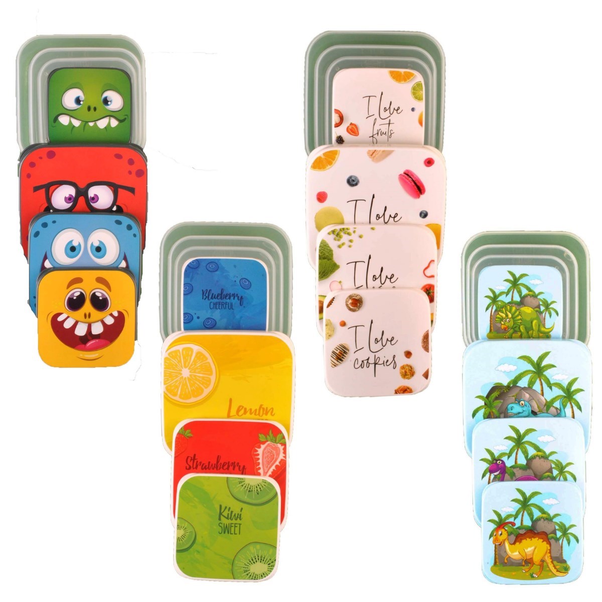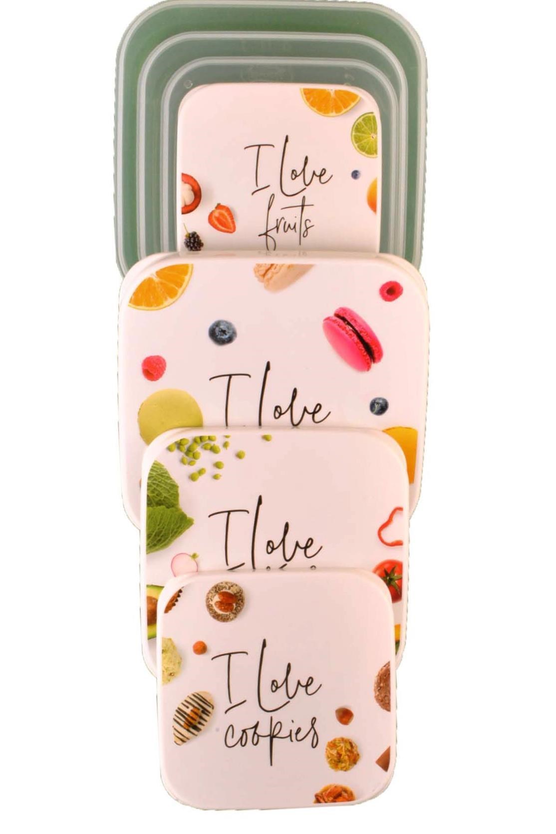 Son derece sempatik tasarımlı kapaklara sahip iç içe saklanabilen 4 farklı boyda saklama kaplarını çok seveceksiniz