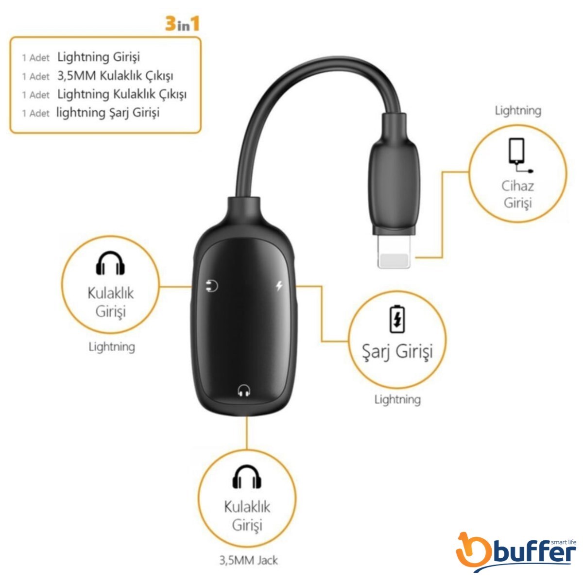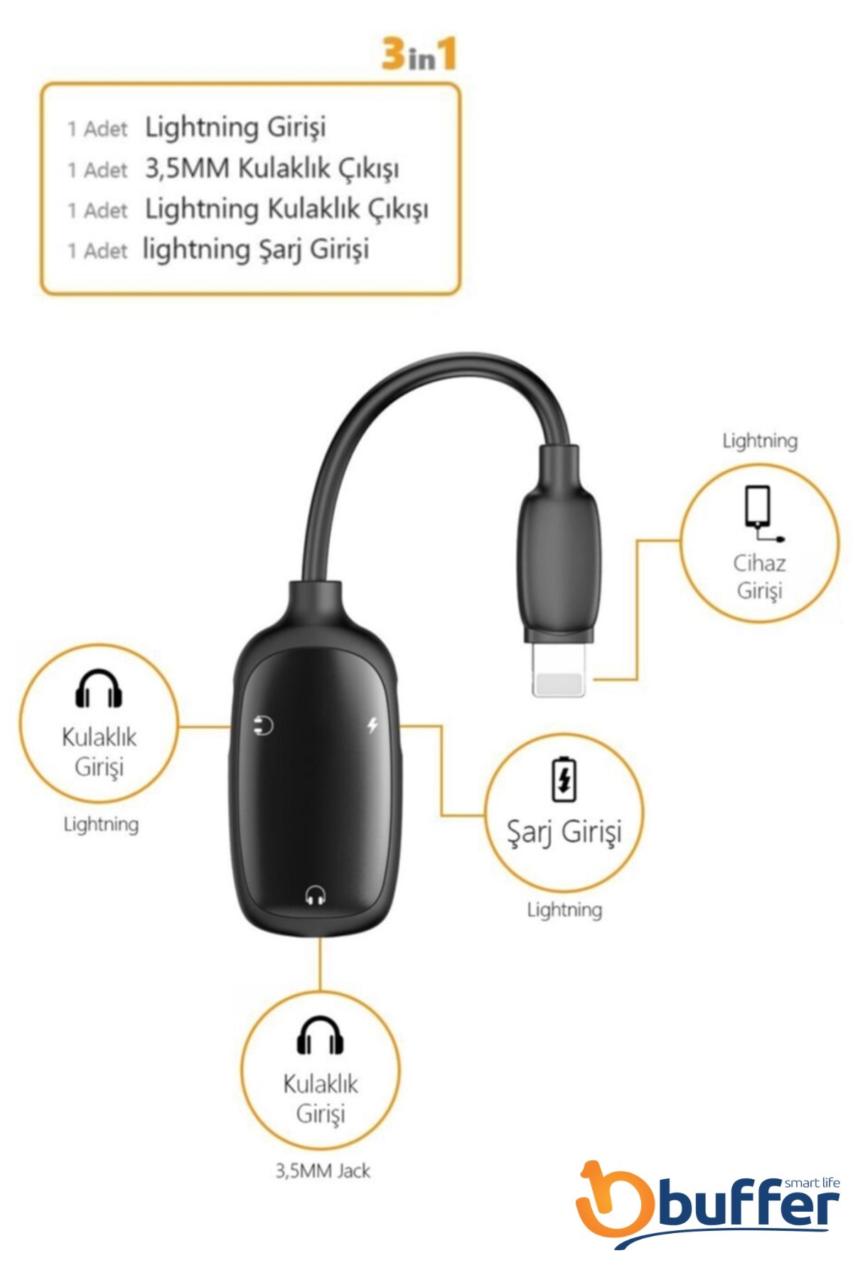 Buffer Çoklayıcı Adaptör ile Iphone marka telefonunuzu şarj ederken müzik dinleyebilirsiniz