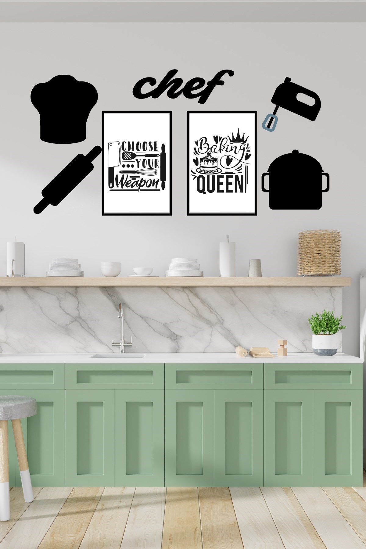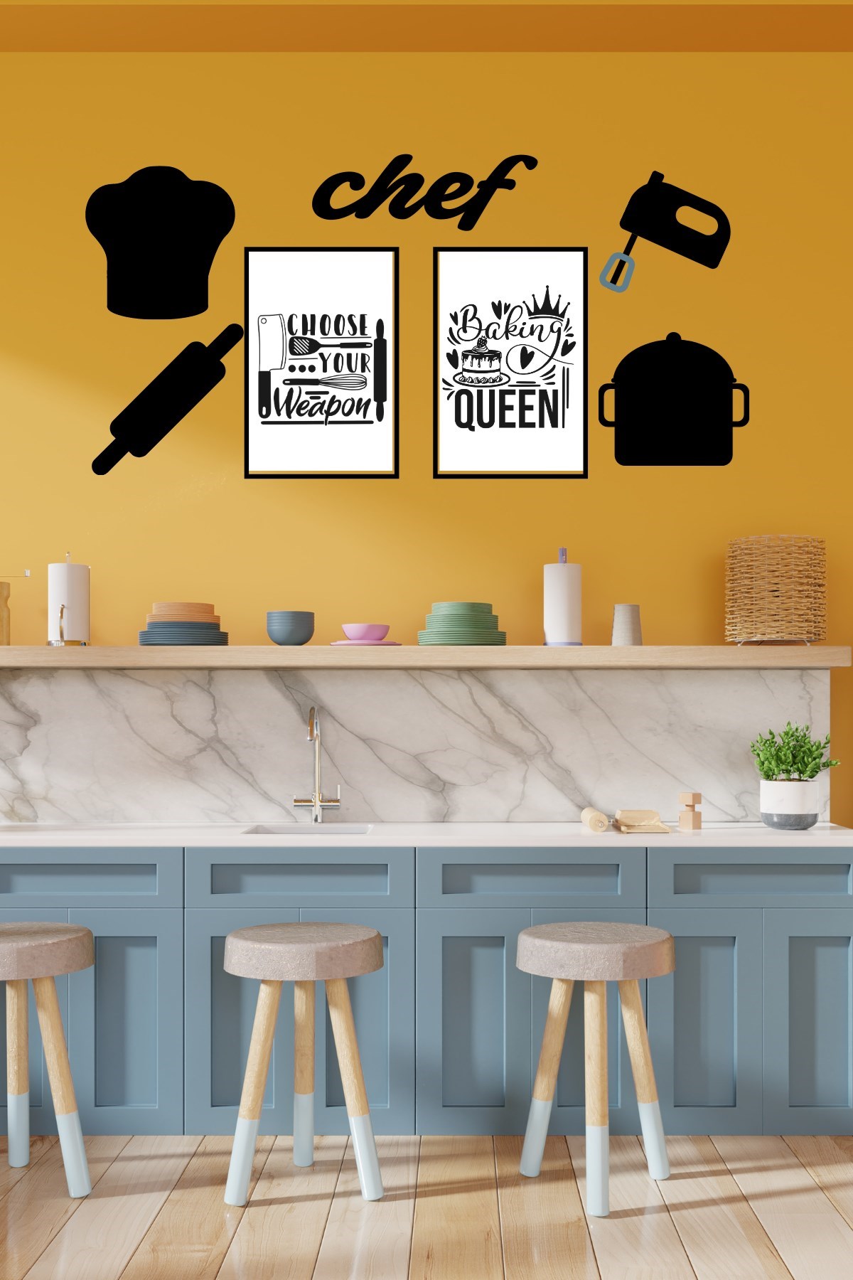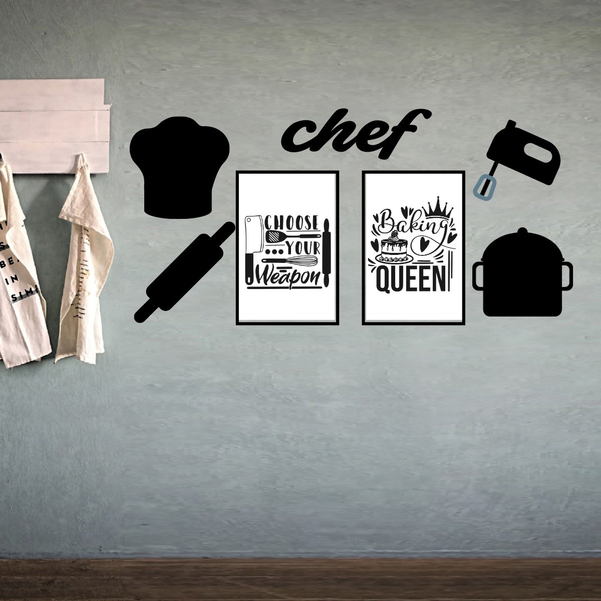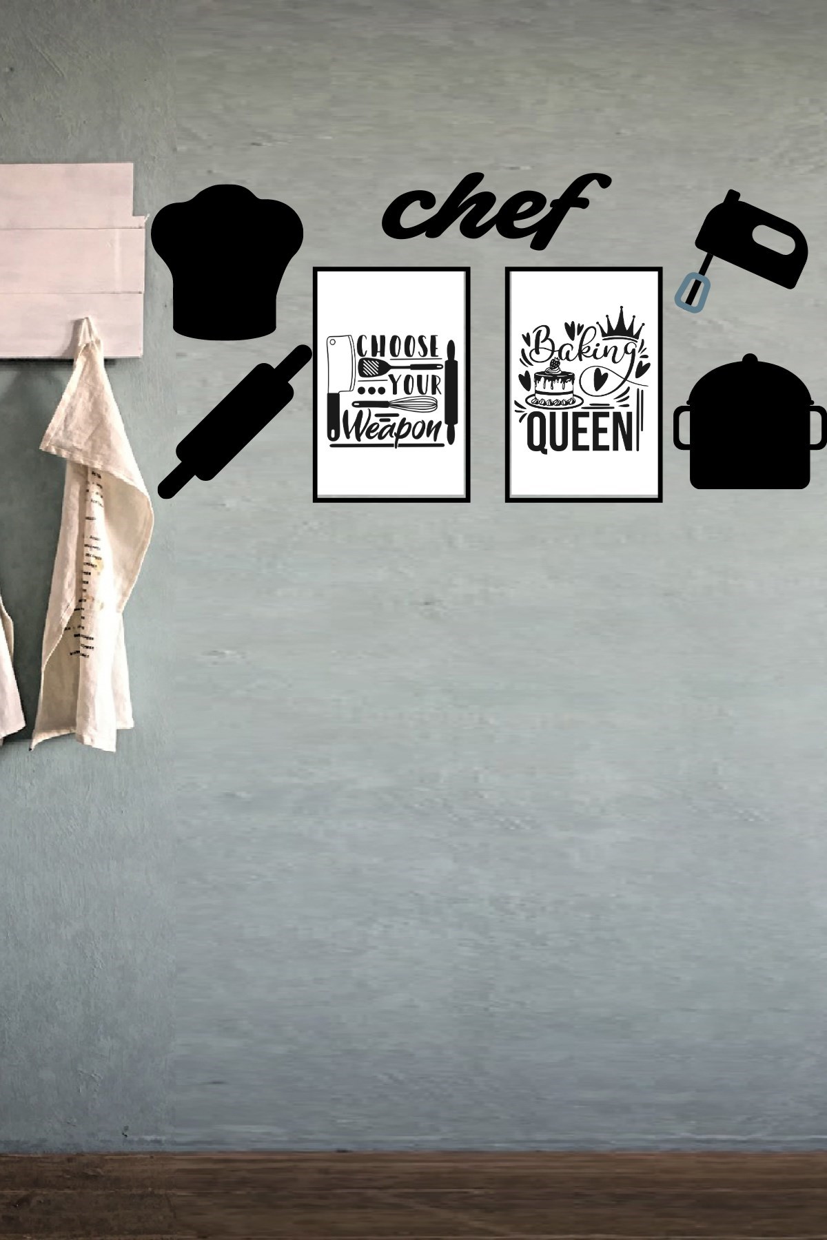 Chef Dekoratif Duvar Süsü Tablo Aksesuar Ahşap Tasarım Hediye Pano Sticker Seti