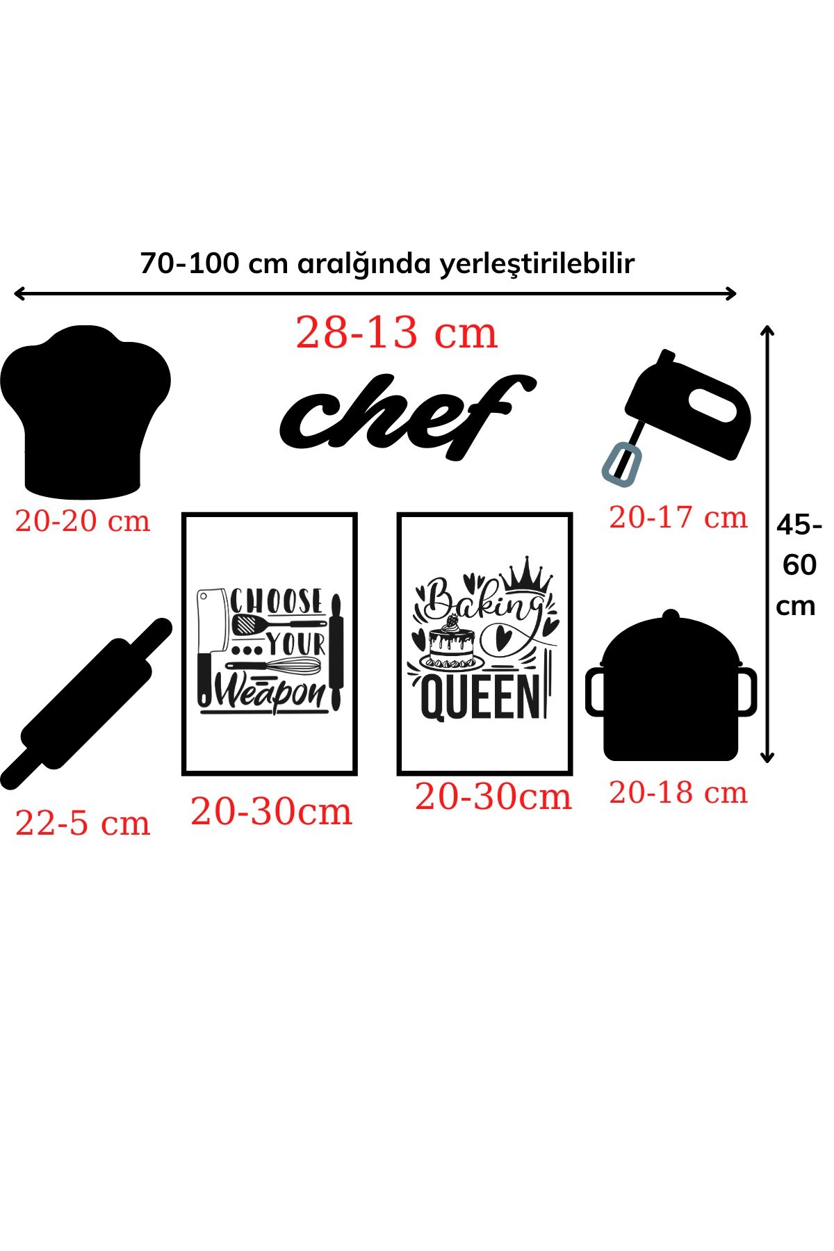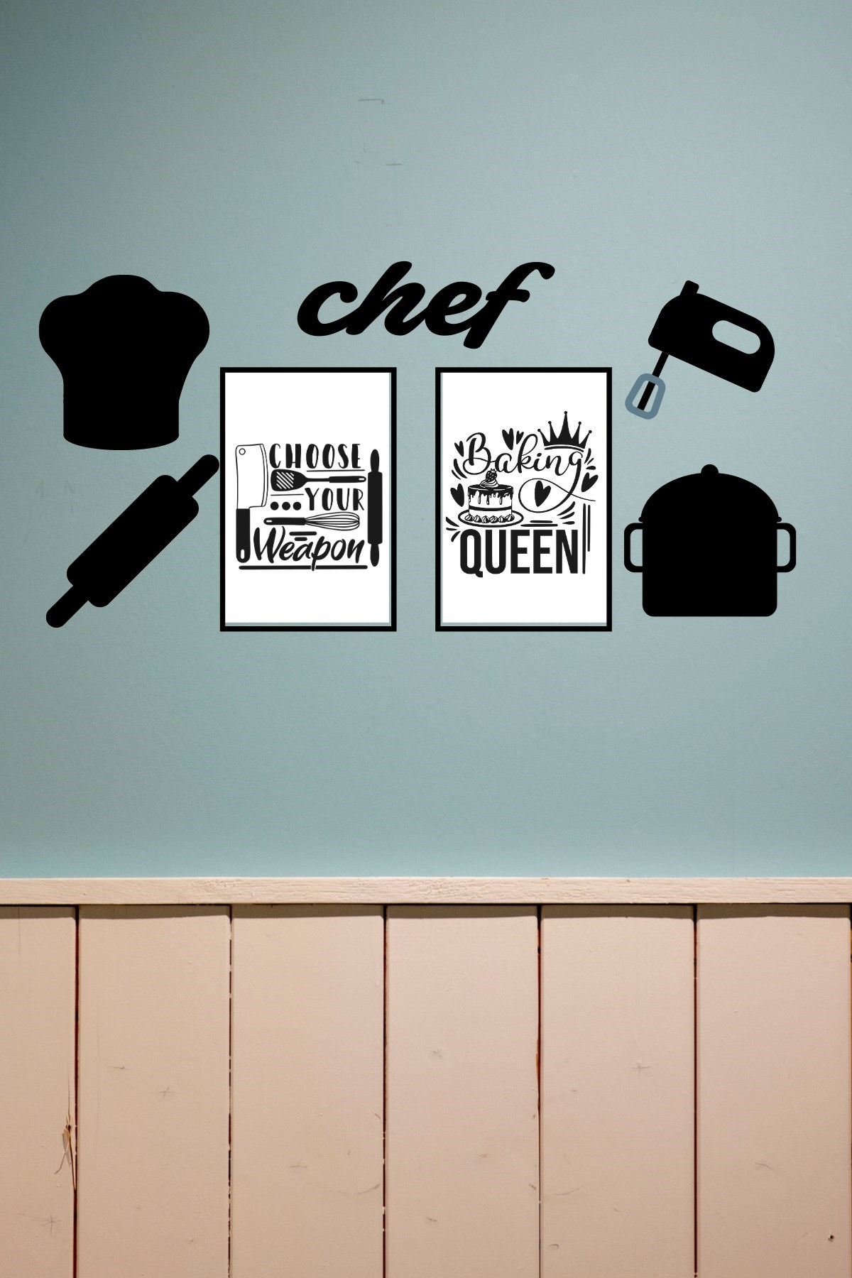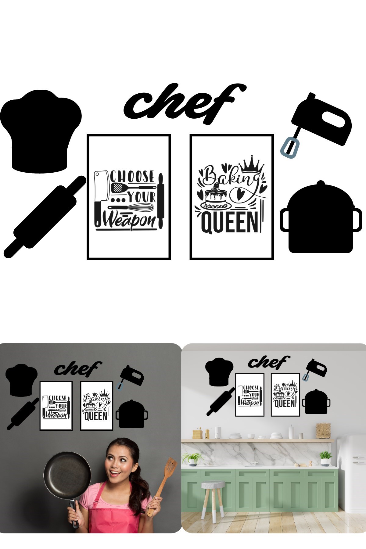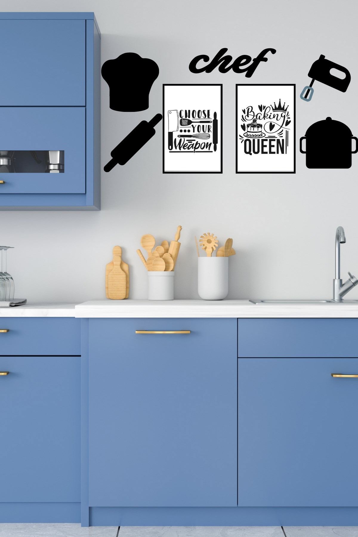 Chef Dekoratif Duvar Süsü Tablo Aksesuar Ahşap Tasarım Hediye Pano Sticker Seti