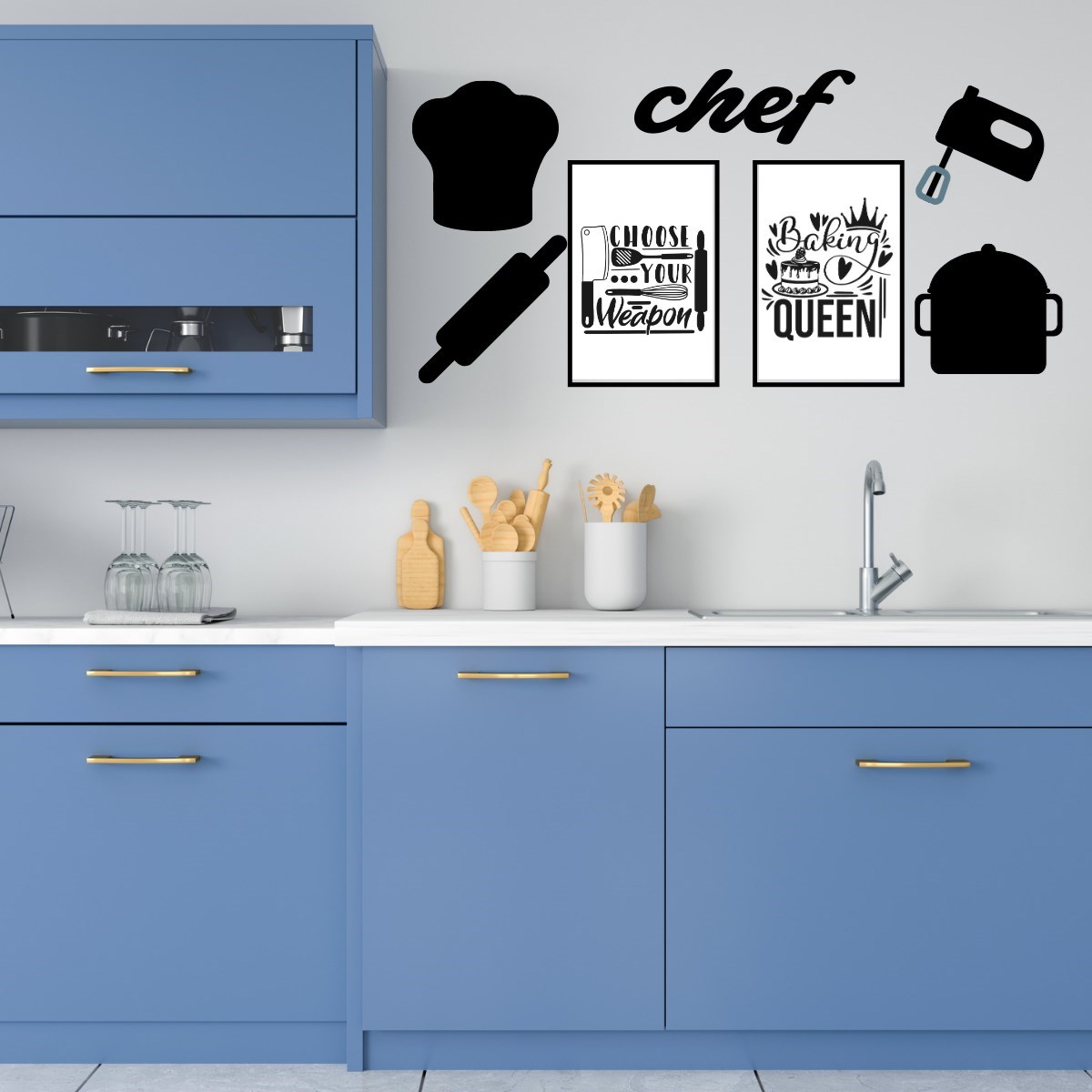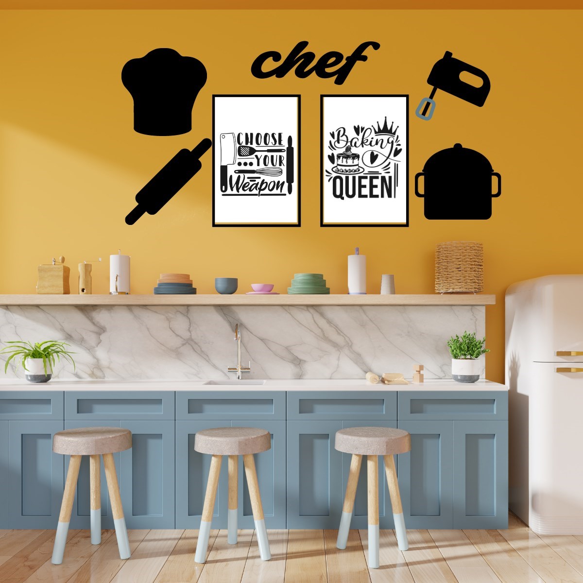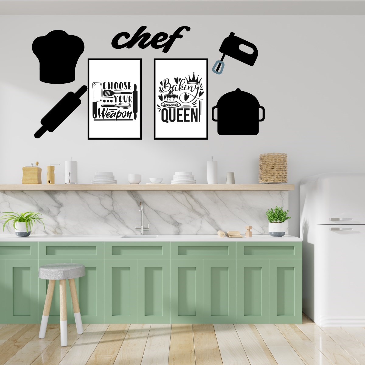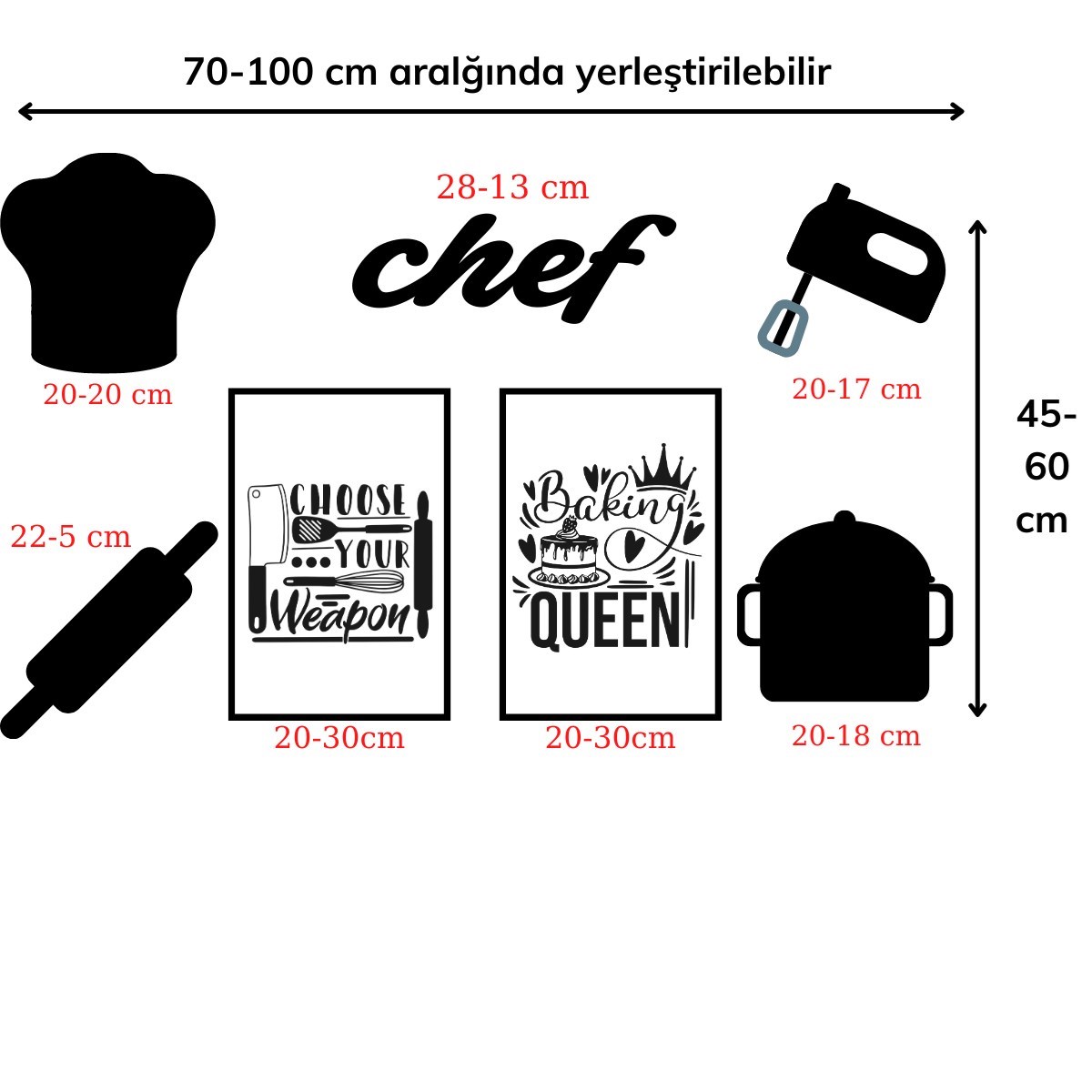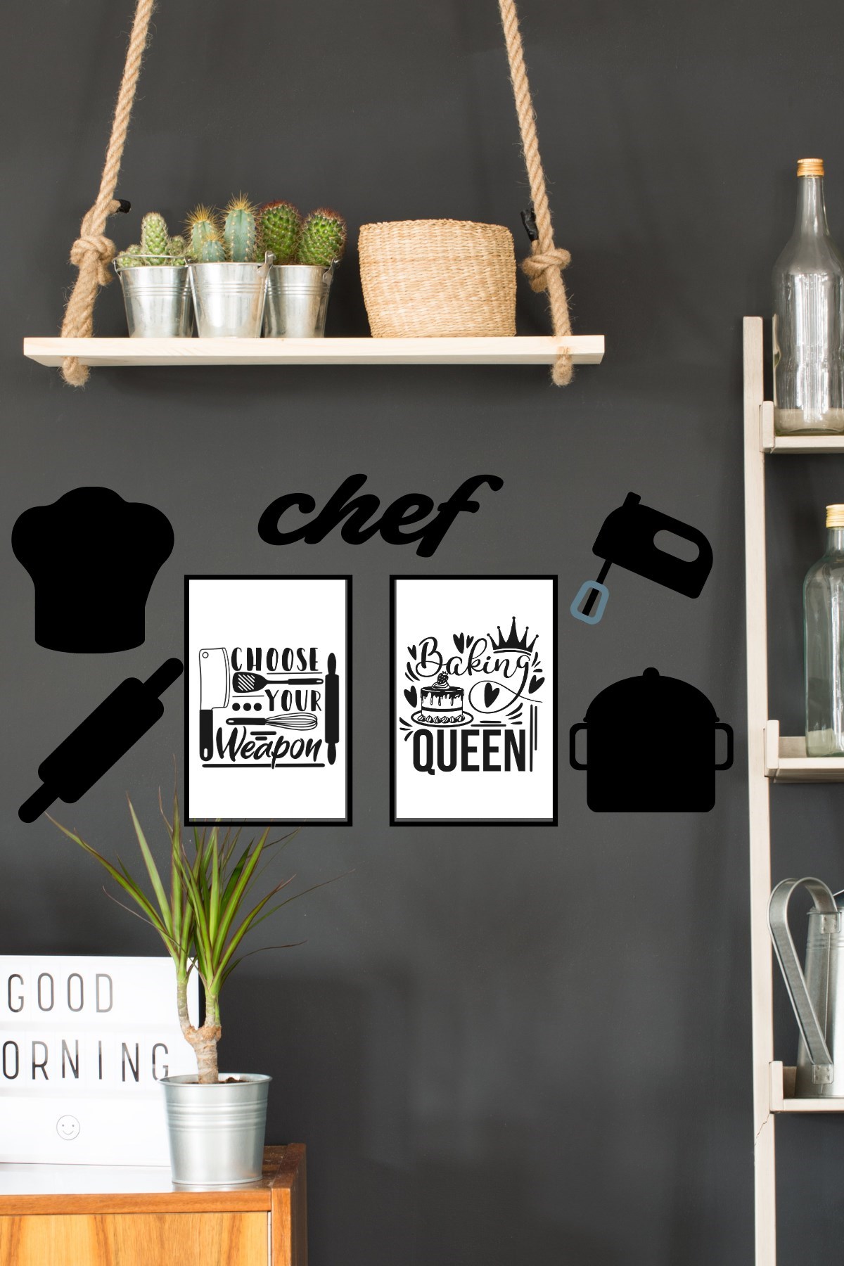 Chef Dekoratif Duvar Süsü Tablo Aksesuar Ahşap Tasarım Hediye Pano Sticker Seti