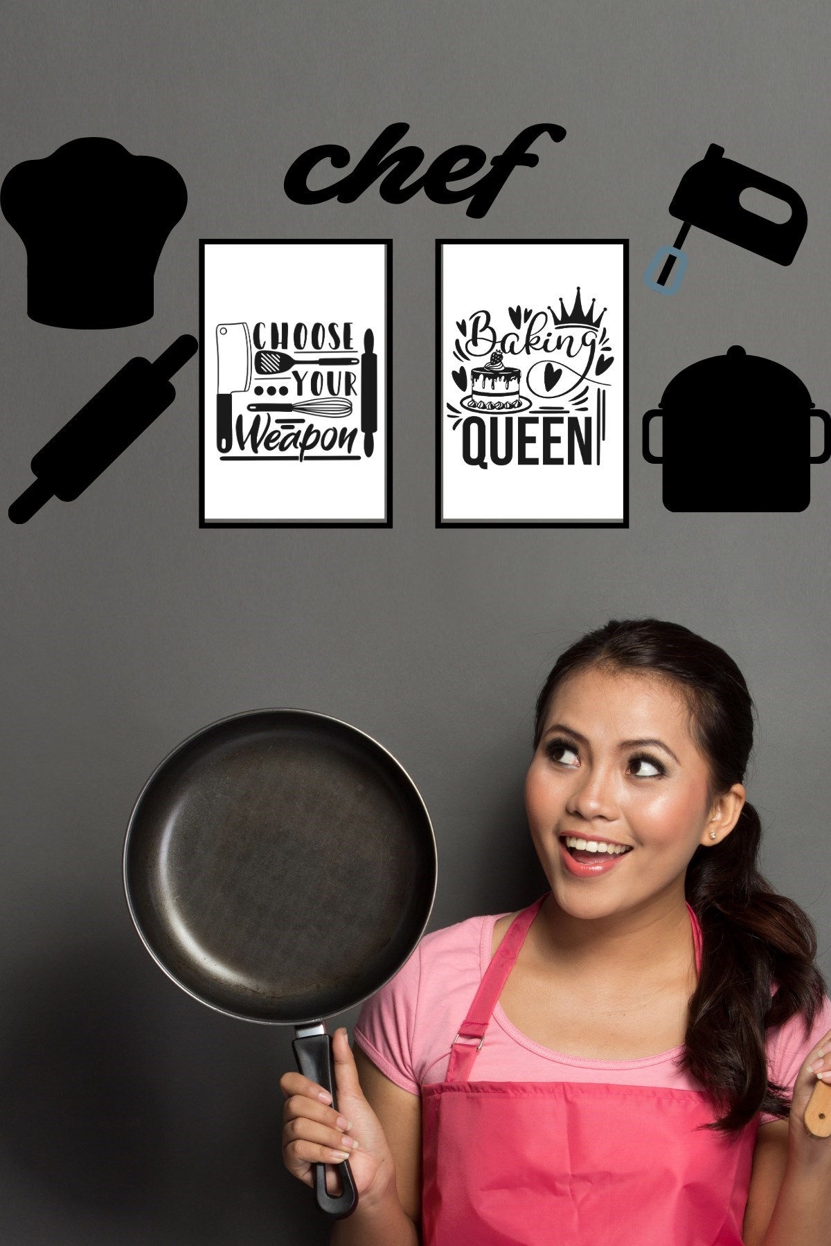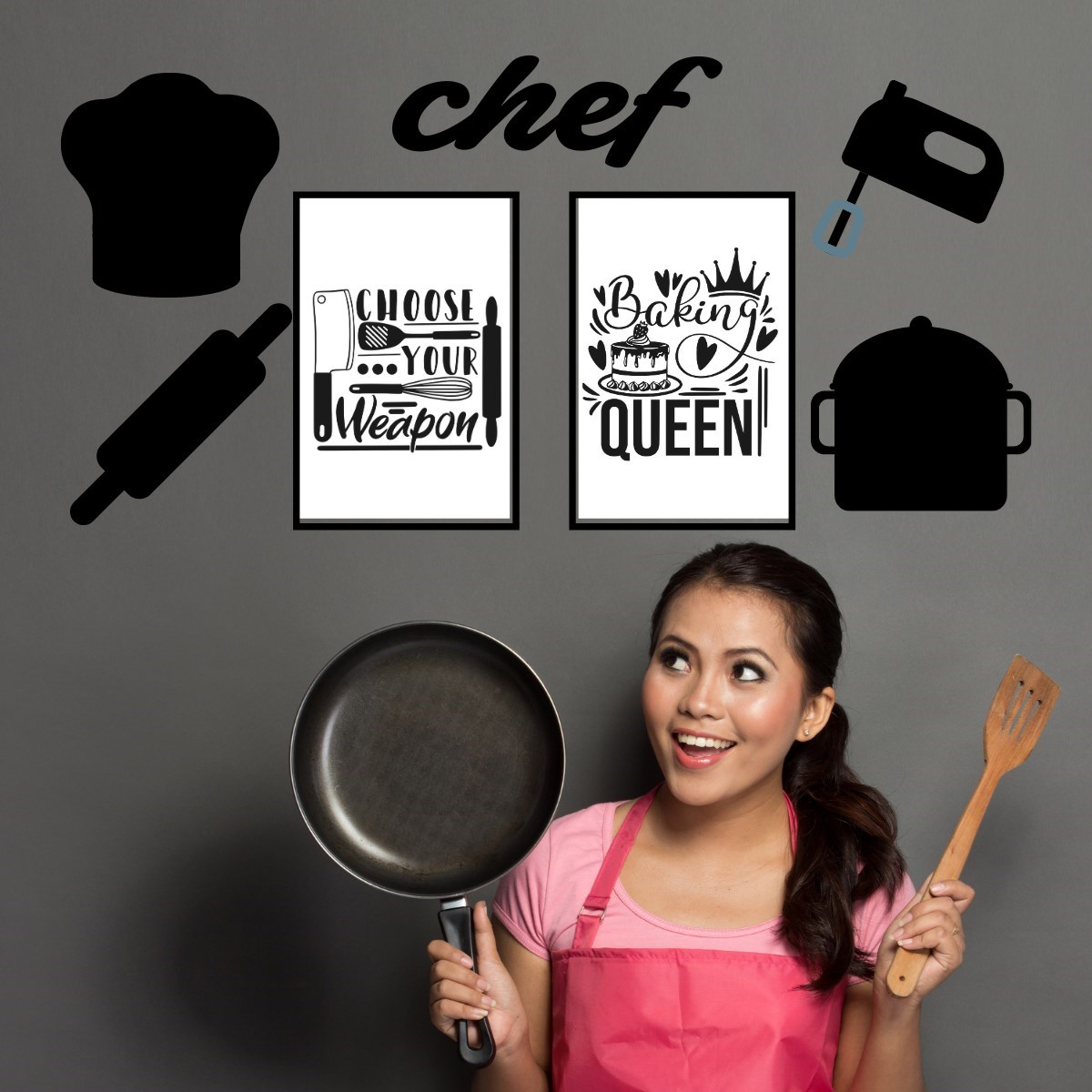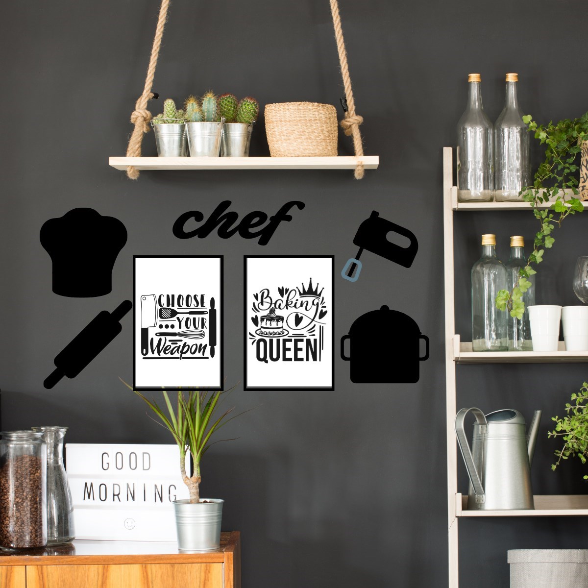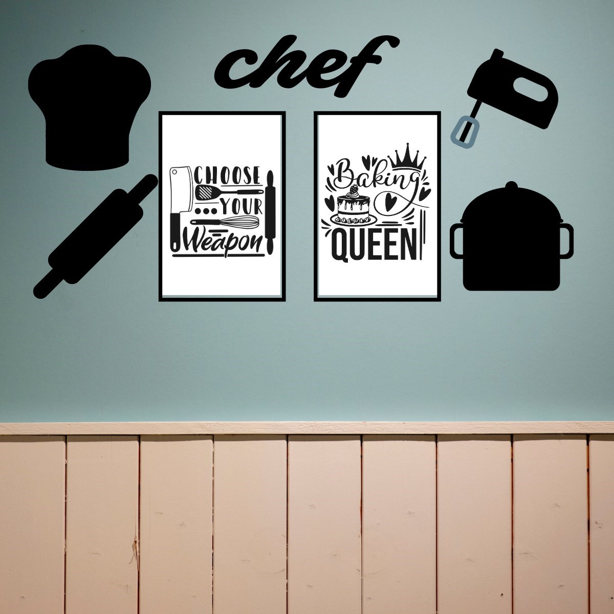 Chef Dekoratif Duvar Süsü Tablo Aksesuar Ahşap Tasarım Hediye Pano Sticker Seti