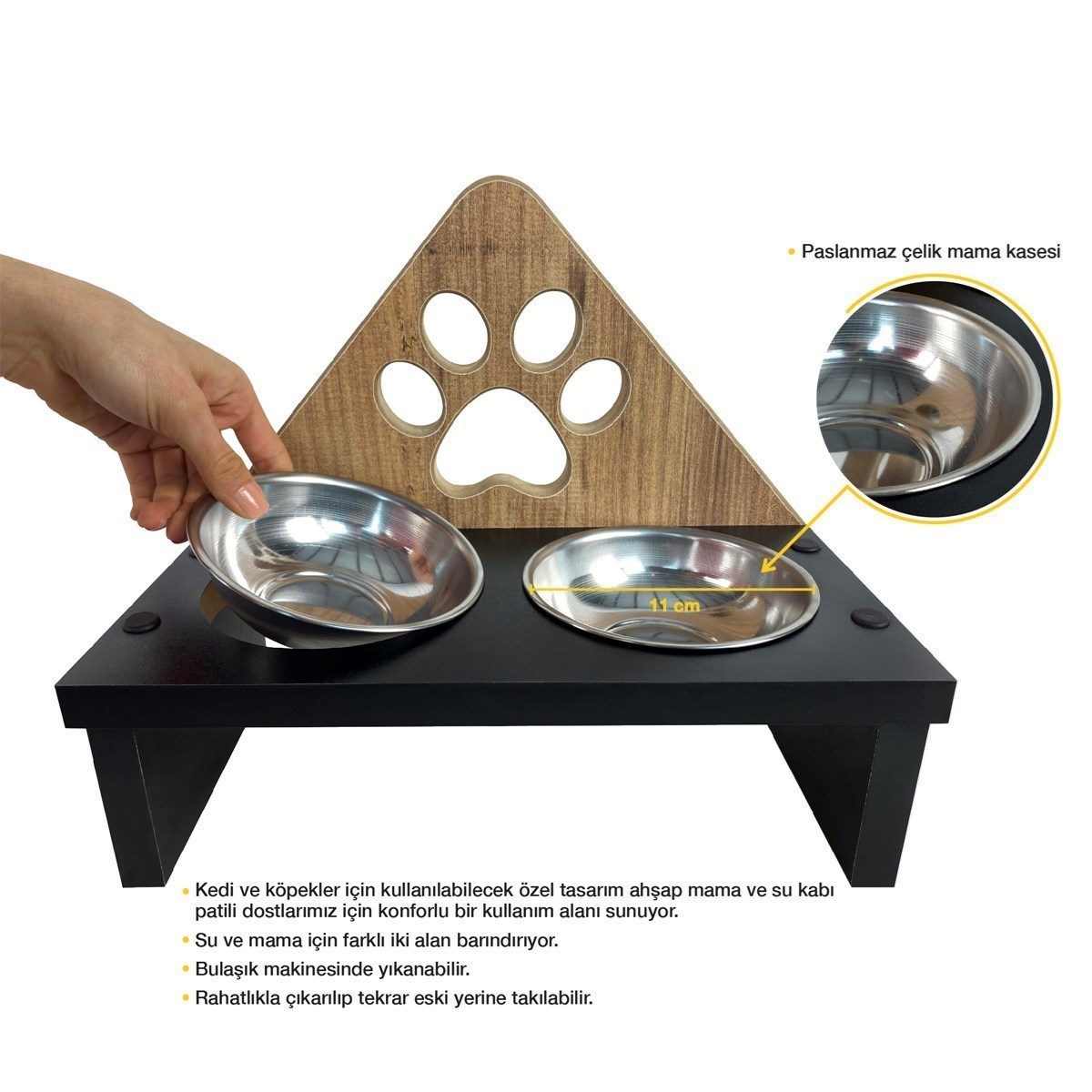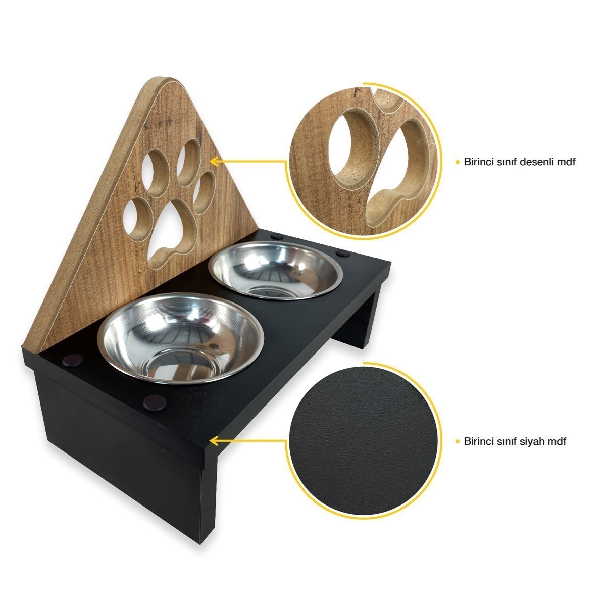 Evcil hayvan mama kutuları, paslanmaz çelik kaplar ve Mdf lam malzemeden üretiliyor
