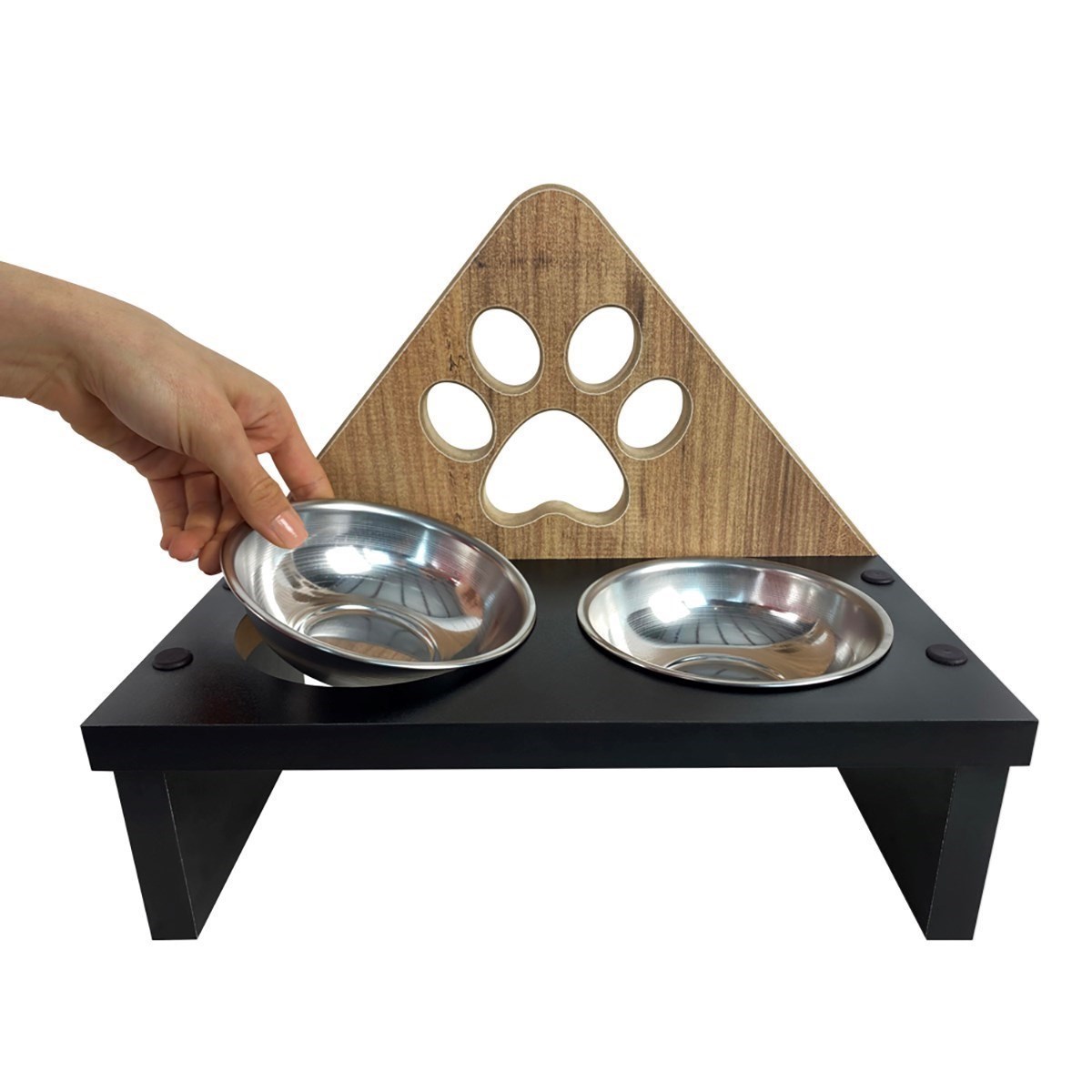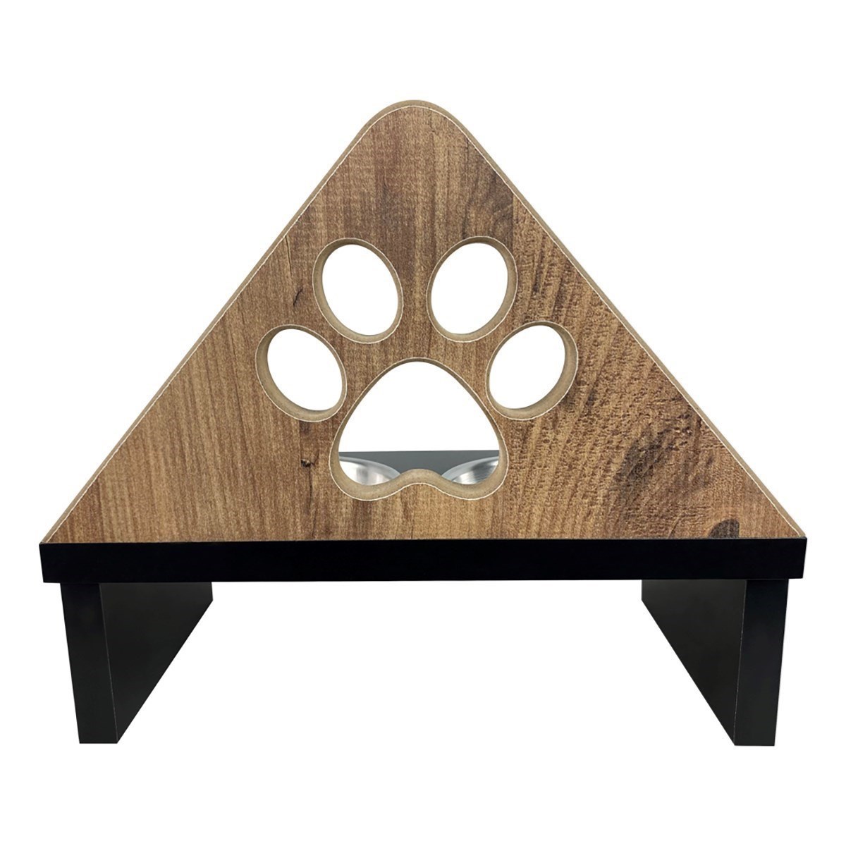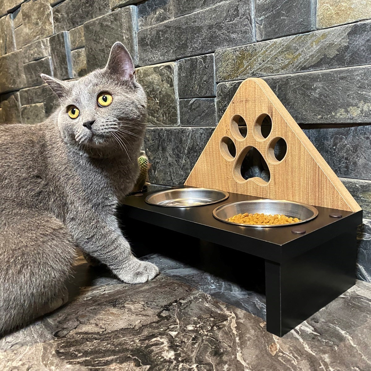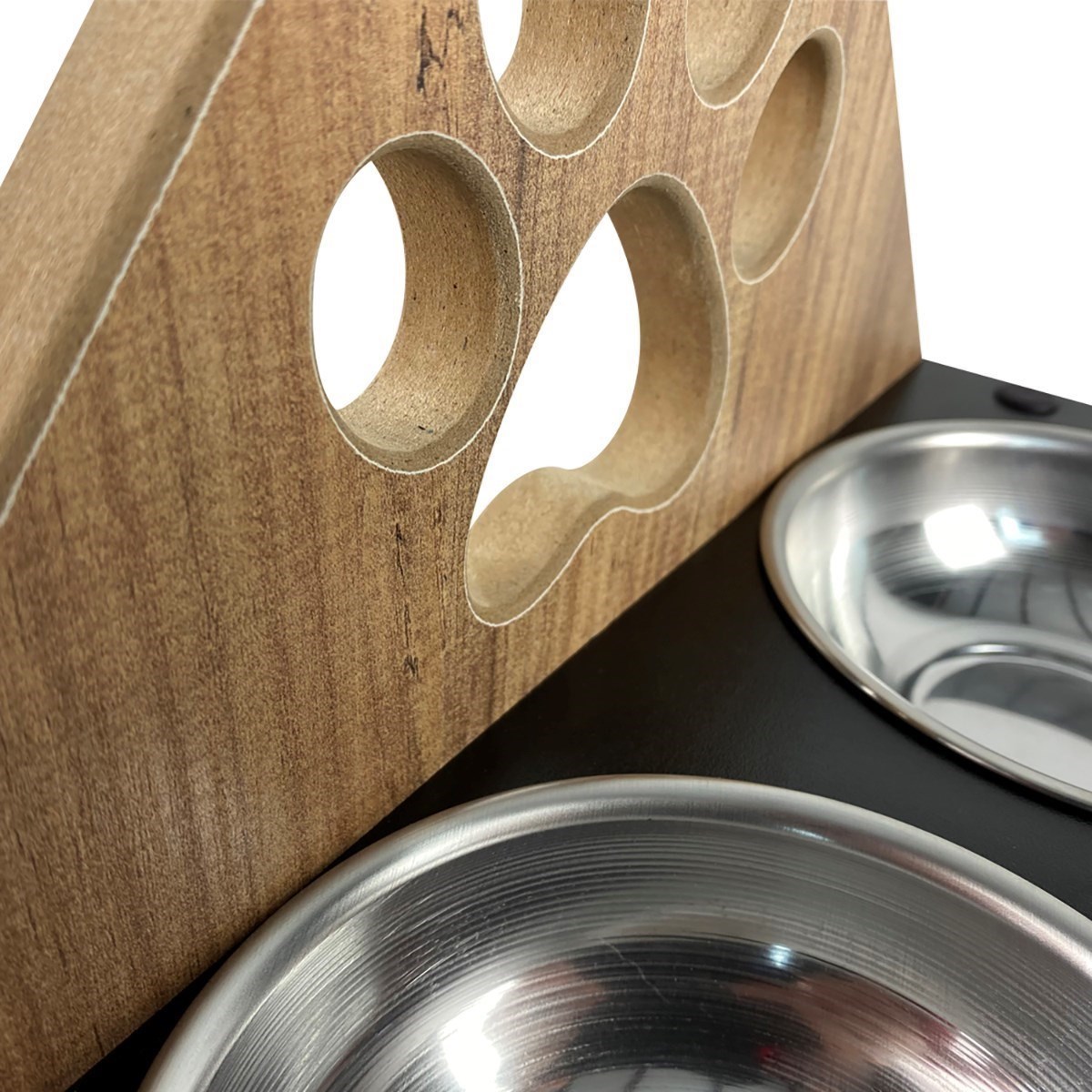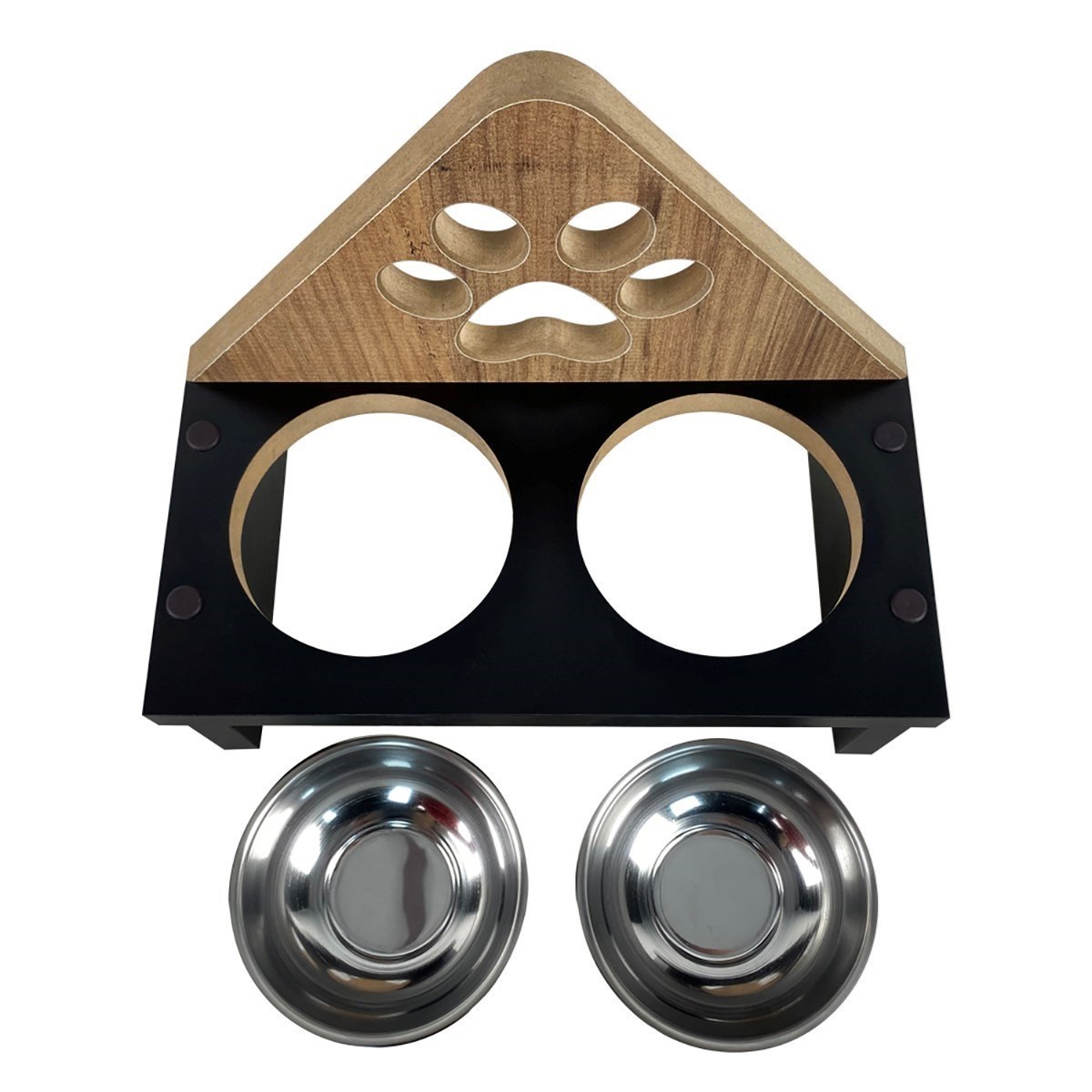 Ahşap evcil hayvan yemek masası, Su ve kedi köpek maması için farklı iki alan barındırmaktadır