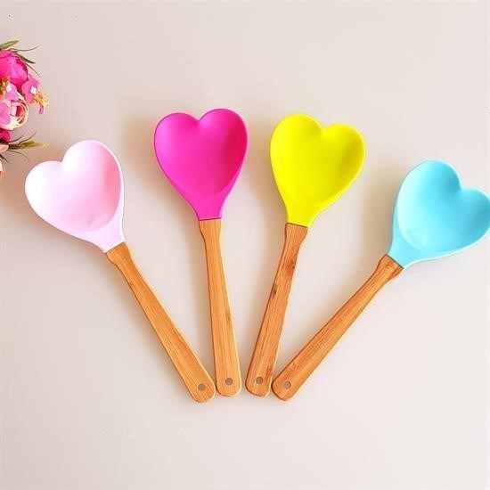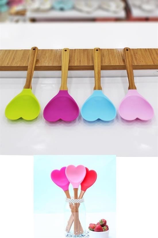 Mutfakta vazgeçilmeziniz olacak şıklıkta olan Ahşap saplı slikon spatula ile yemek yapmak daha eğlenceli Kalp şeklinde spatula kaşık ile yemek yapmaktan daha fazla keyif alacaksınız!