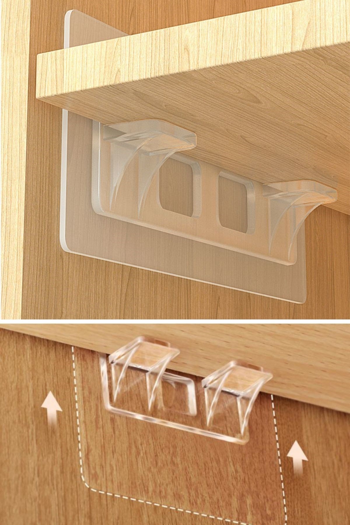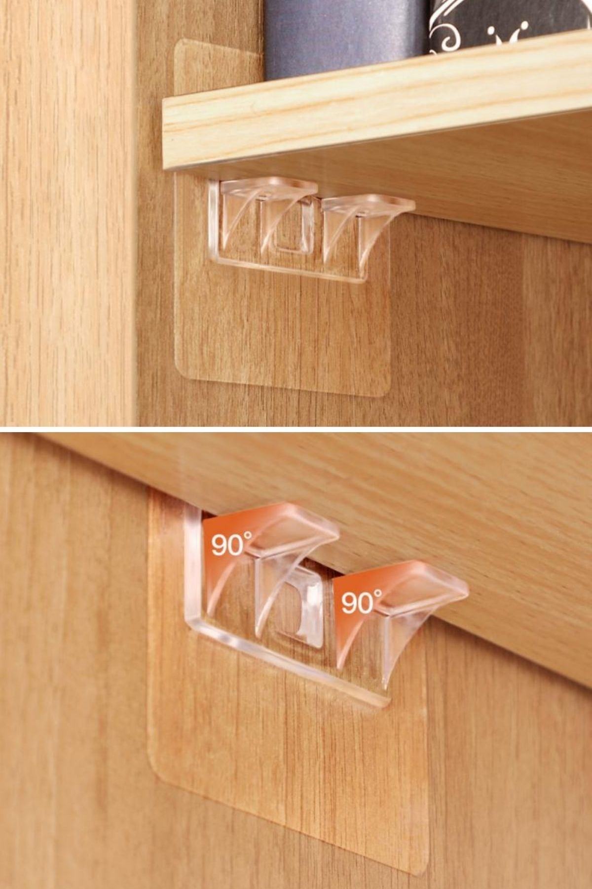 Paket İçeriği: 4 Adet BUFFER® Dolap İçi Raflar İçin Plastik Güçlü Yapışkanlı Raf Destek Aparatı
