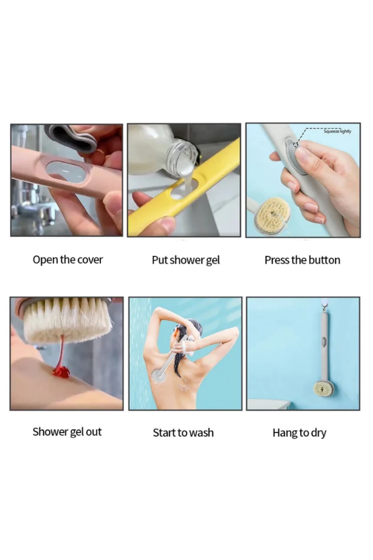 Pratik Duş Jeli Haznesi: Bu özel ürün, duş jeli haznesine sahip olmasıyla fark yaratır. Entegre edilmiş duş jeli haznesi, duş sırasında elinize sıkıp uğraşmak yerine doğrudan fırça üzerinden duş jelinizi almanıza imkan tanır. Bu sayede banyo süreciniz daha pratik ve kolay hale gelir.