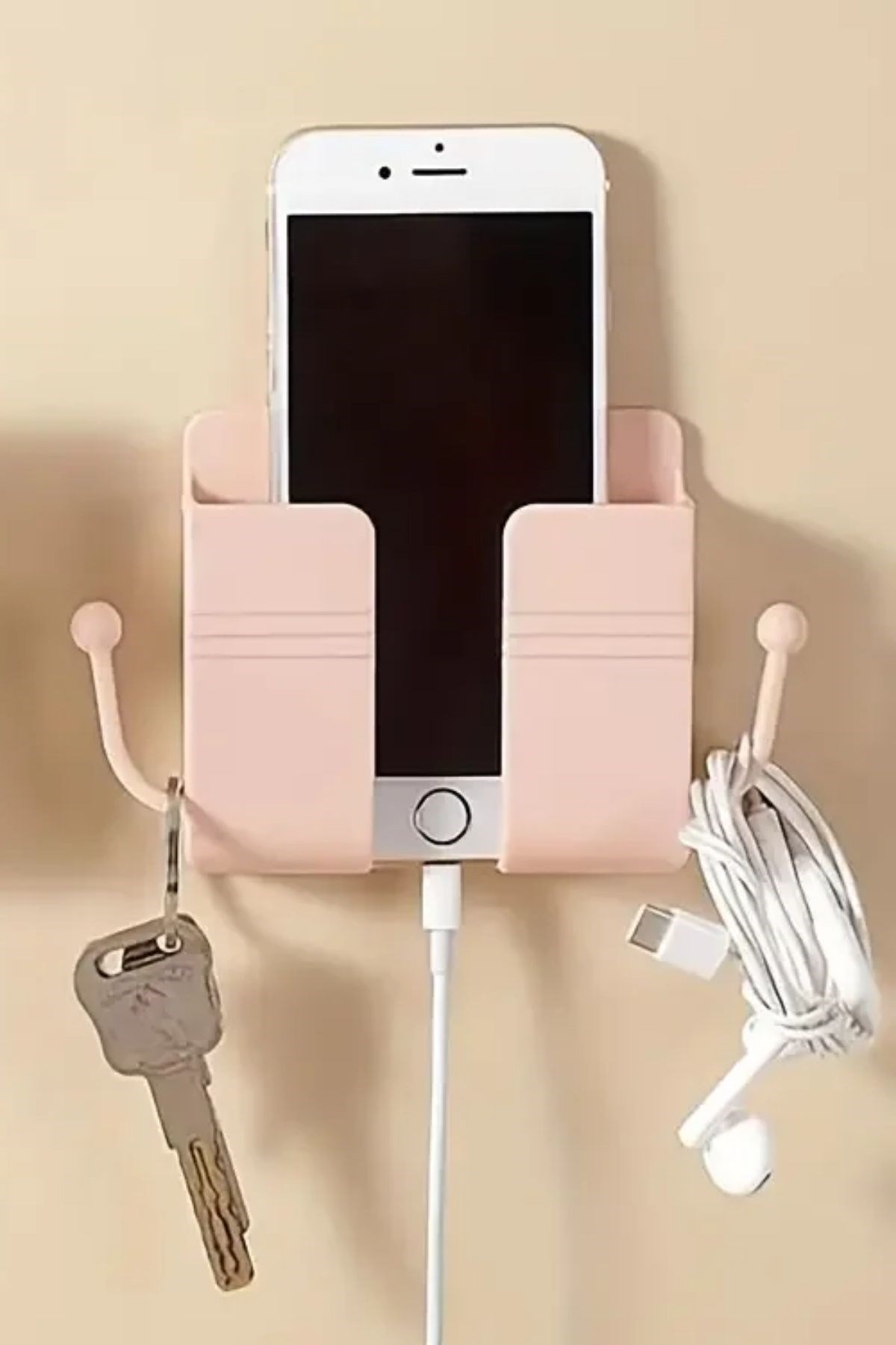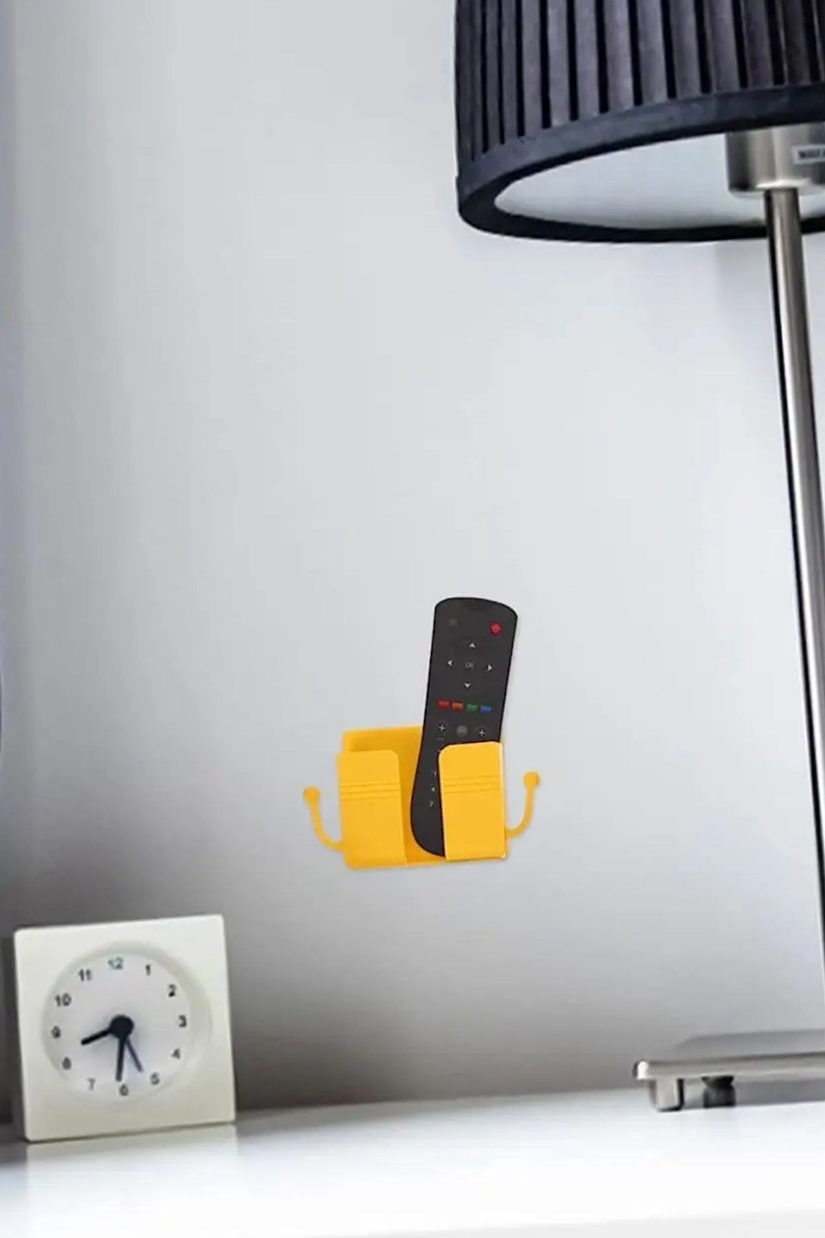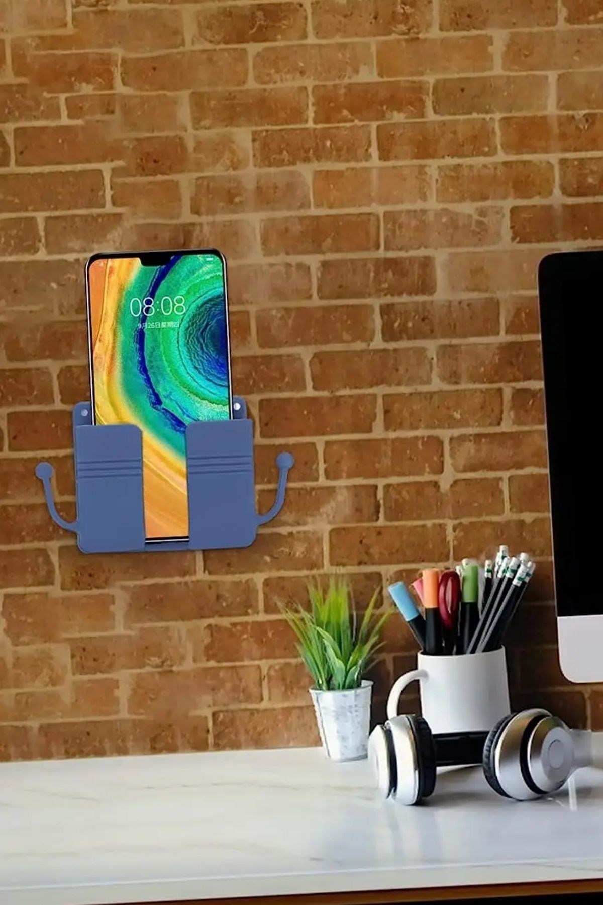 BUFFER® Duvar Tipi Yapışkanlı Kablo Tutuculu Telefon,Kumanda Tutucu Plastik Aparat