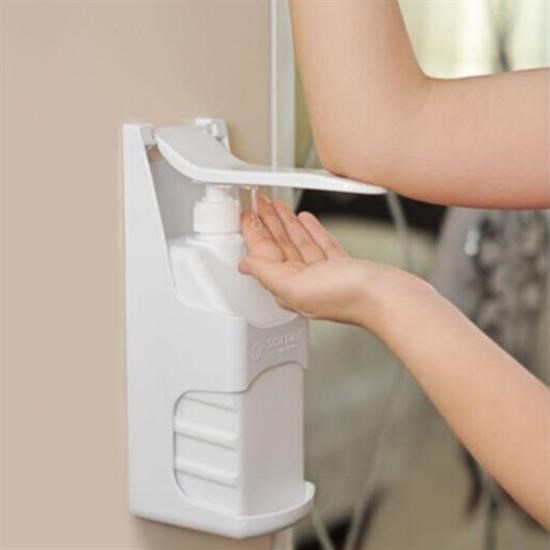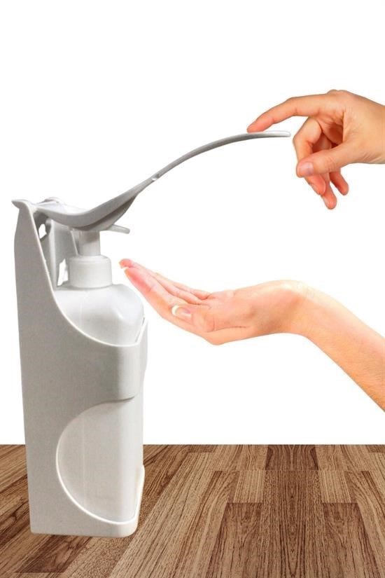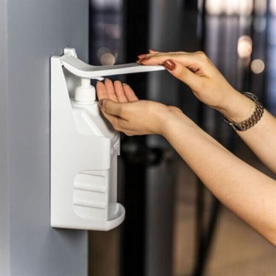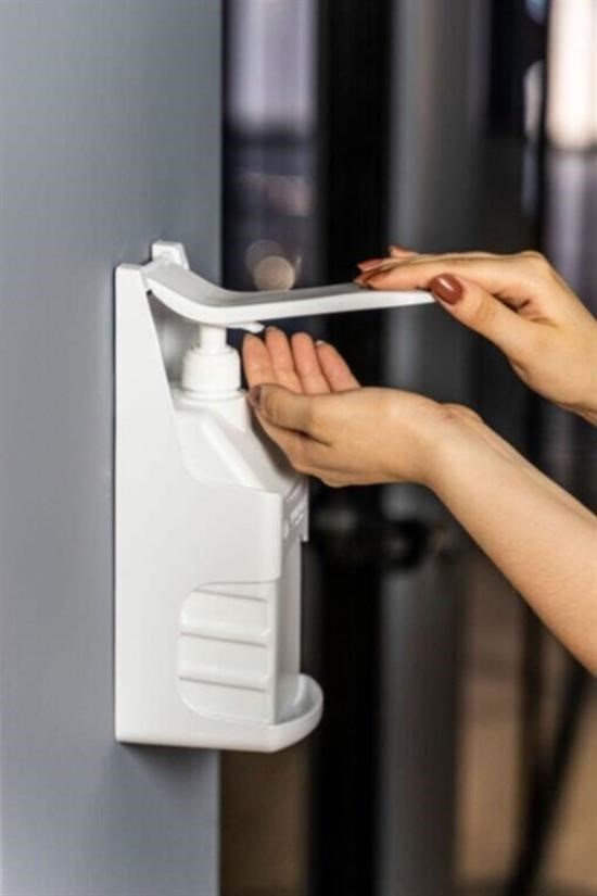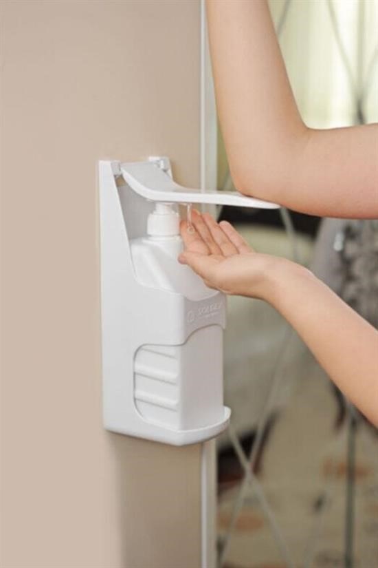 Dezenfektan pompası, kol veya dirsekle el değmeden kullanmak için özel olarak tasarlanmış uzun kolu duvara monte edilebilir