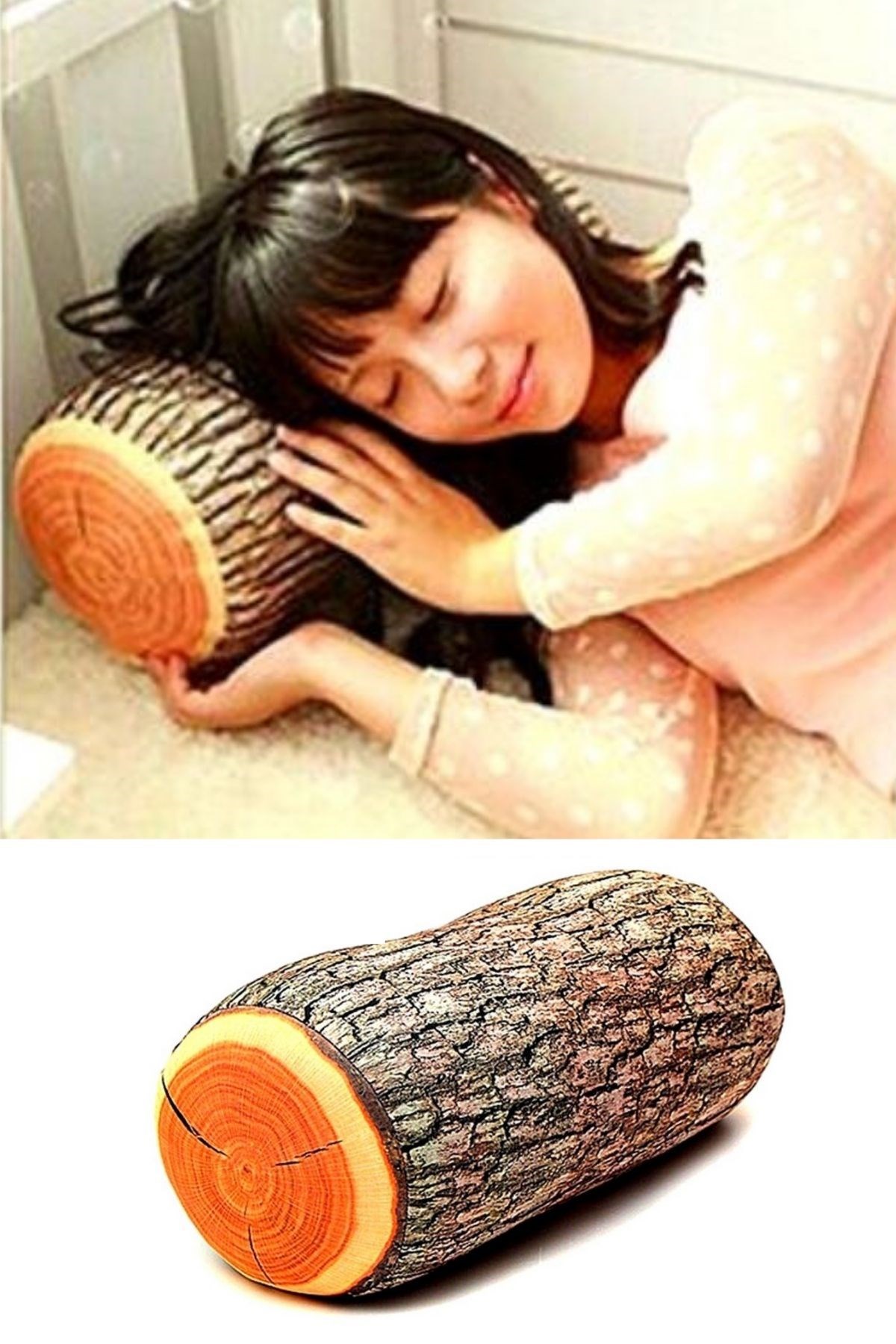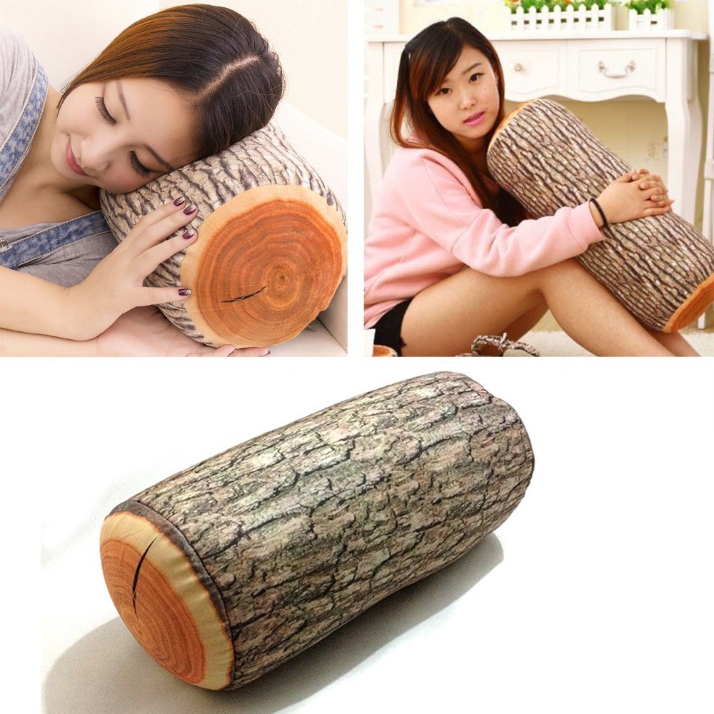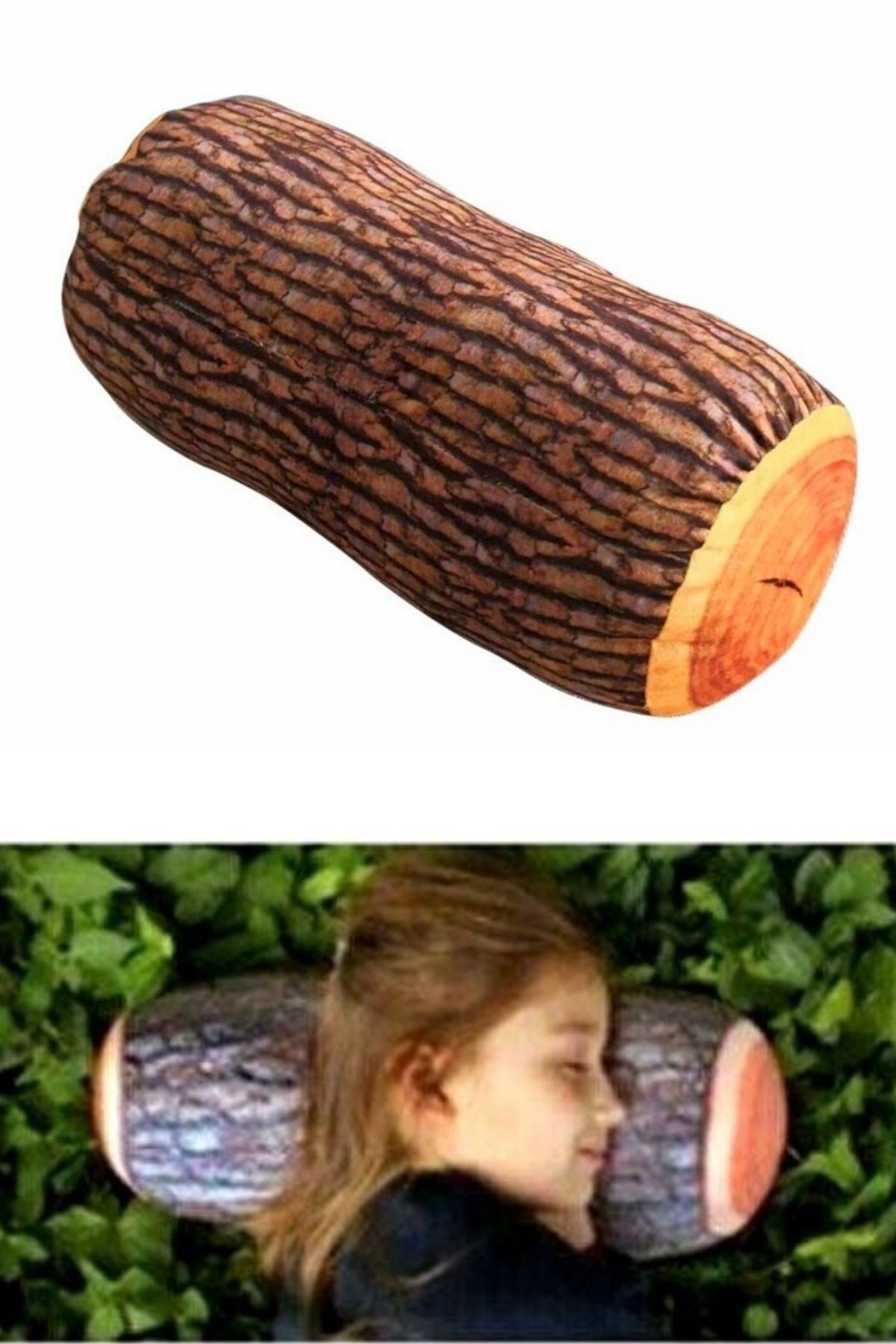 BUFFER® Eğlenceli 3D Odun Yastık Kütük Ağaç görünümlü Dekoratif Minder